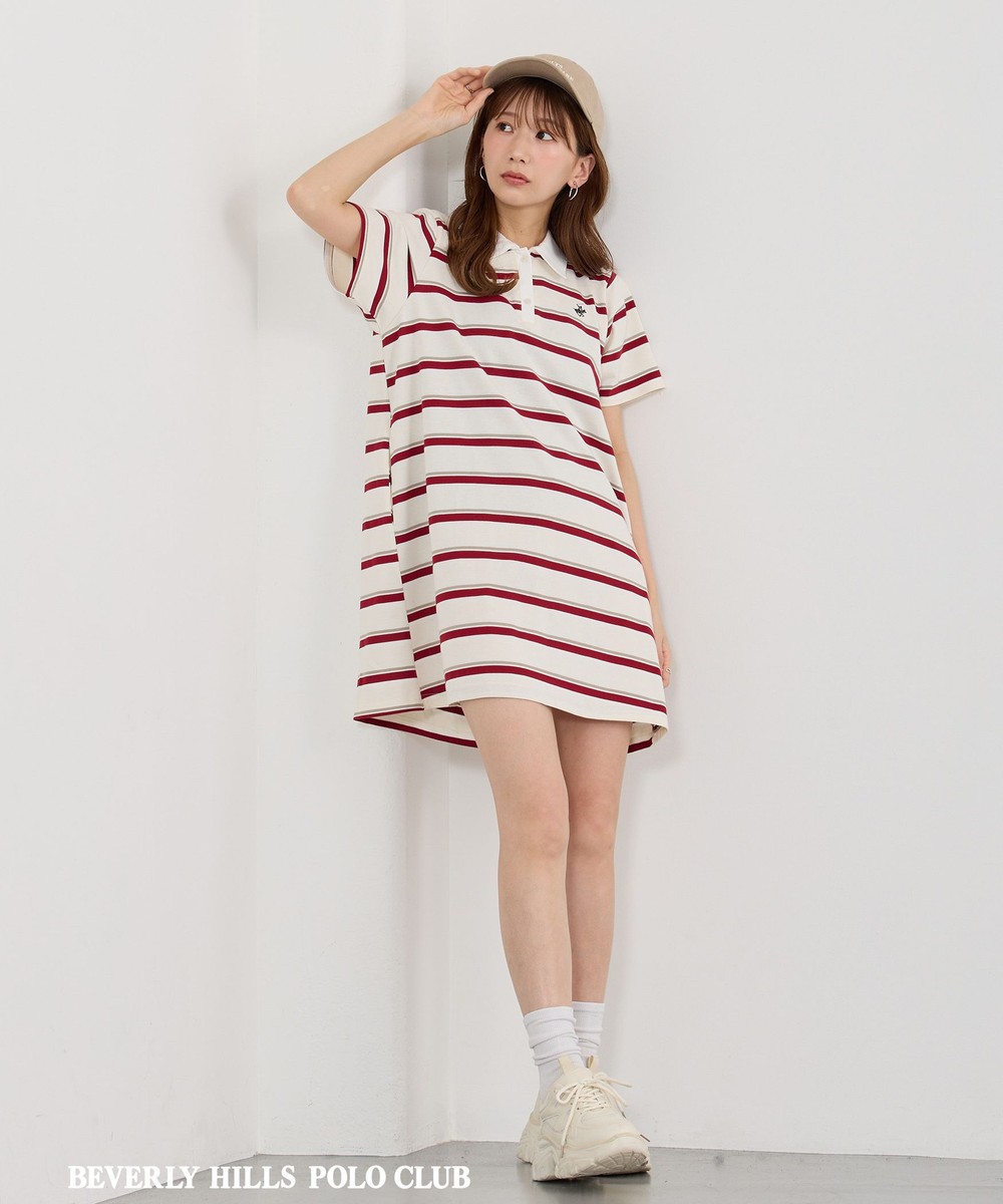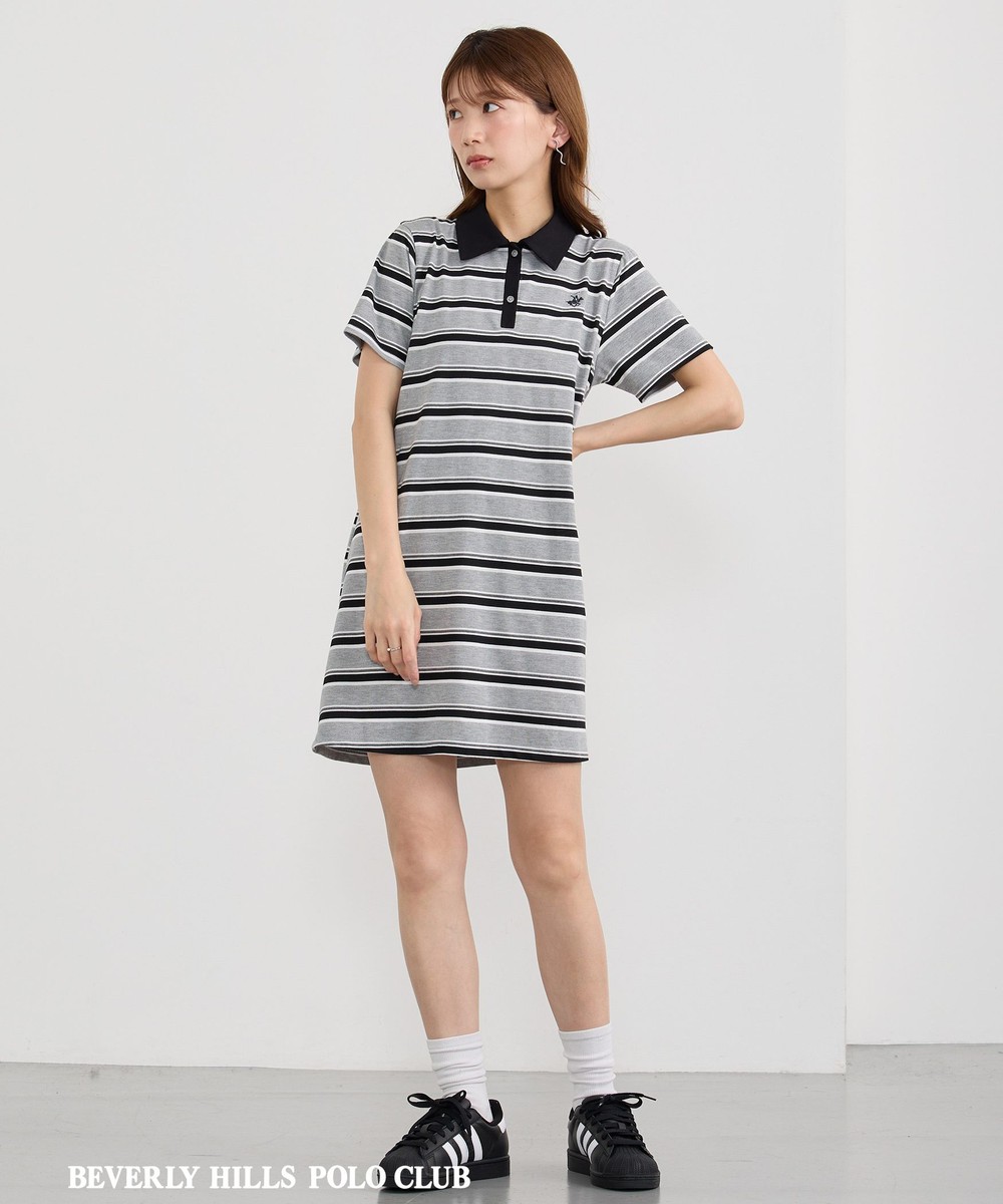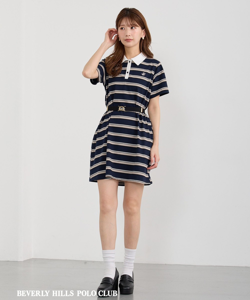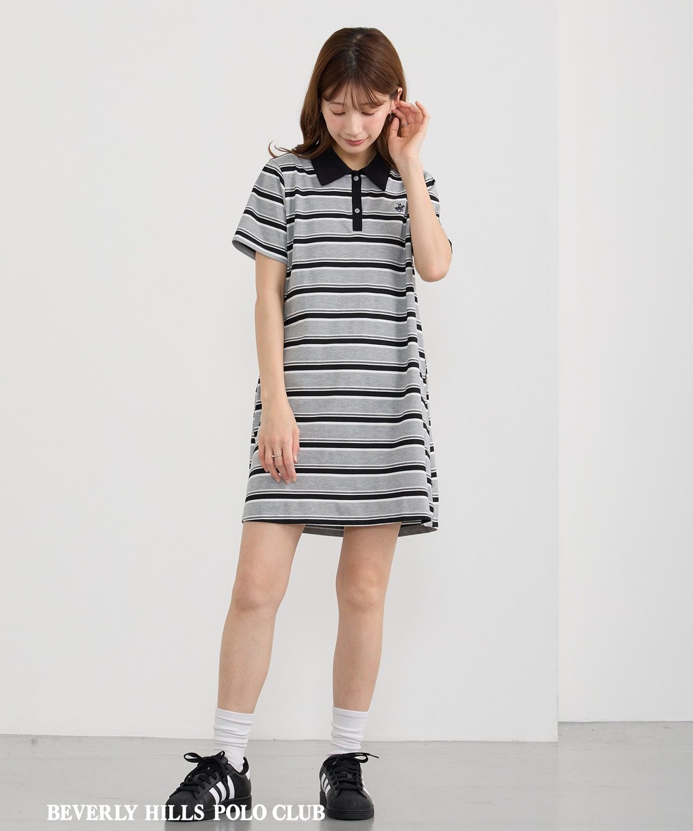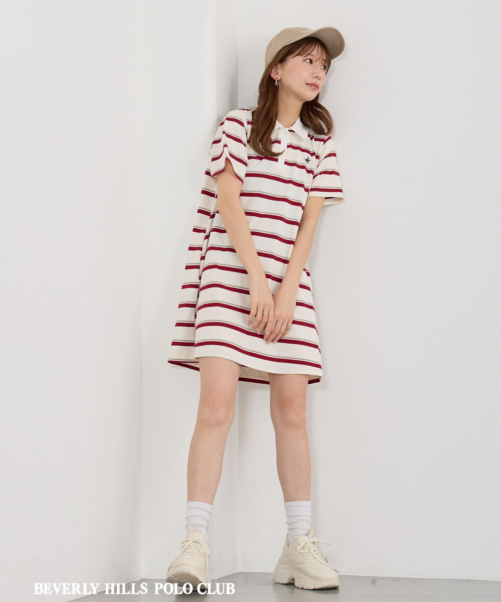 幼くなりがちなボーダー×ポロワンピですがシルエットをIラインに寄せることで大人カジュアルに着こなしていただけるよう仕上げました。
