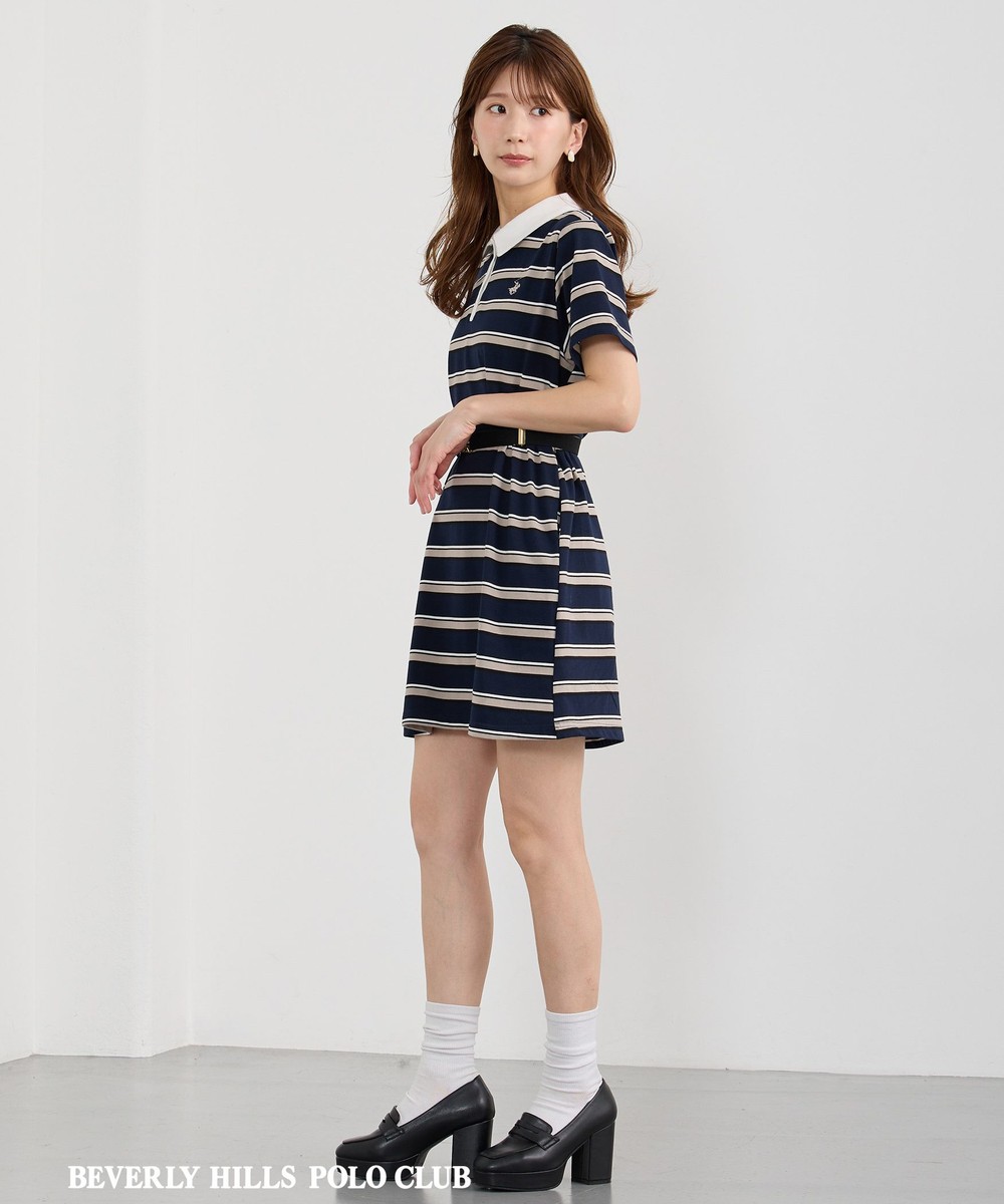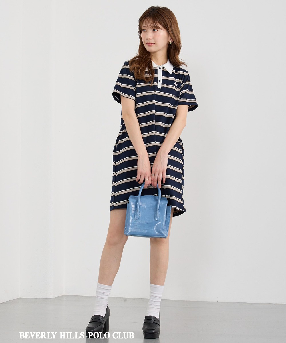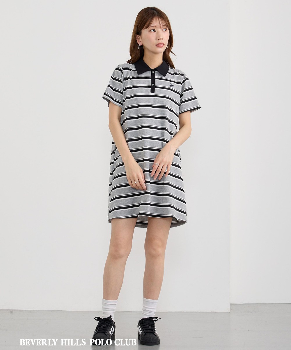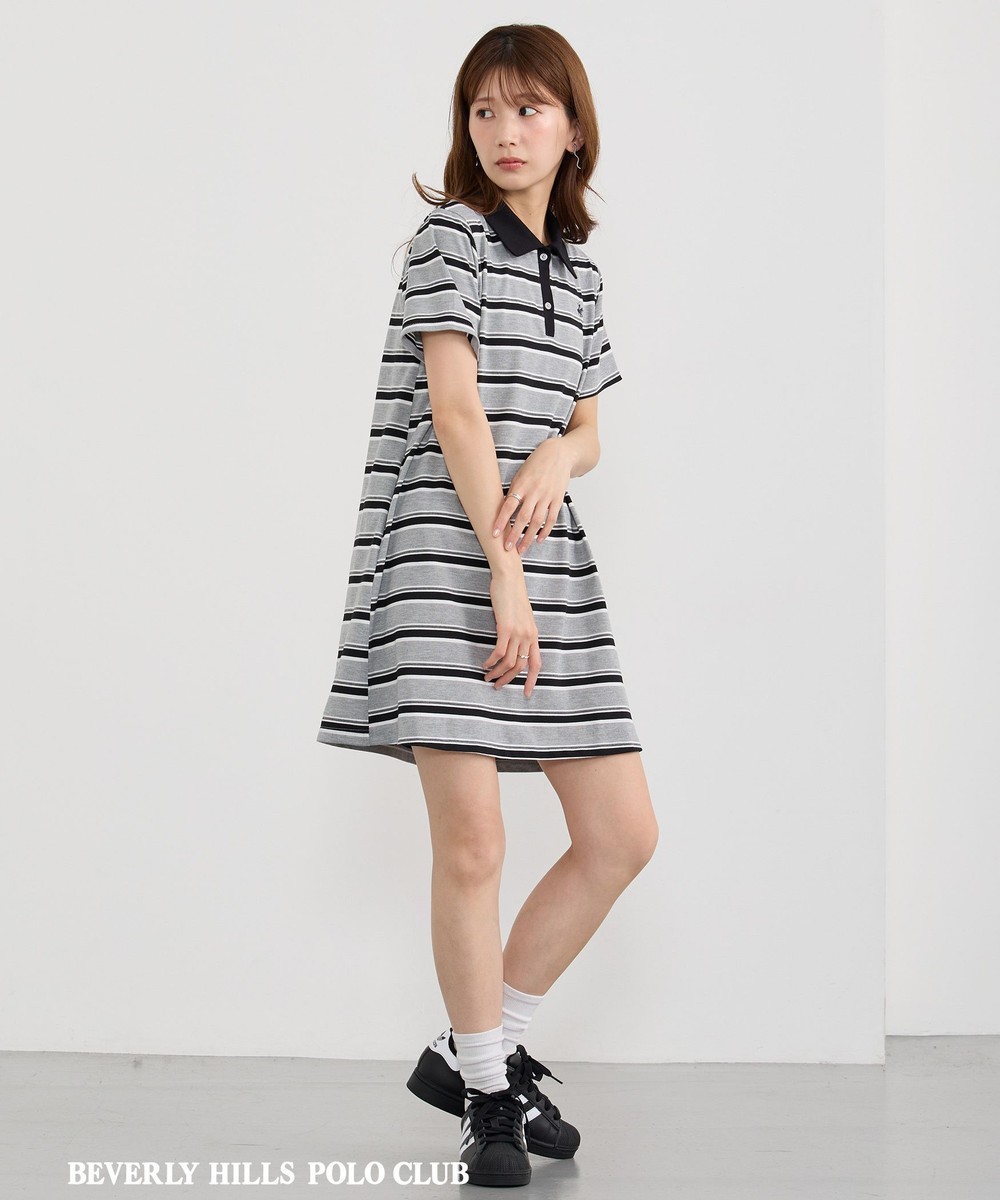 幼くなりがちなボーダー×ポロワンピですがシルエットをIラインに寄せることで大人カジュアルに着こなしていただけるよう仕上げました。