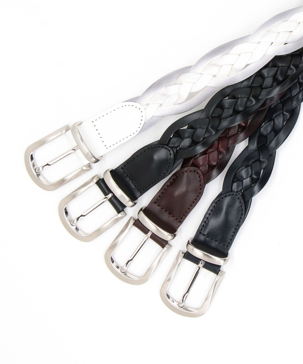 幅広のテープをブレイド編みすることで帯に存在感を持たせたメッシュベルトです。
