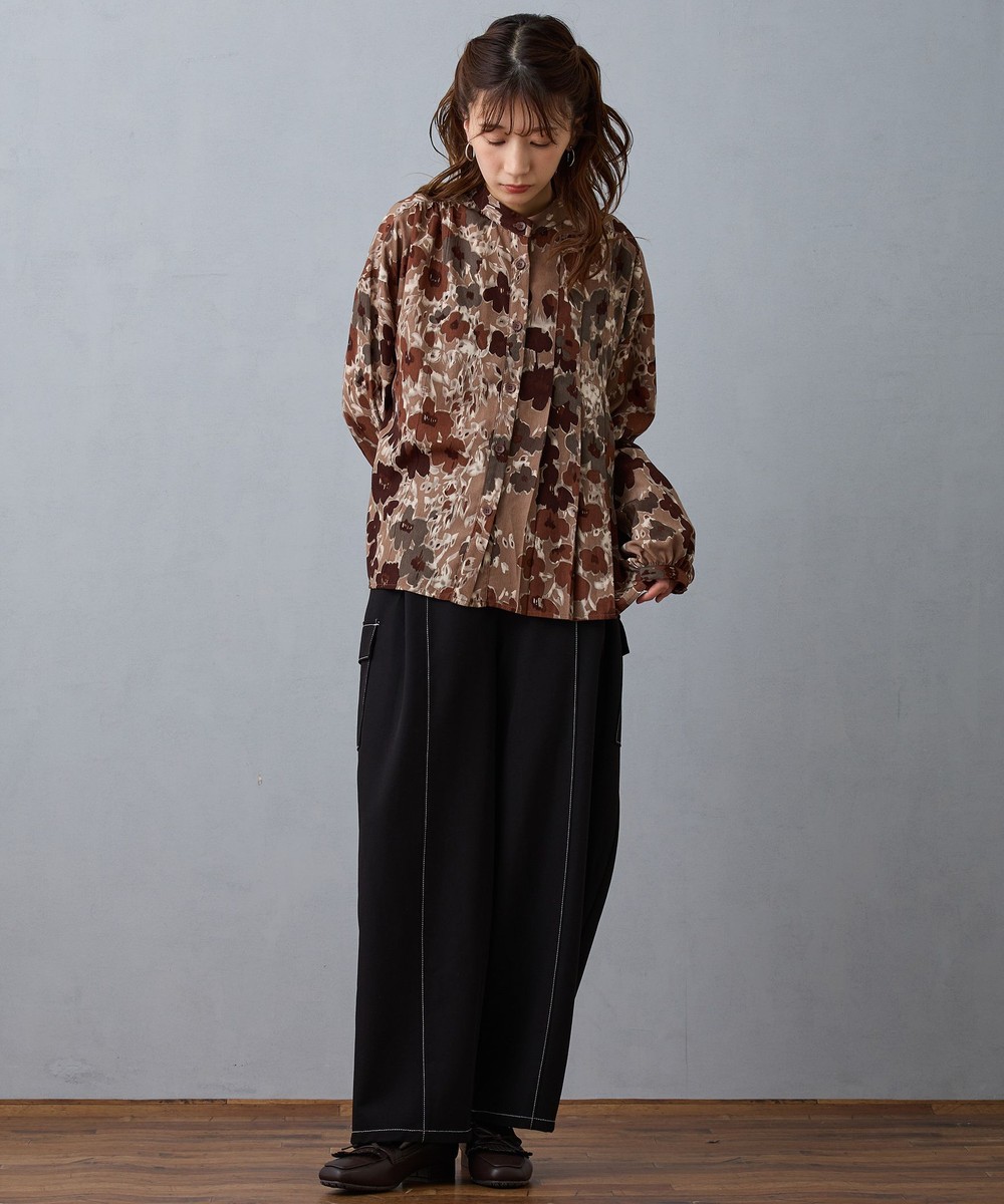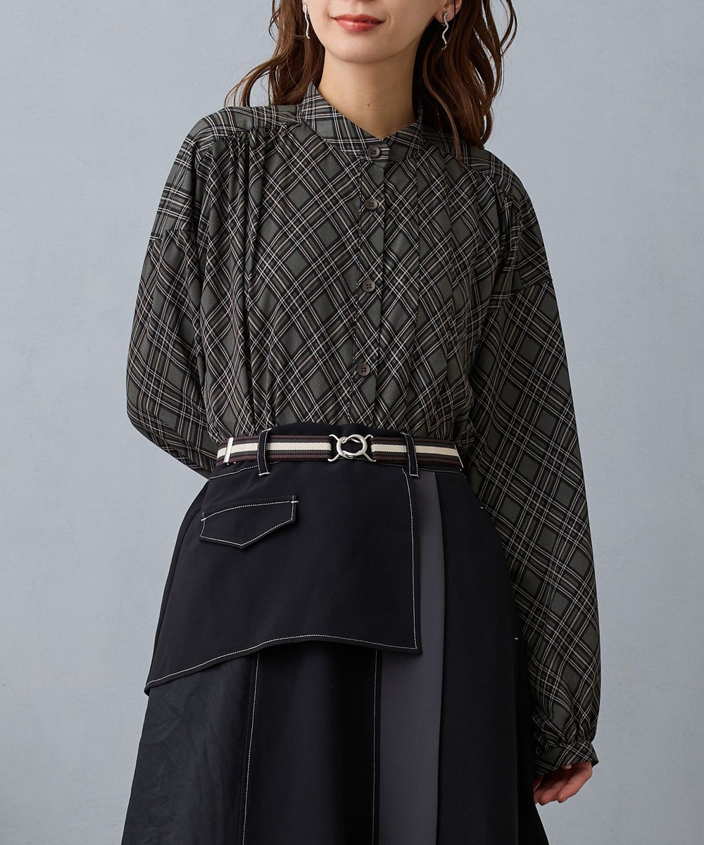 スタンドカラーに長めの着丈設定なのでアウトで着ていただくのはもちろん、シンプルなジャンスカやブイネックカーディガンとの合わせでブラウスをのぞかせるスタイリングもおすすめです。