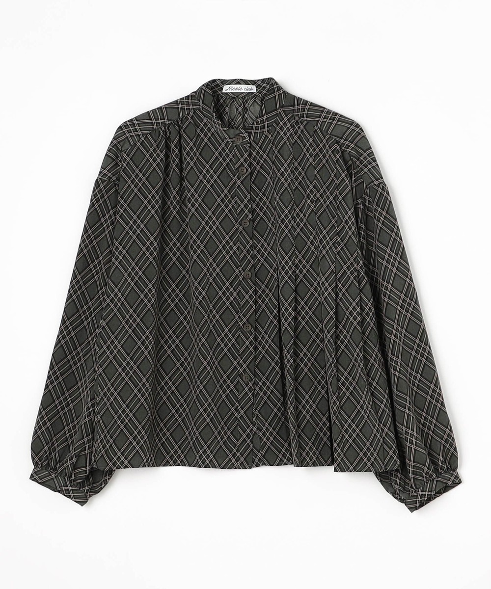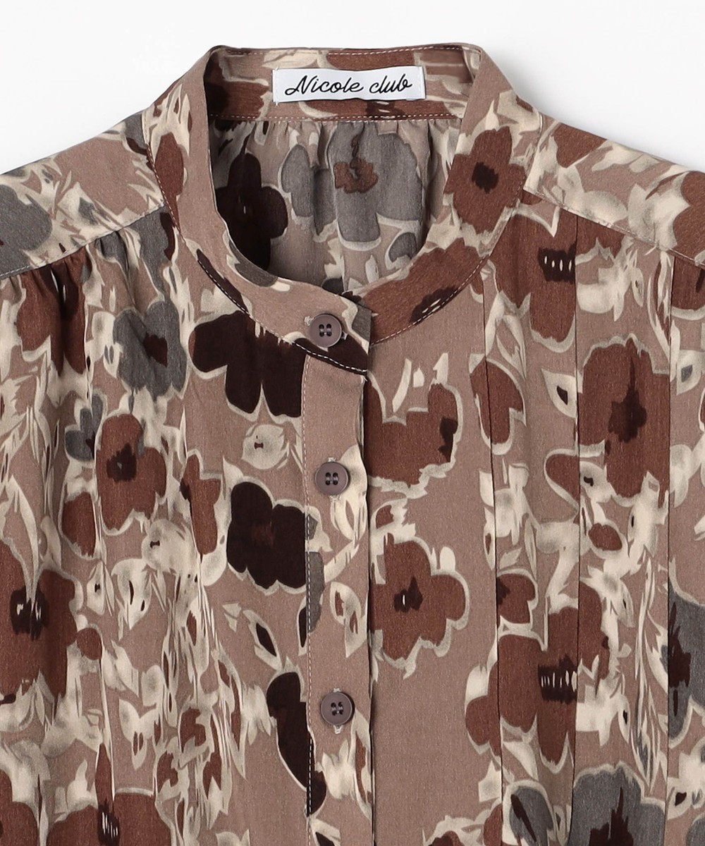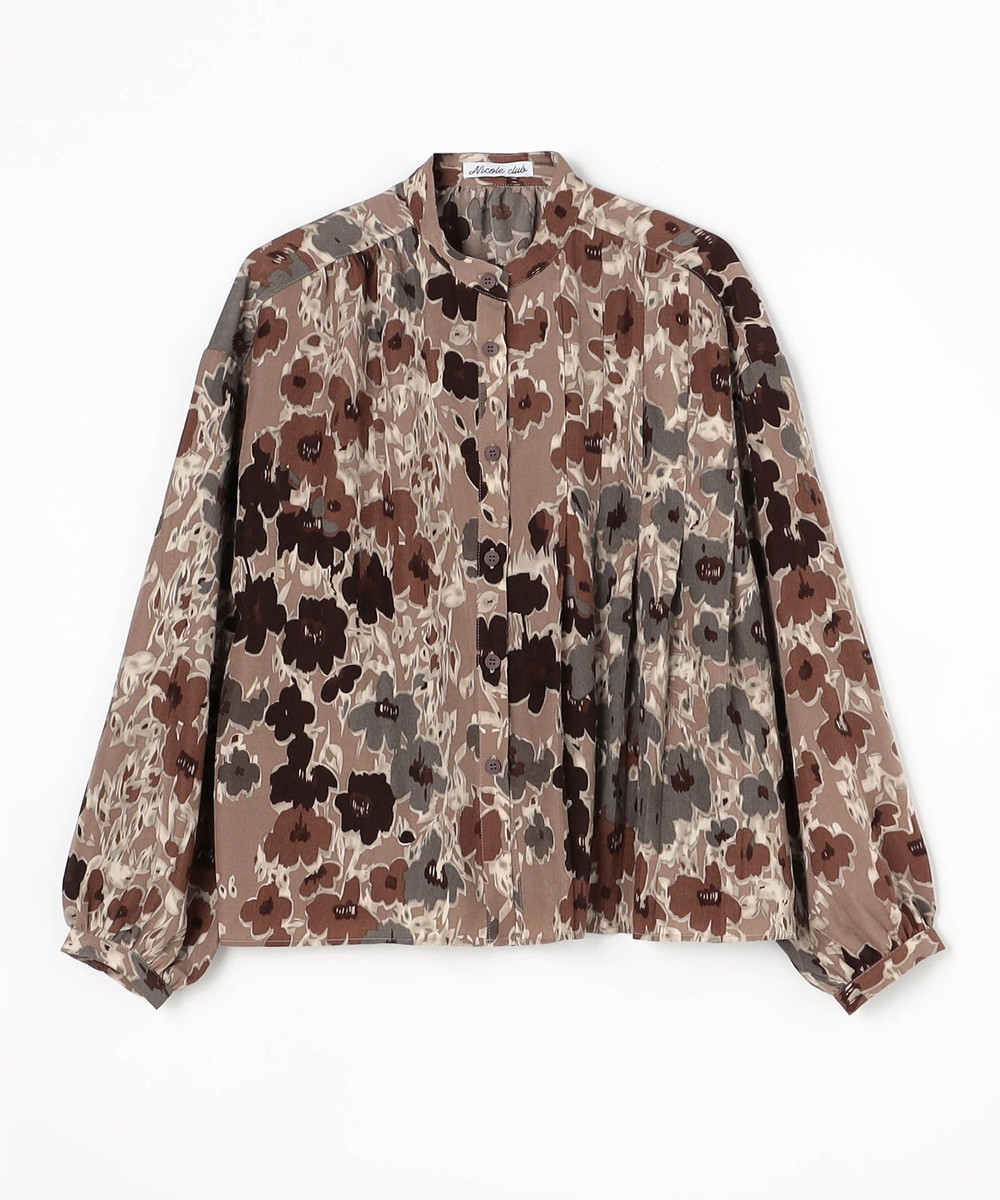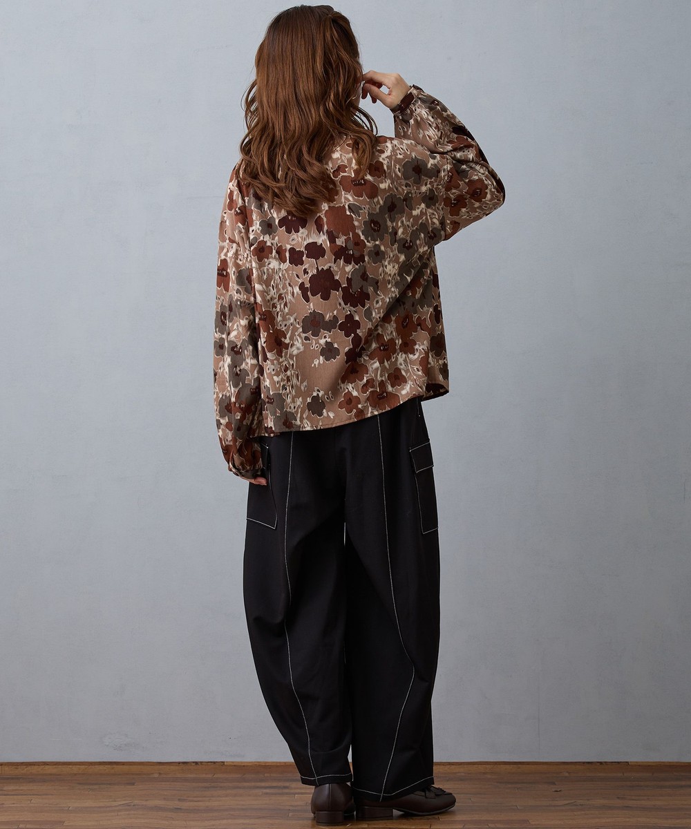 アシンメトリーなプリーツデザインの柄ブラウスが新登場。