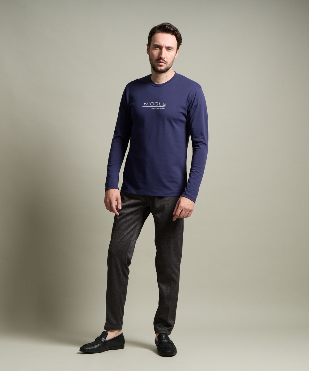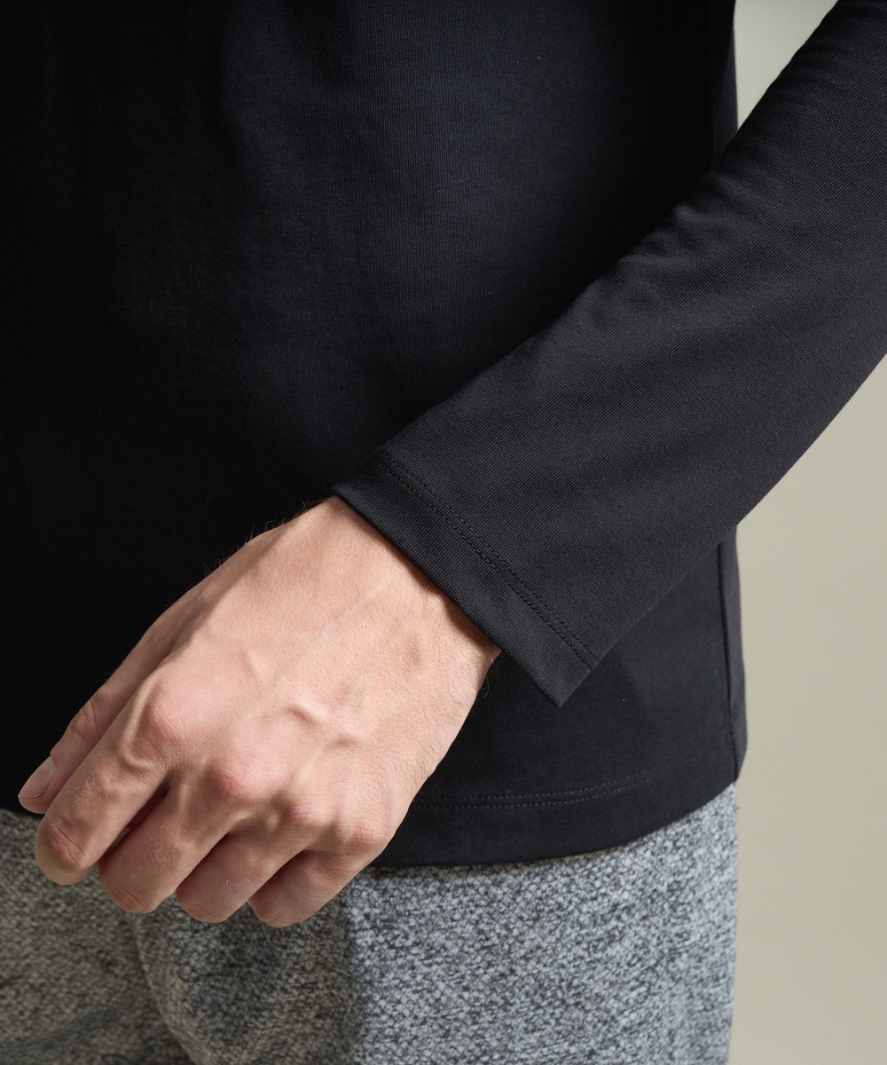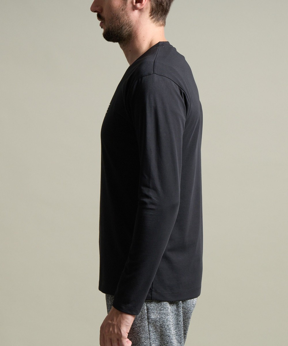 胸元のワンポイントデザインが洗練された印象の上品なクルーネック長袖Tシャツに仕上げました。