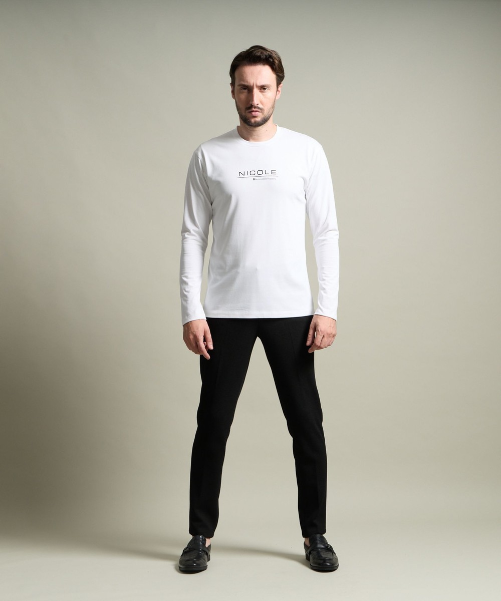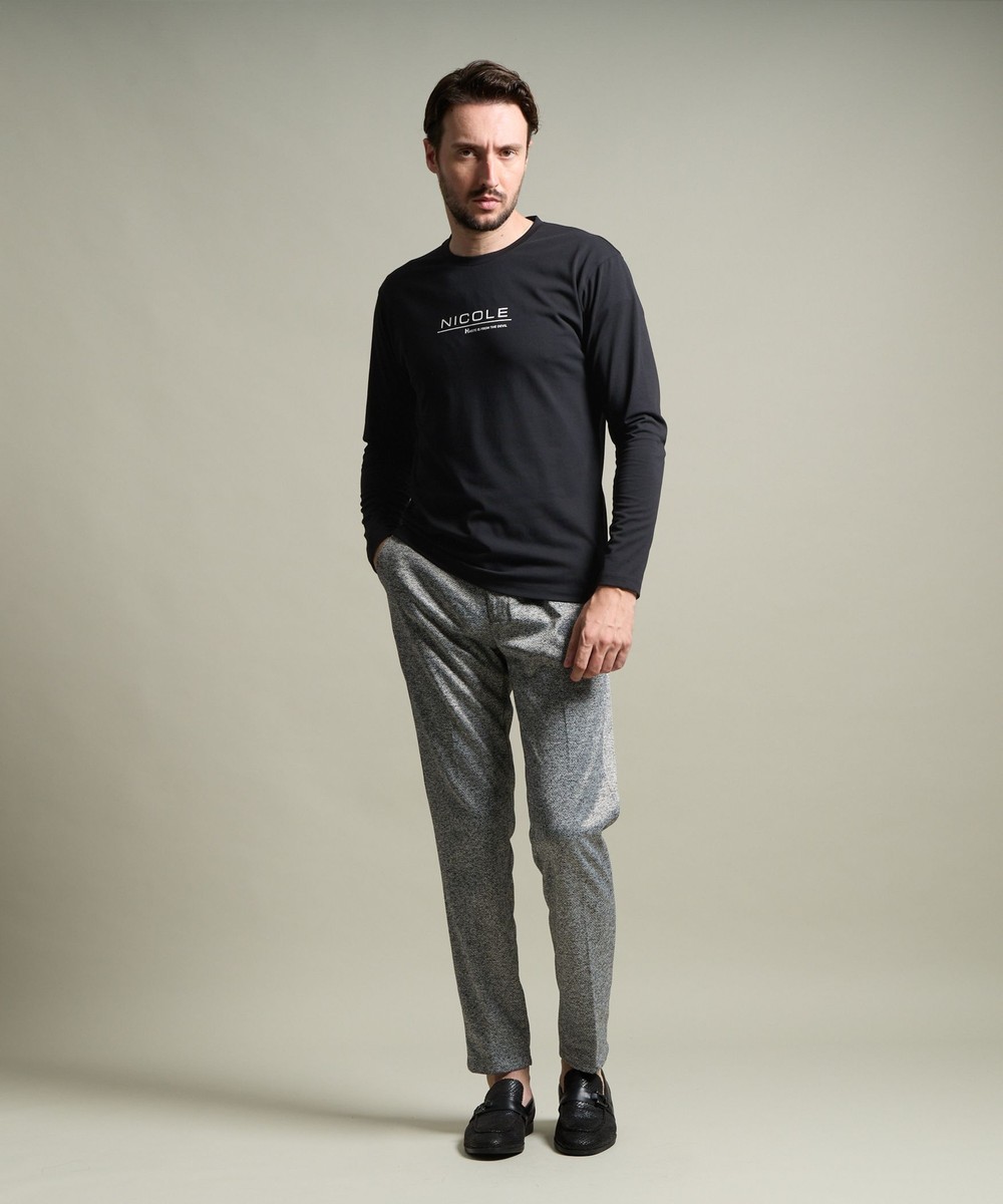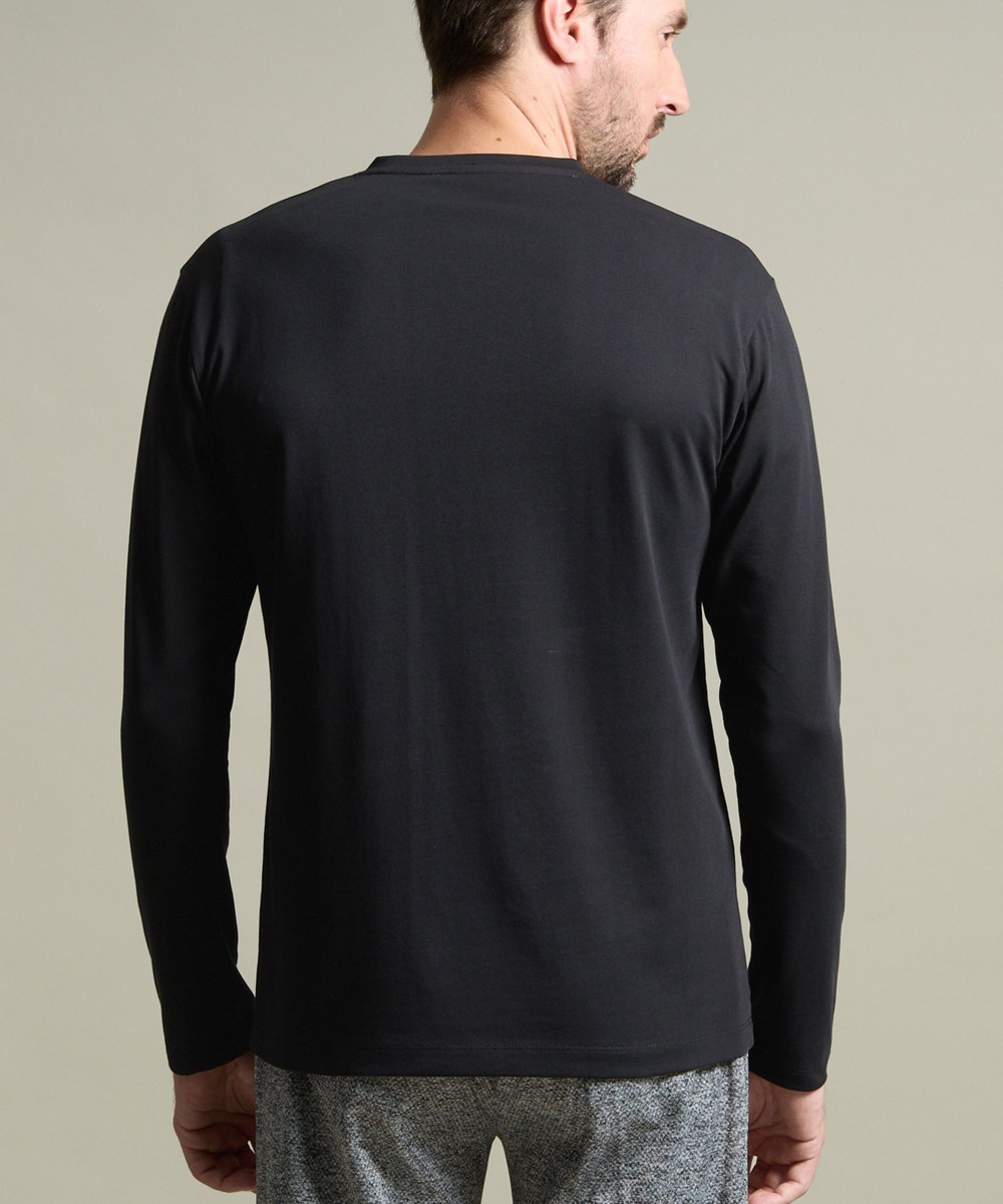 胸元のワンポイントデザインが洗練された印象の上品なクルーネック長袖Tシャツに仕上げました。