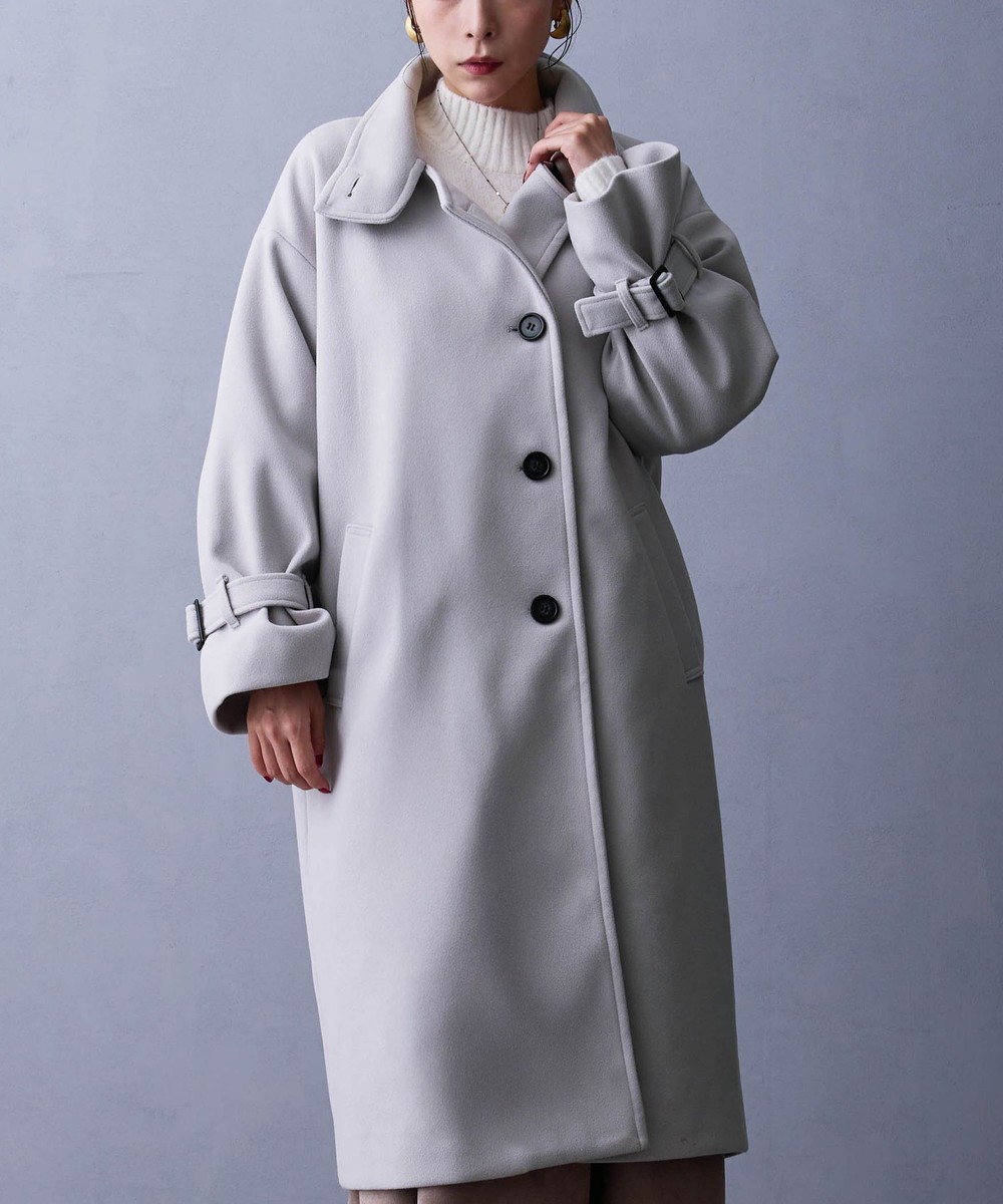 袖ベルトやスタンドデザインがレディンライクに仕上げているので上品な印象になります。