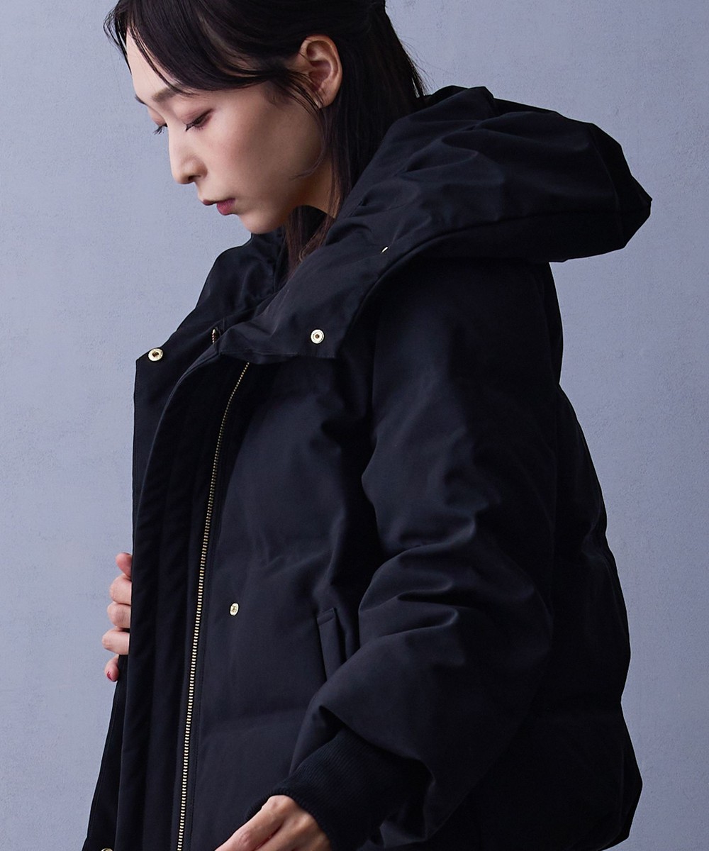 素材/表地:ポリエステル92% ポリウレタン8% 裏地:ポリエステル100% リブ:ポリエステル97% ポリウレタン3% 充填物:ダウン90% フェザー10%