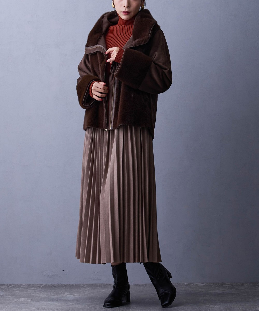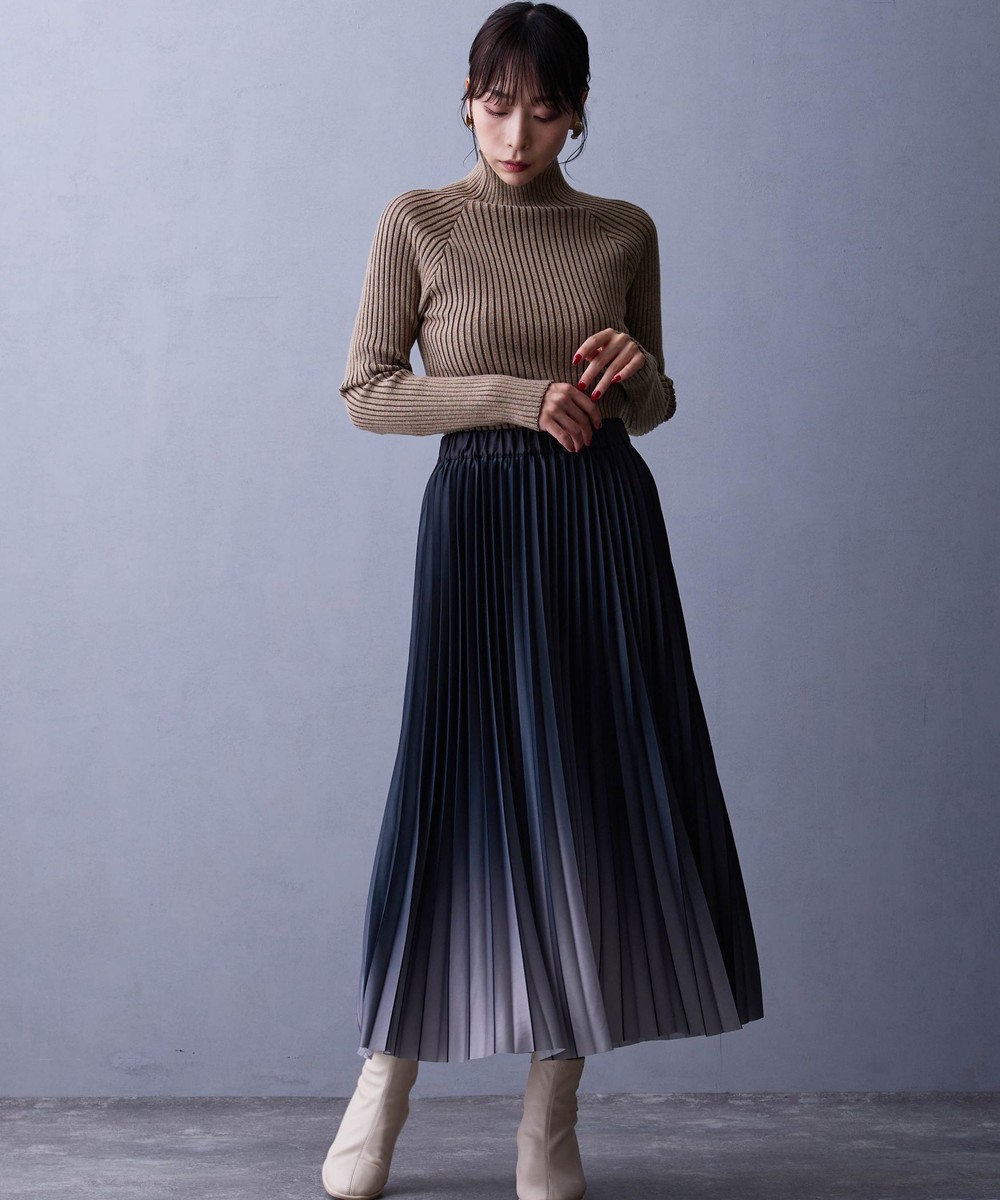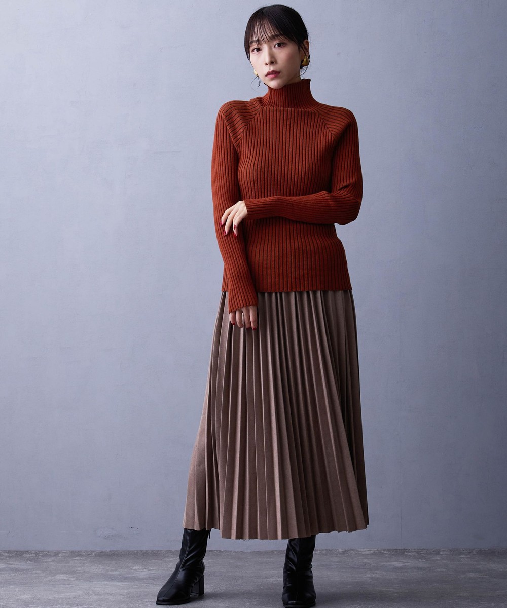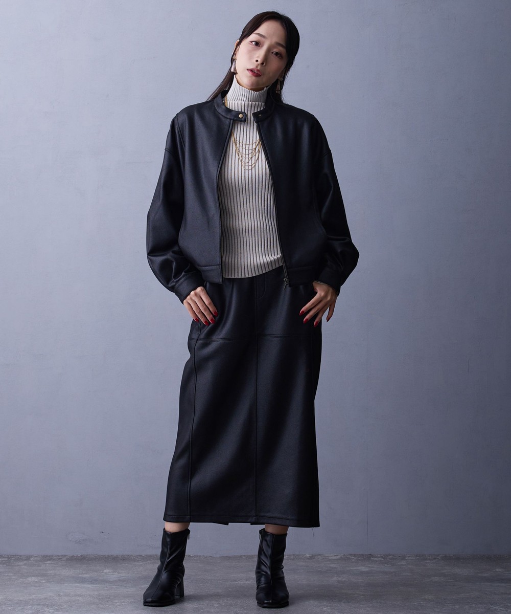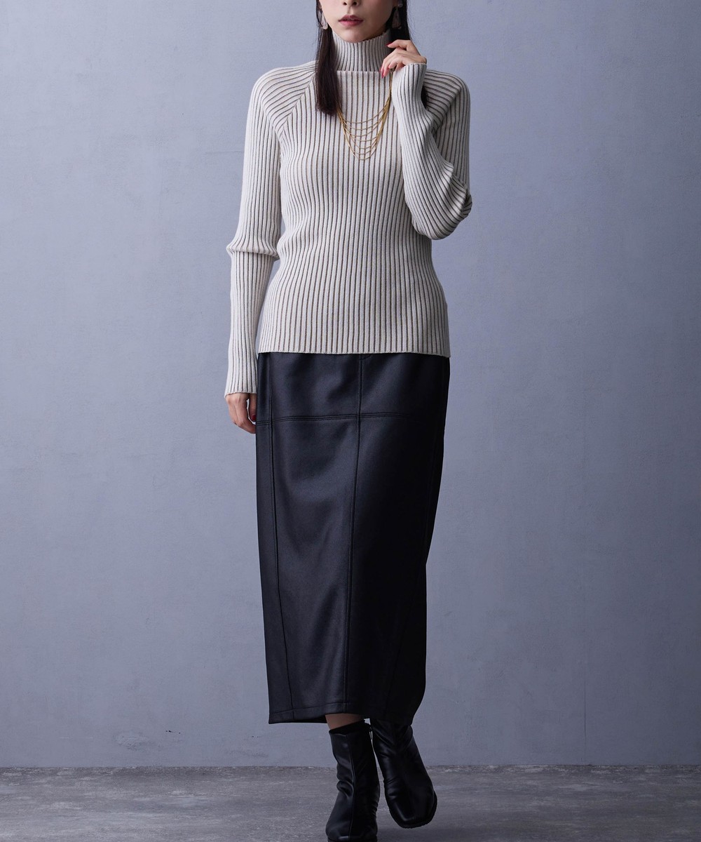 タイトスカートは全体のシルエットが縦長細みえ効果に、ワイドなパンツやフレアースカート等と合わせてもバランスよく、アウターを着ても野暮ったくならずスッキリします。