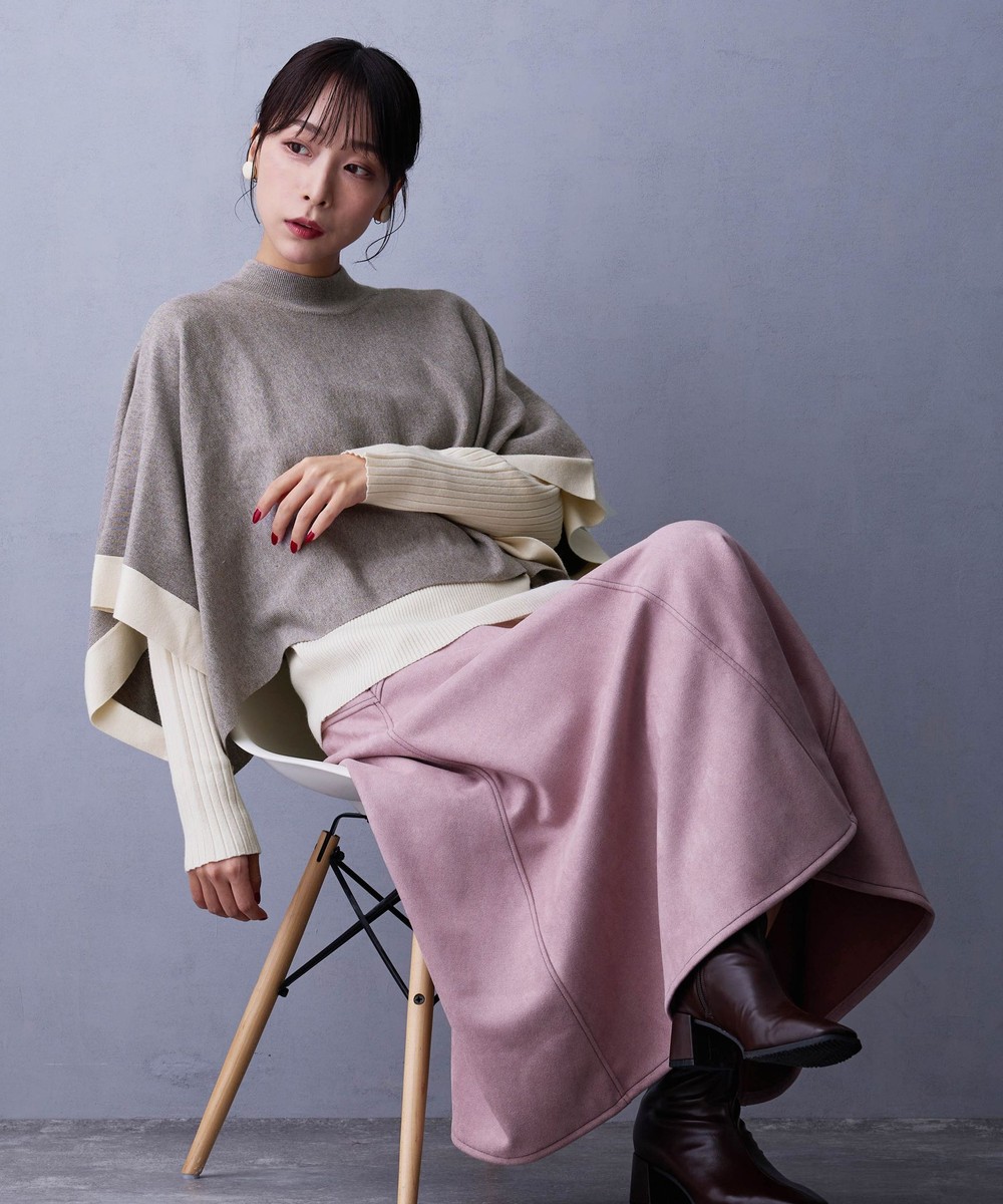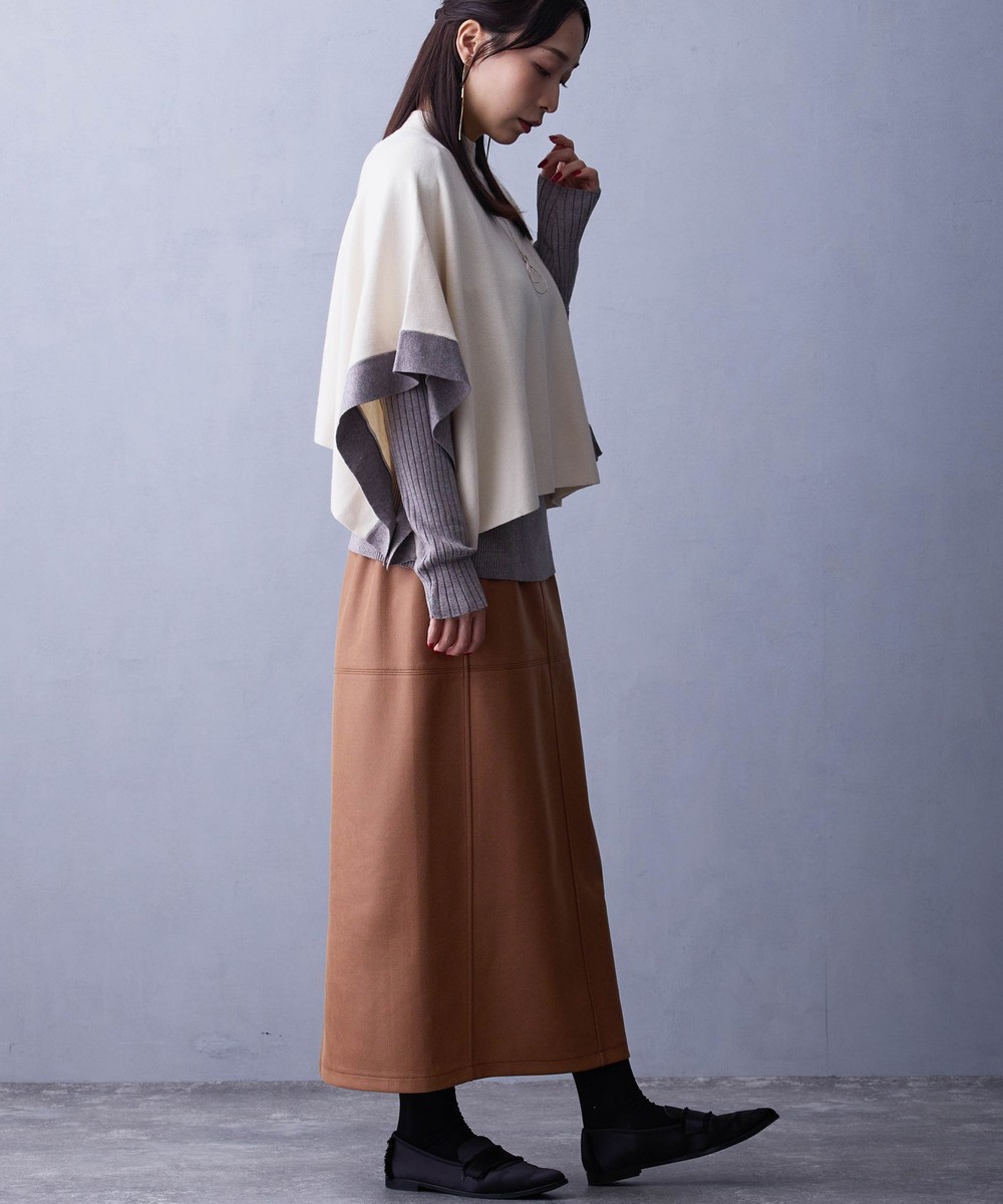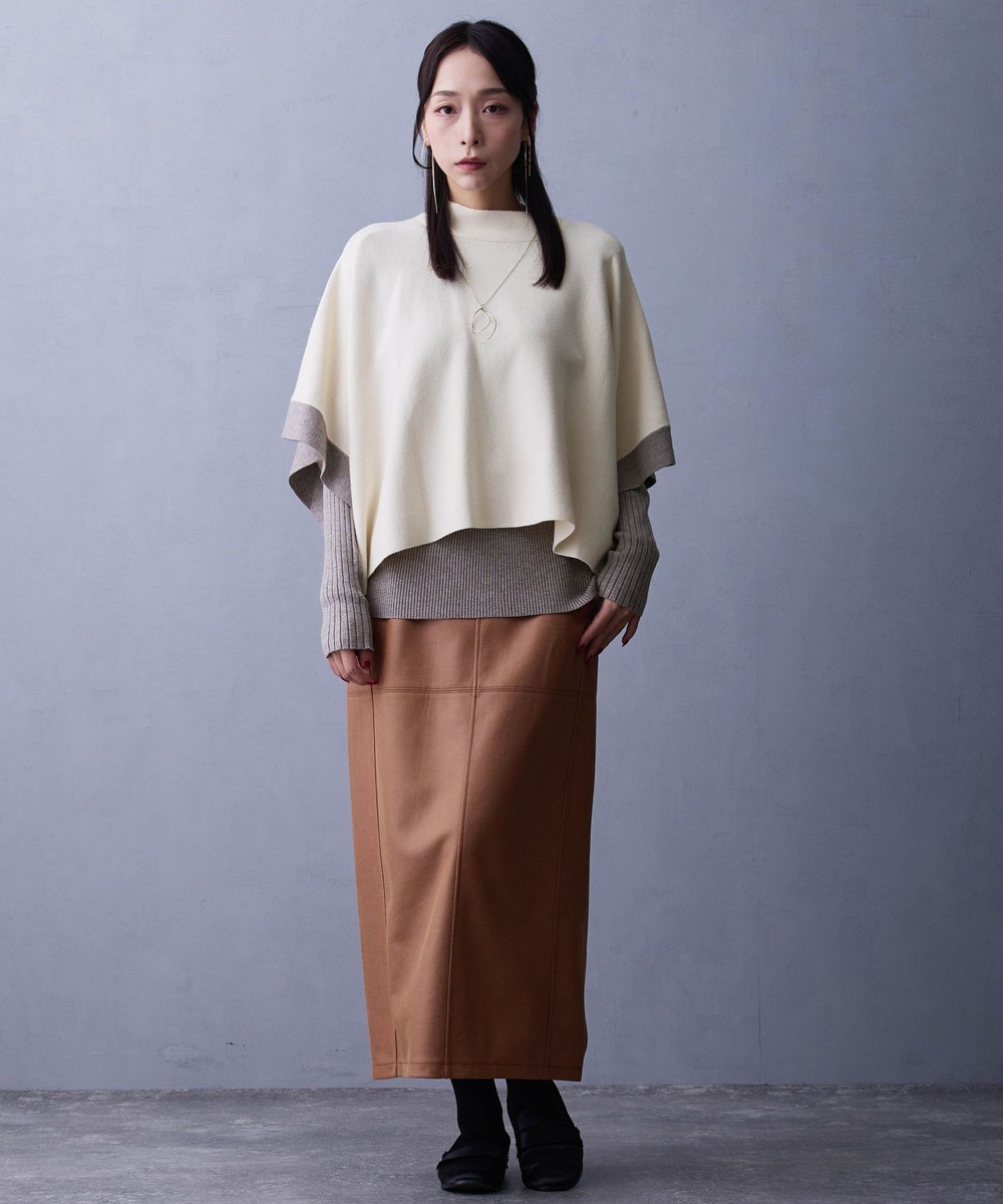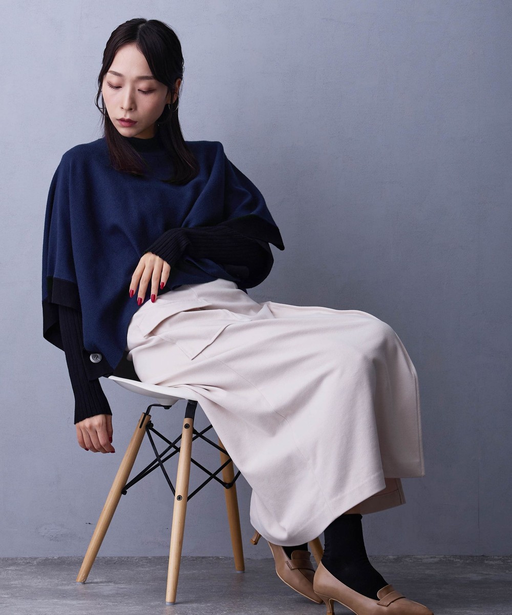 ポンチョ部分はシャツやブラウスと合わせてカジュアルにしても◎