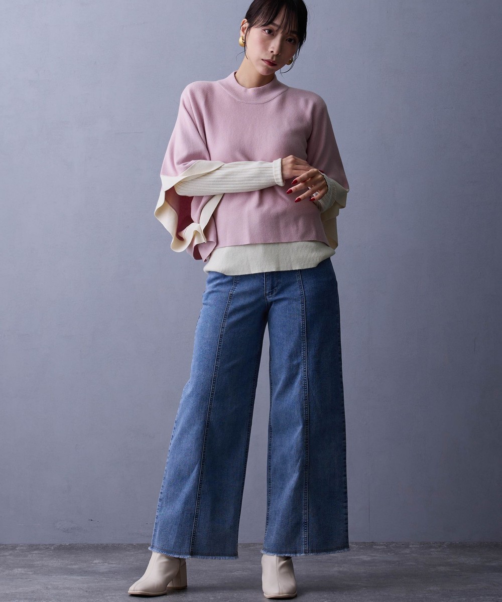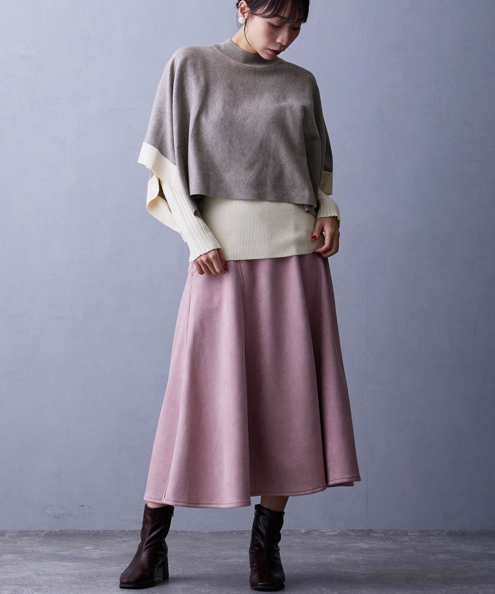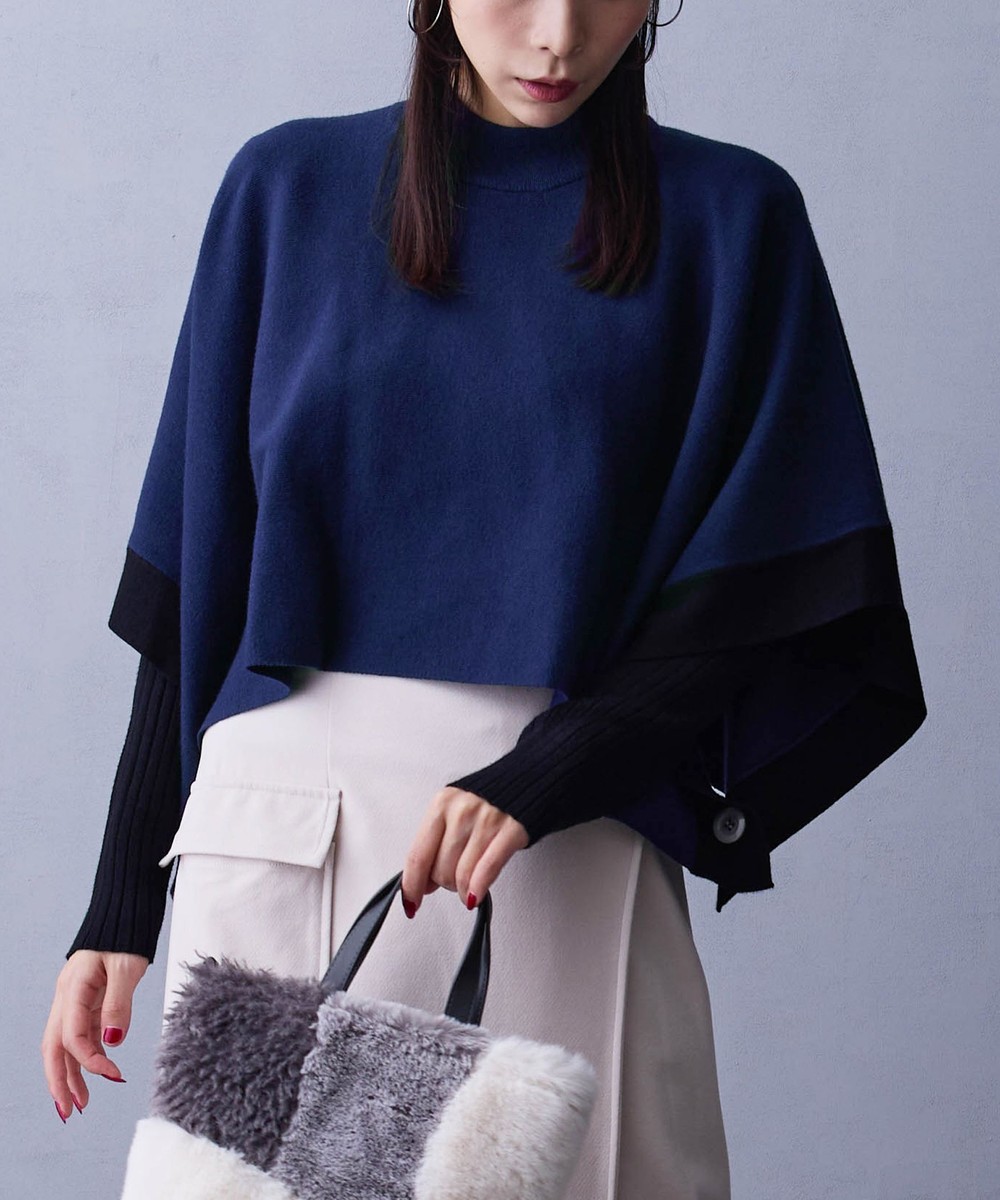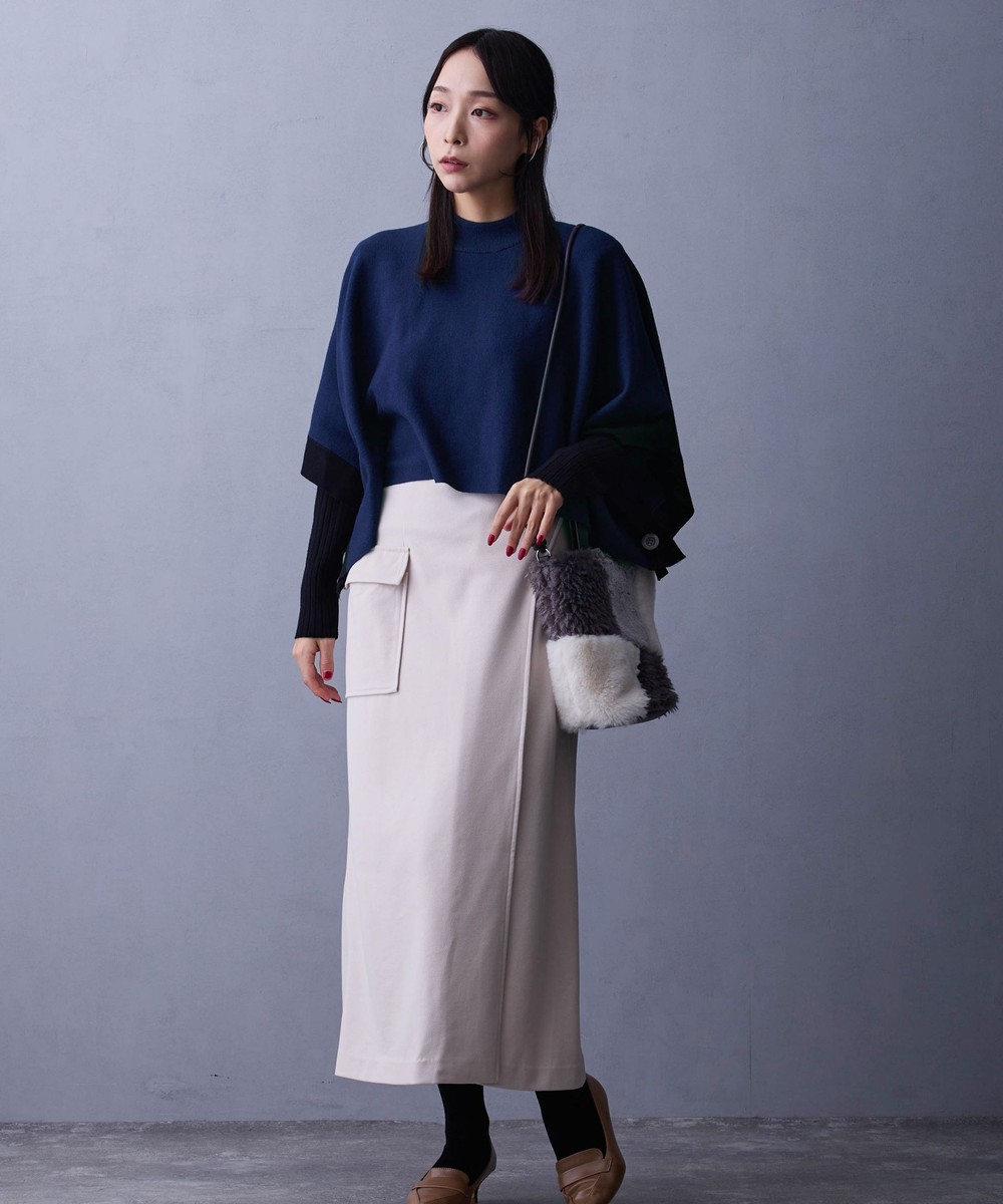 ポンチョ部分はシャツやブラウスと合わせてカジュアルにしても◎
