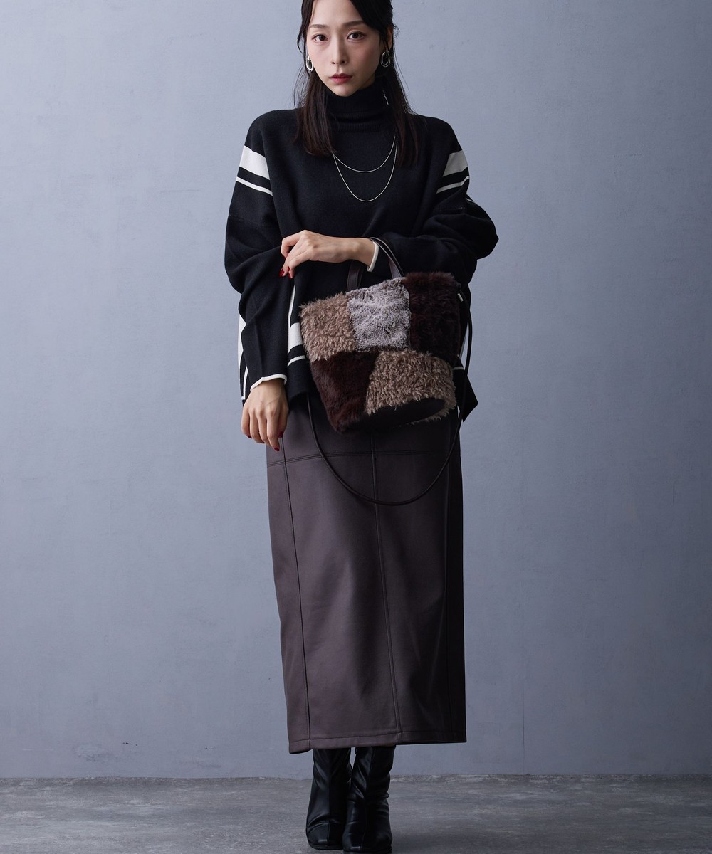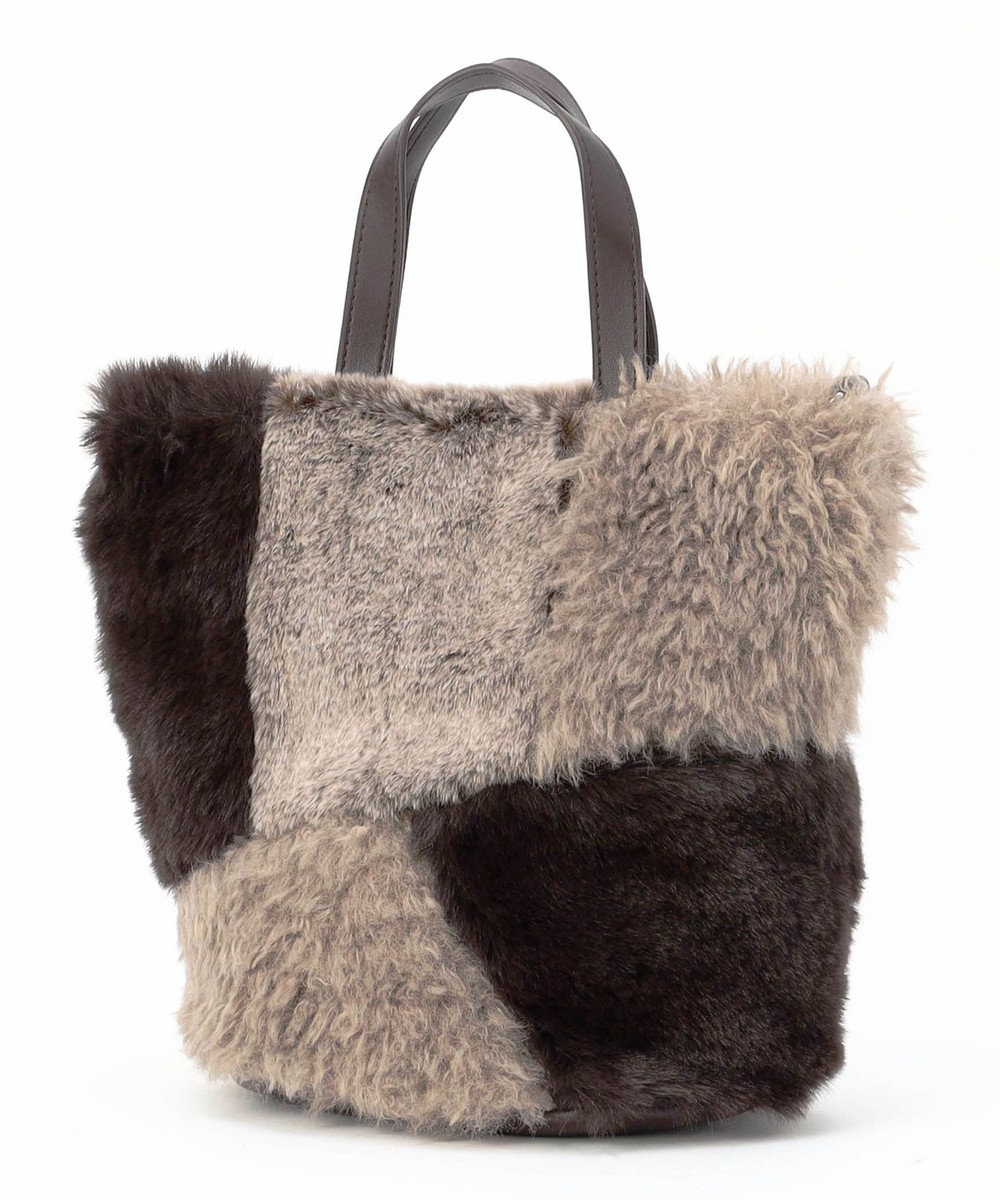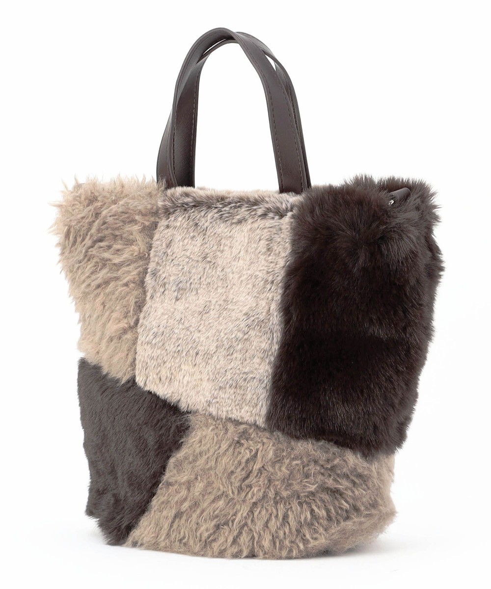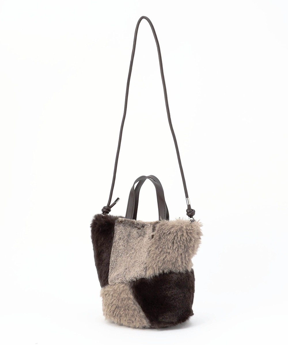 素材の違うフェイファーをパネル状にしたデザインバッグ。