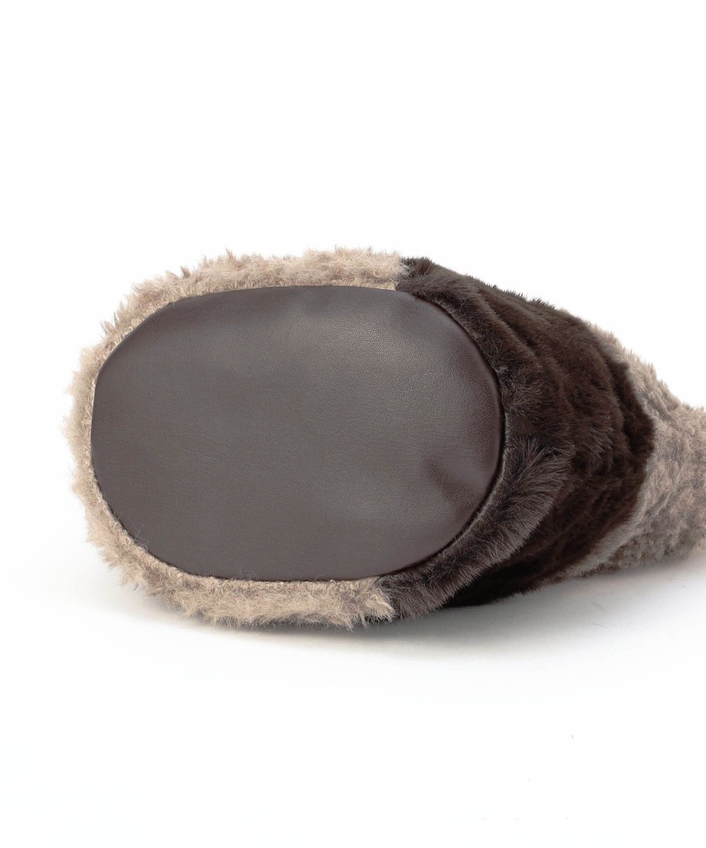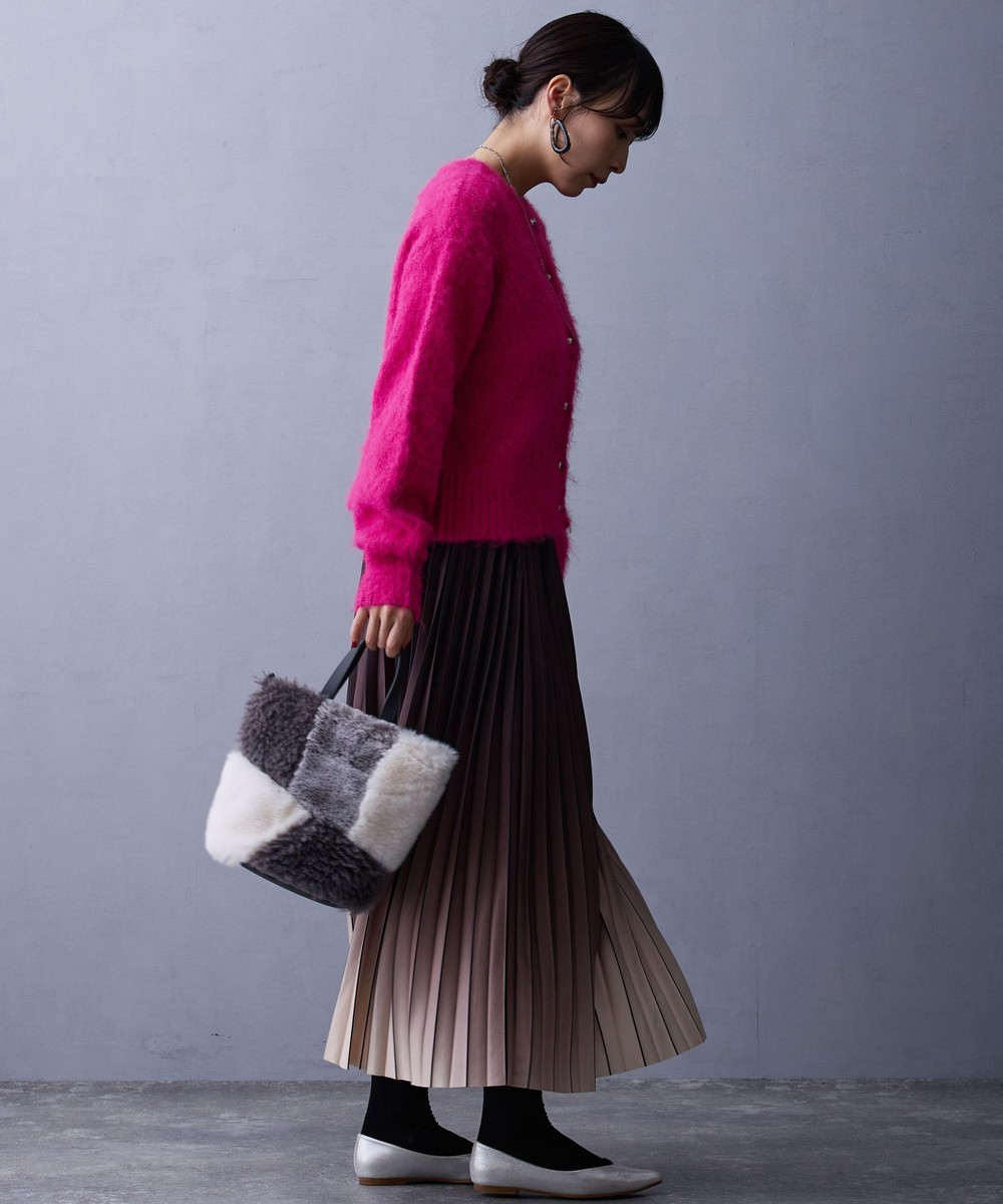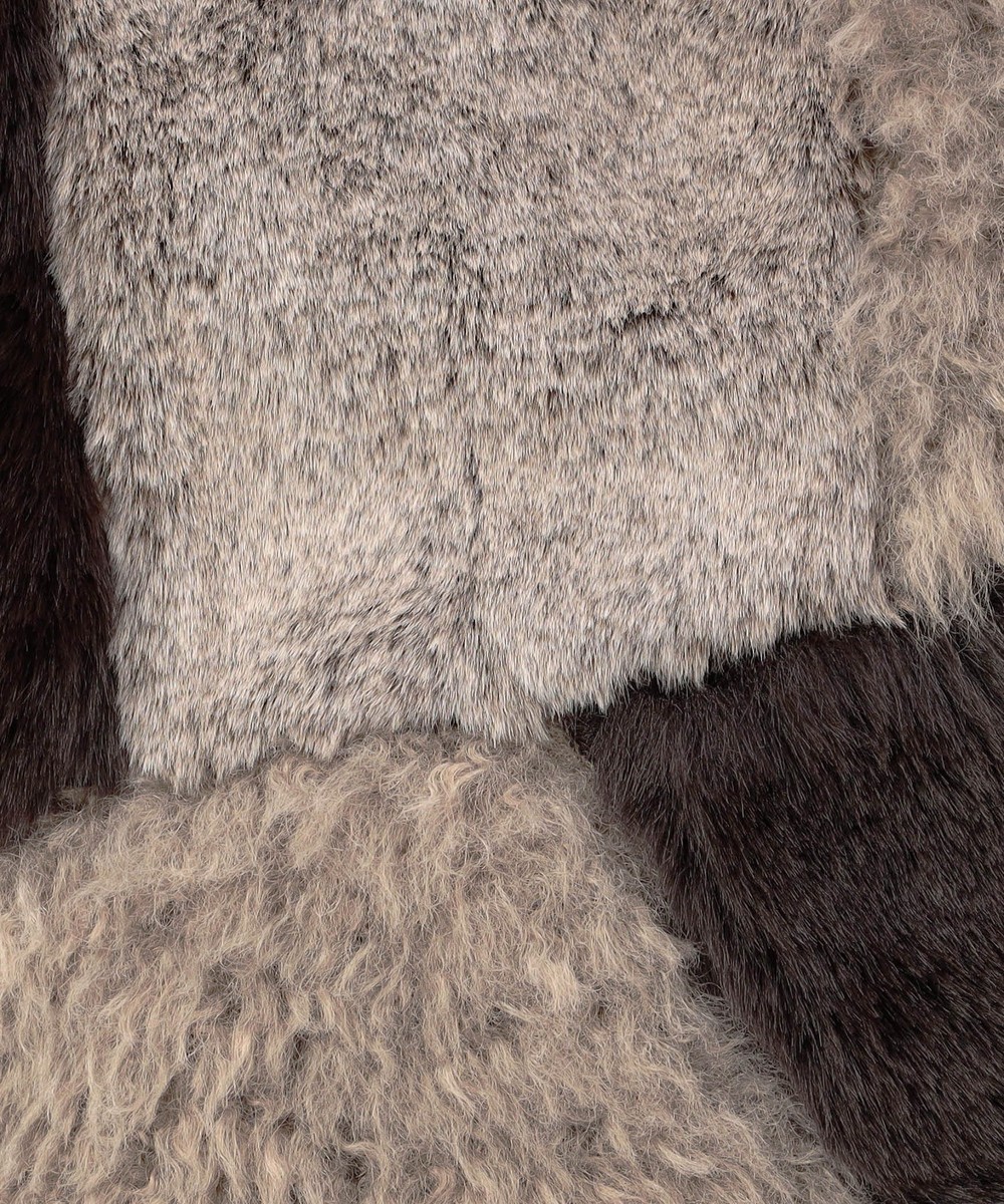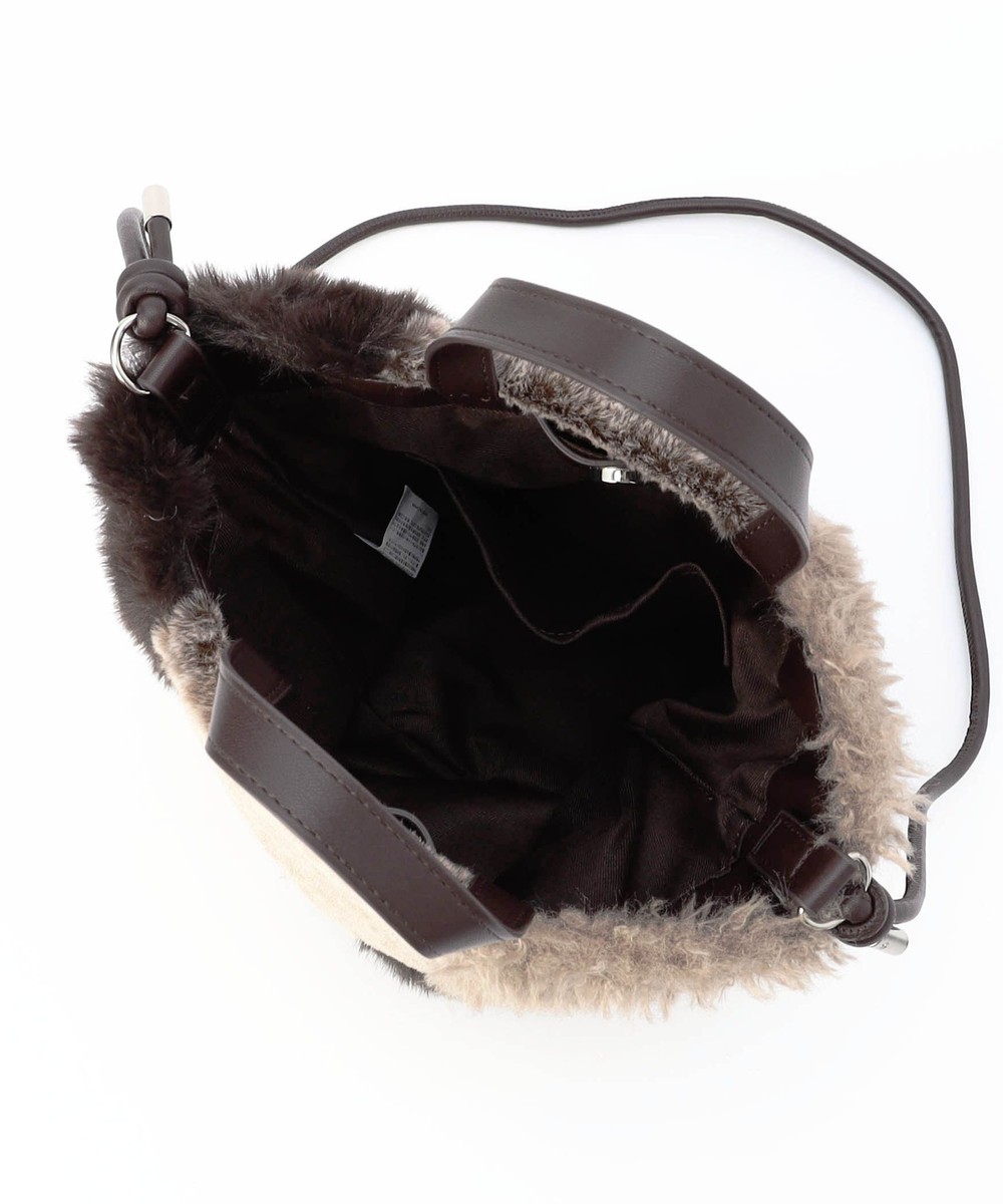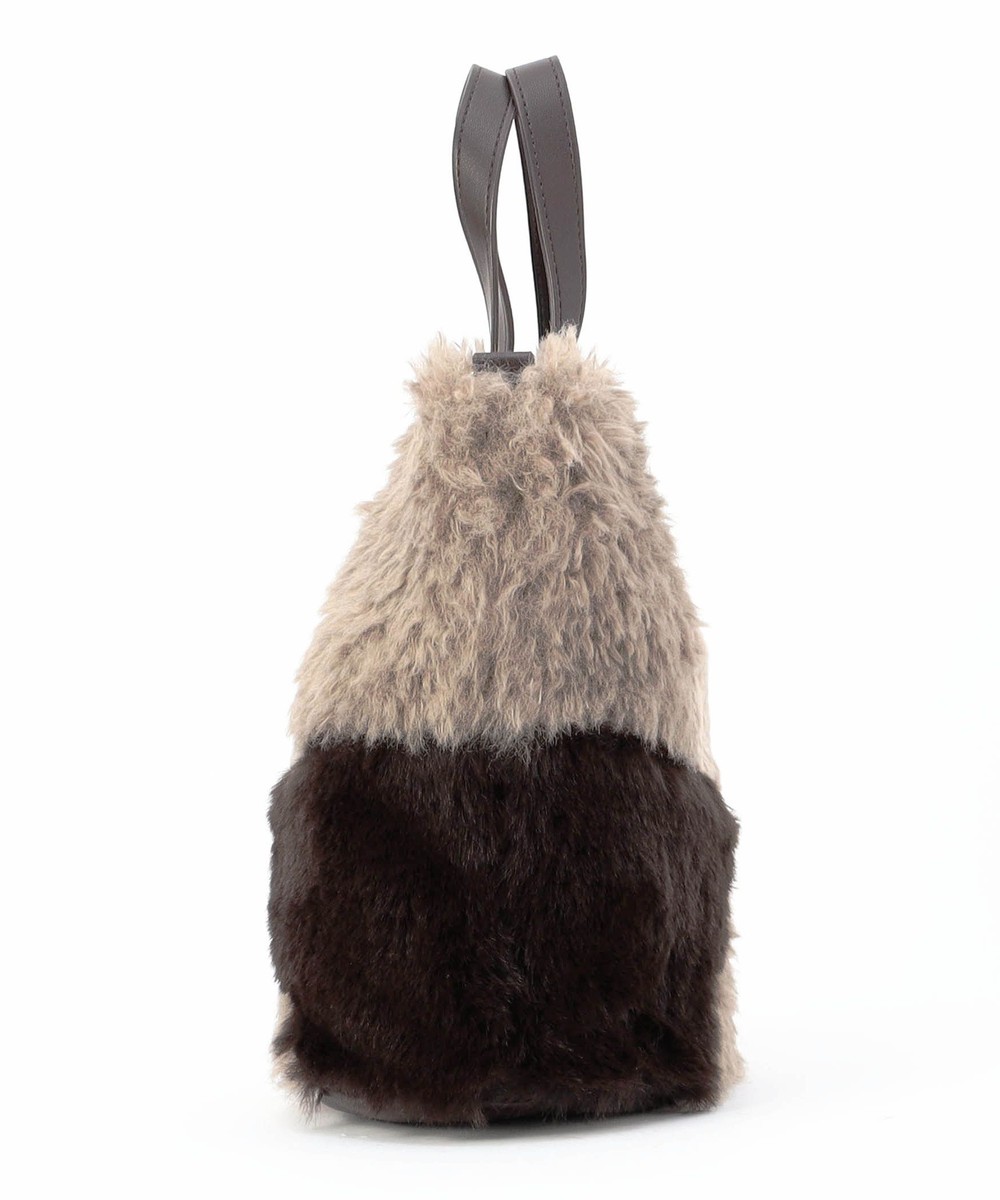 素材の違うフェイファーをパネル状にしたデザインバッグ。