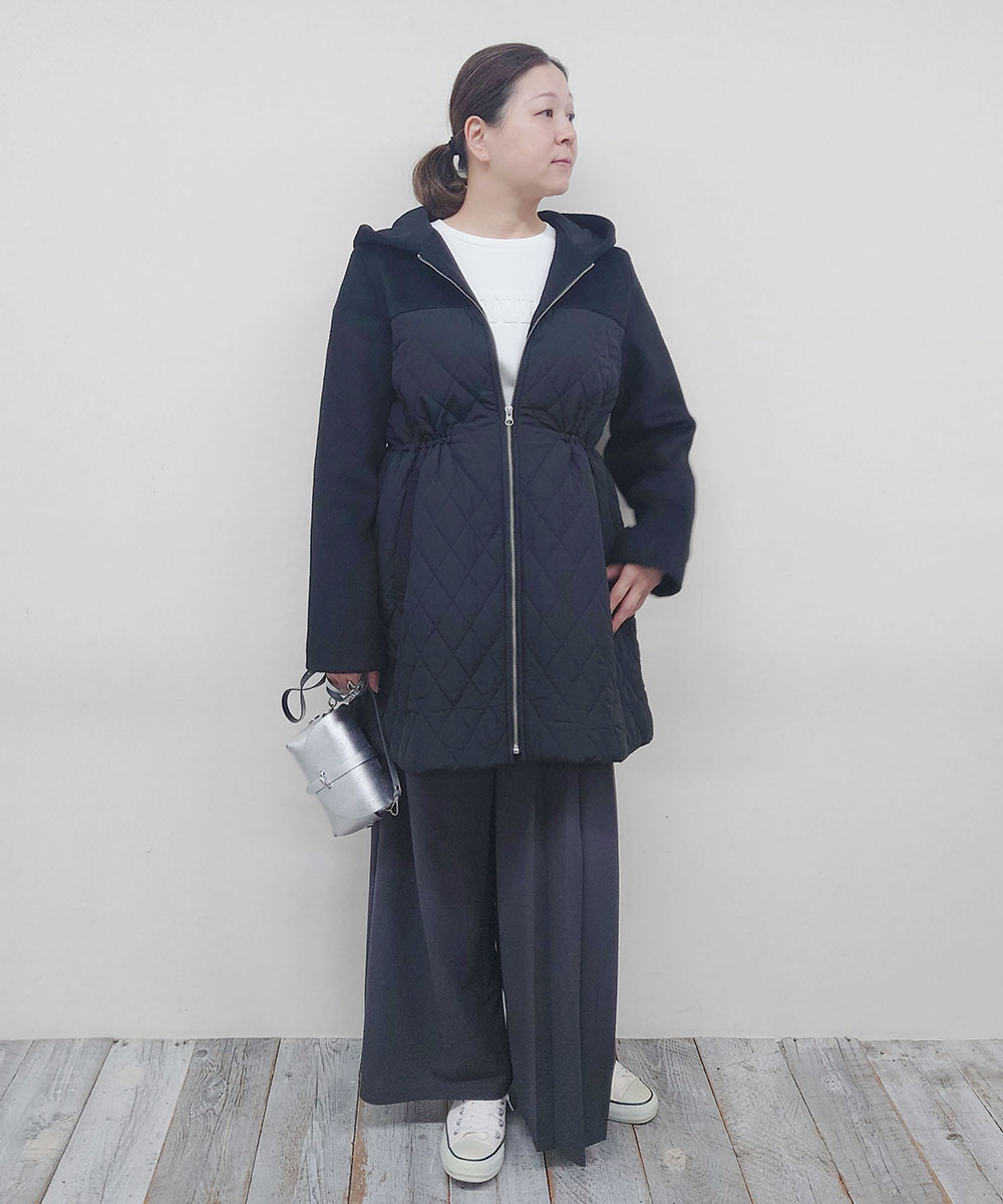 素材/表地キルト部分:ポリエステル100% 中わた:ポリエステル100% 表地別布:ポリエステル80% アクリル10% レーヨン10% 裏地:ポリエステル100%