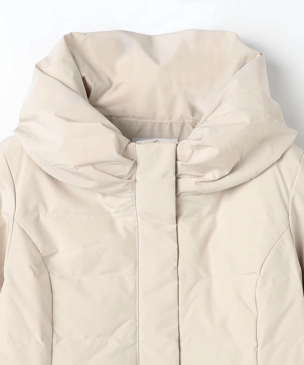 首元までダウンが入ったボリューム衿なので、寒い日にも前をしっかり閉める事で暖かく着用出来る、マフラー要らずなデザインです。