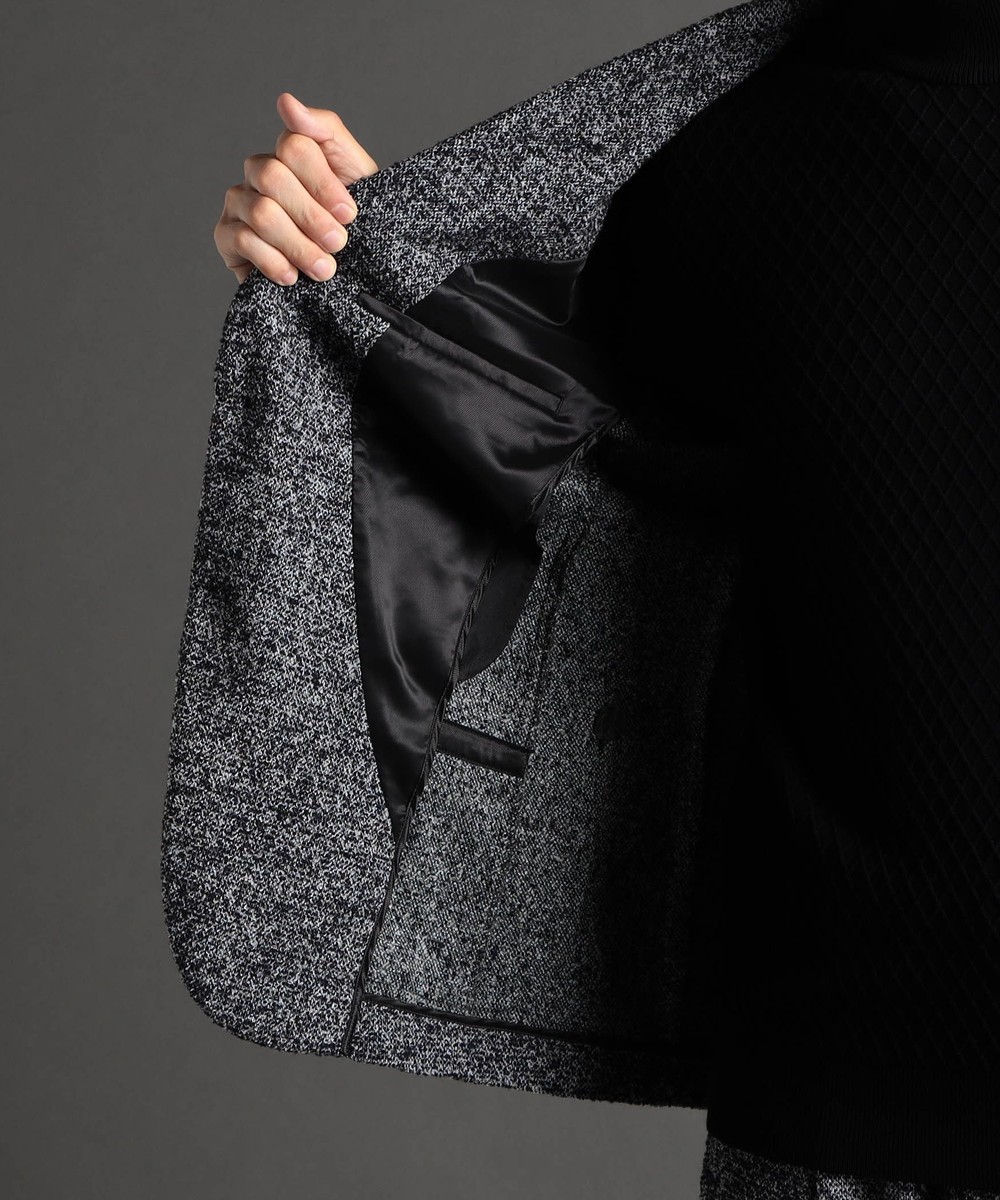 素材/表地:毛38% ポリエステル28% レーヨン12% アクリル12% ナイロン9% ポリウレタン1% 裏地:ポリエステル100%