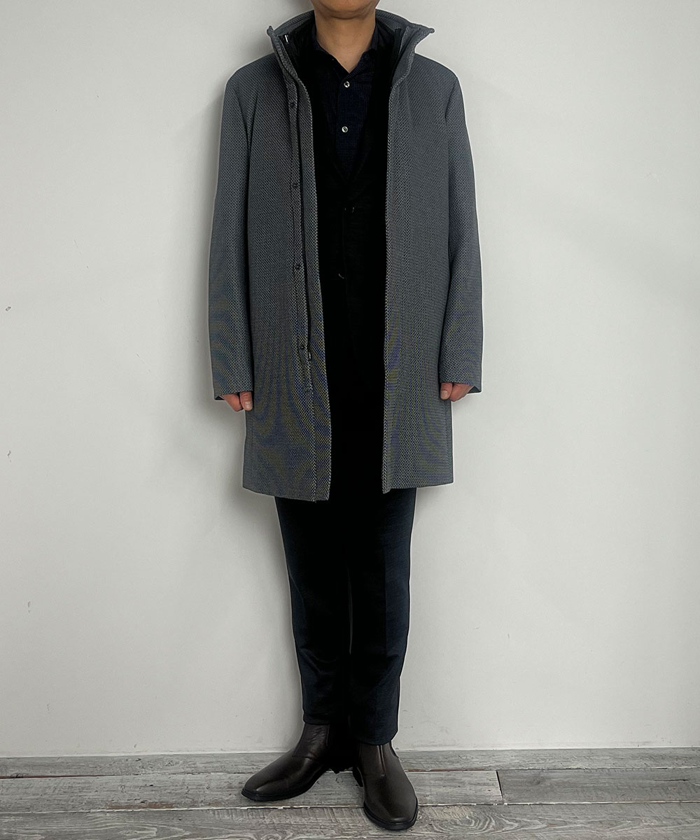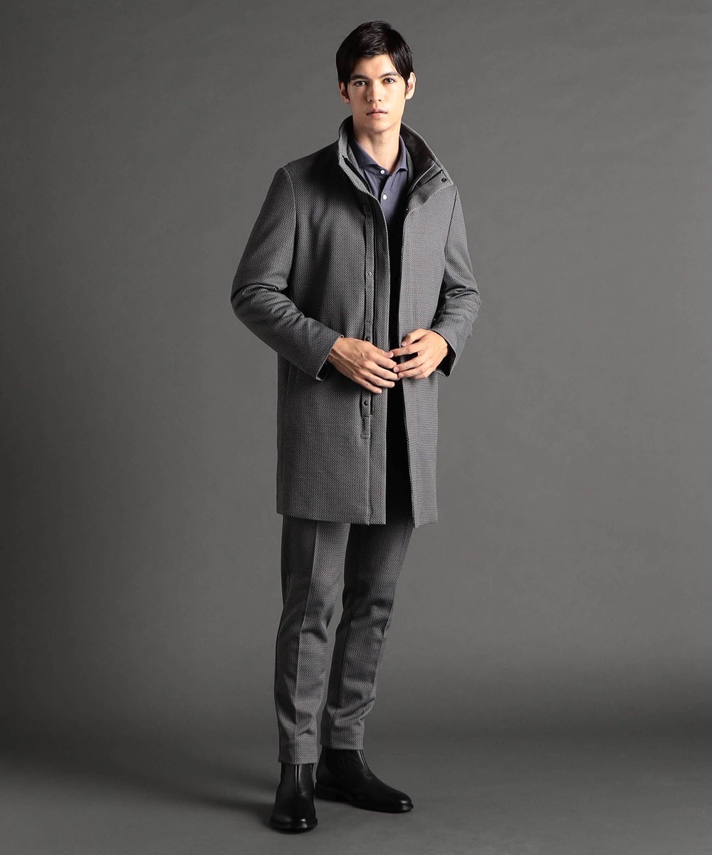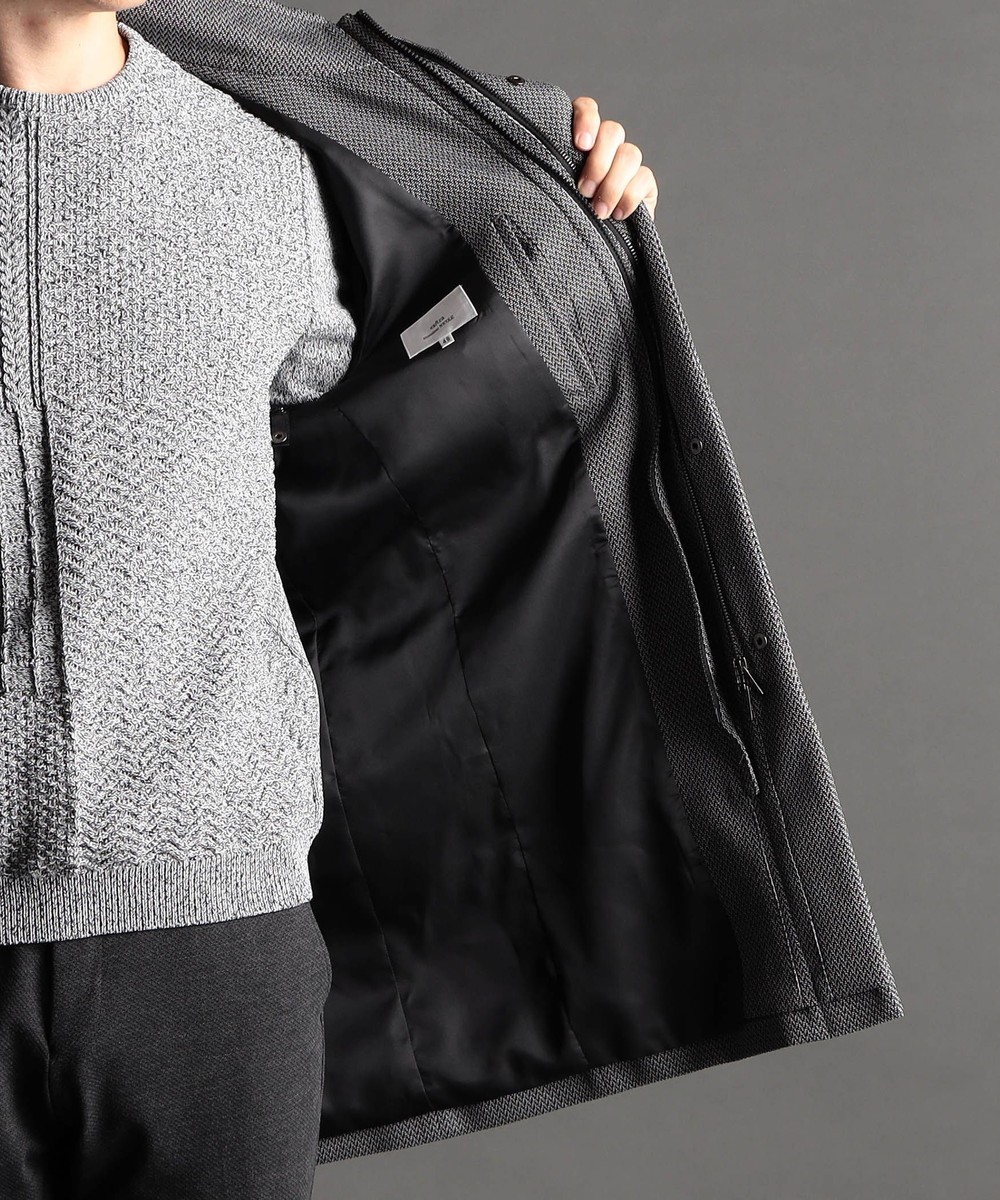 ヘリンボンダブルジャカード 3Wayスタンドカラーコート