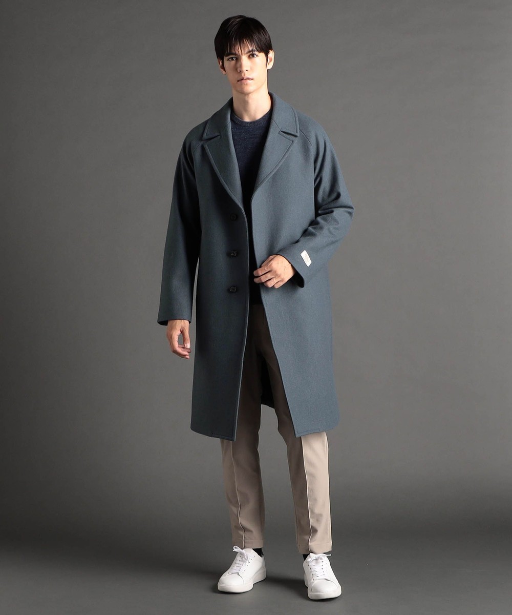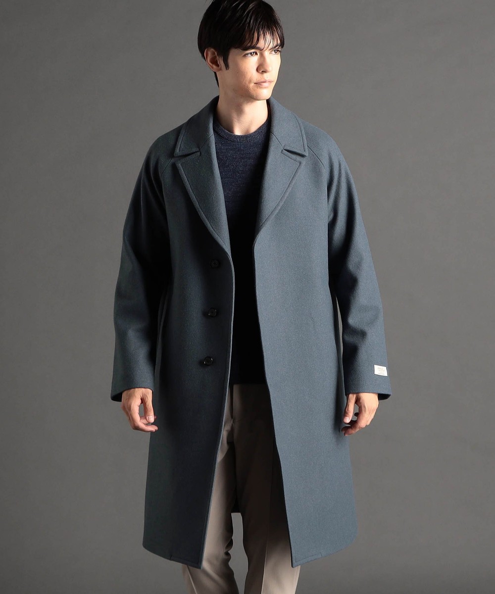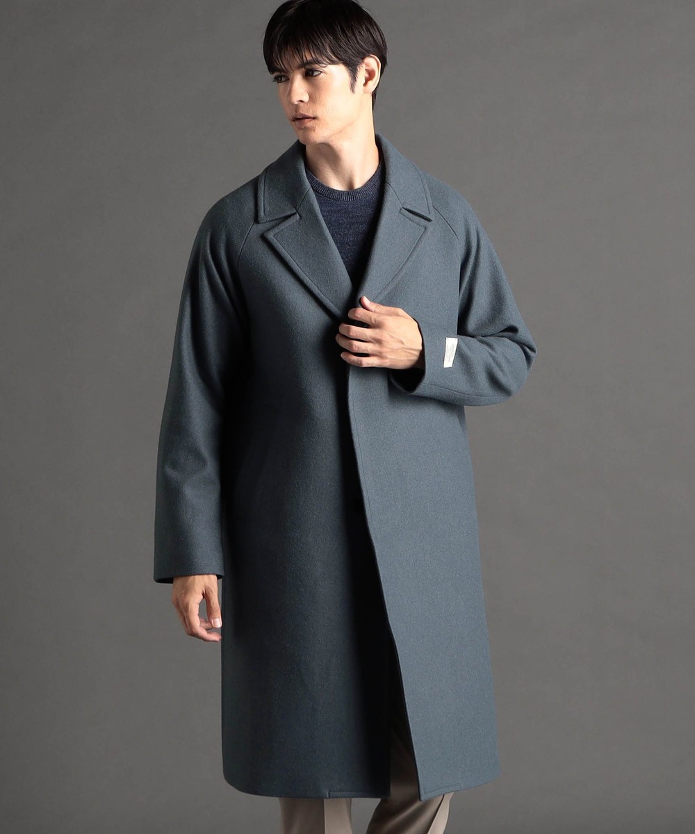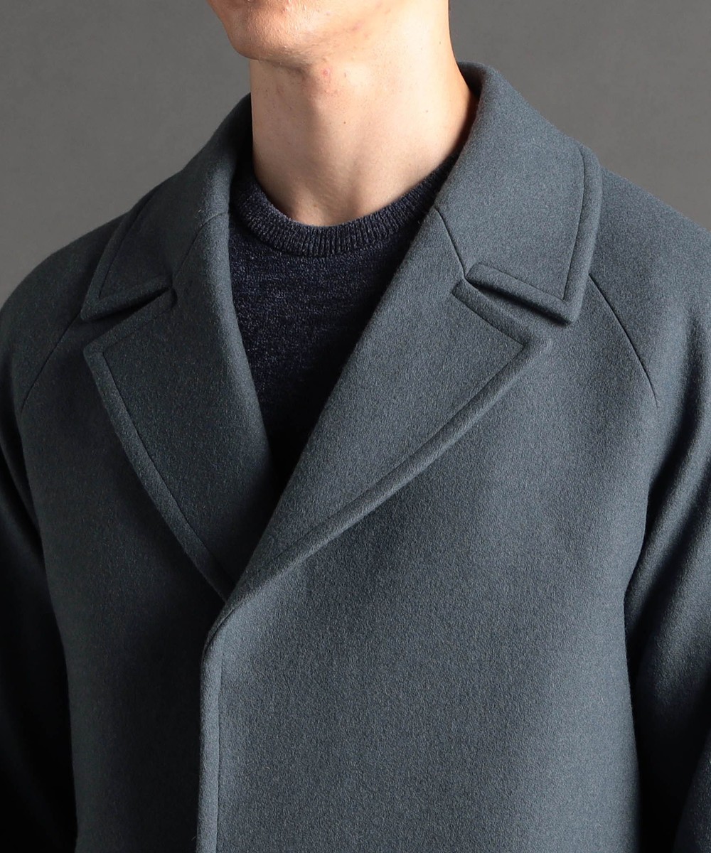 比翼仕立てのフロントボタン、ゆとりのあるラグランスリーブなど、オーバーシルエットによるスタイリングの新領域を拡張するアーバンモデル。