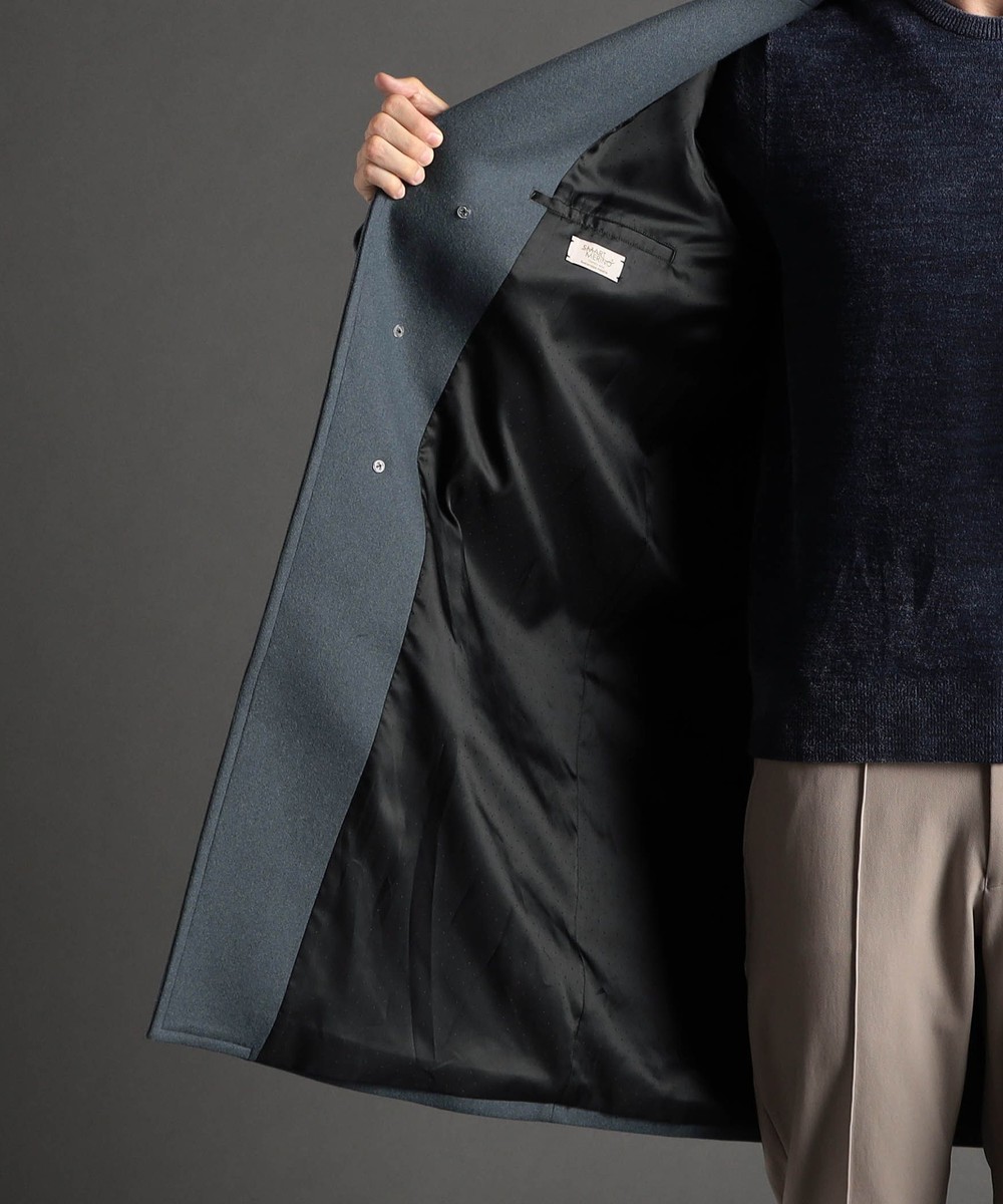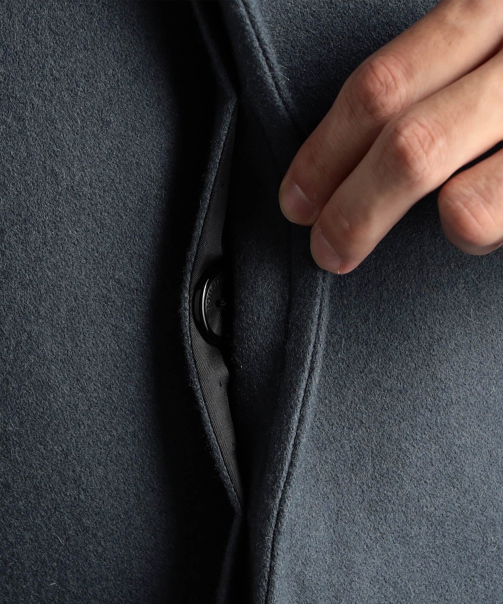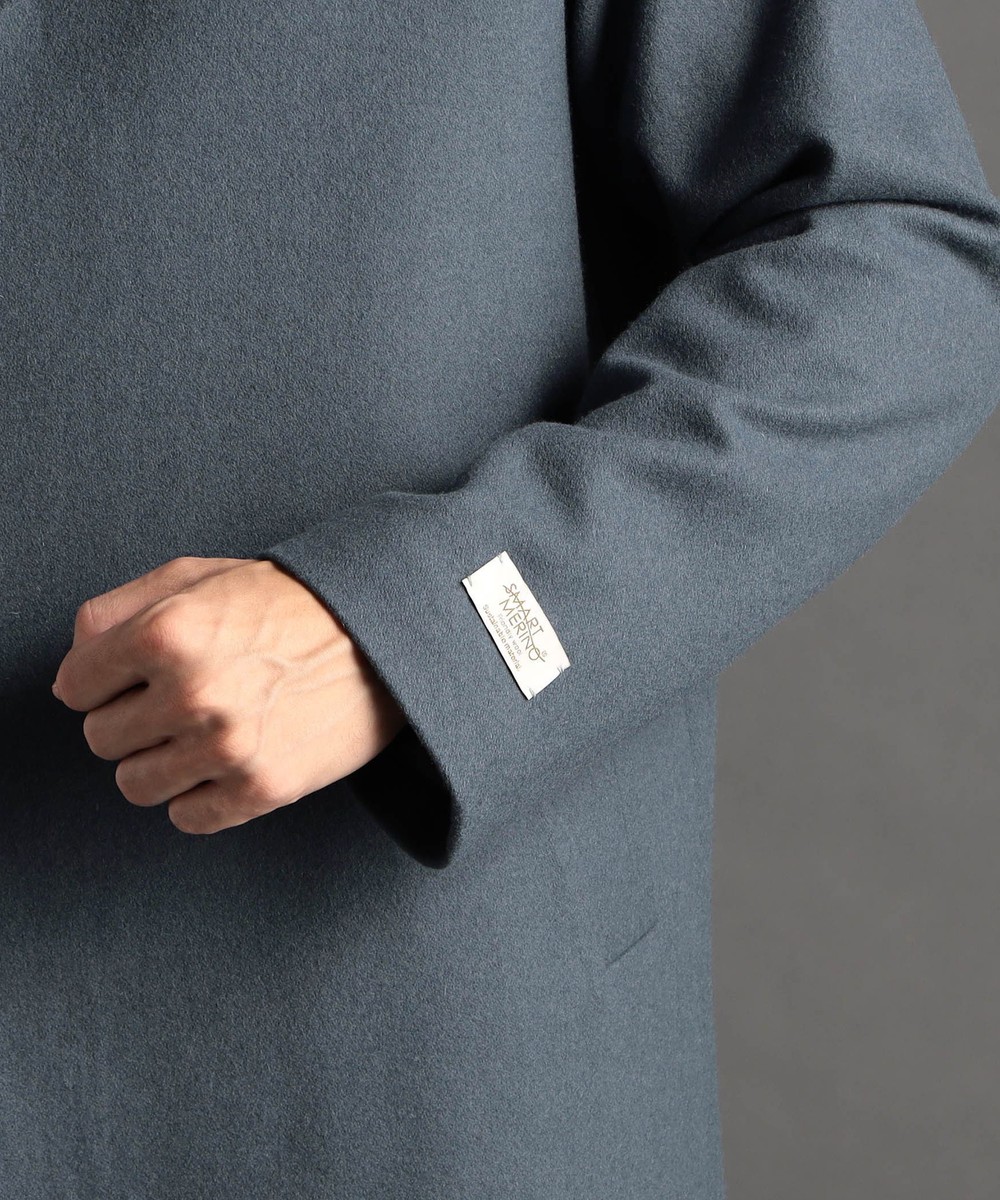 SUPER100's原料のウールを使用したシングルメルトン。繊維が細く柔らかいメリノウールを使用し、保温性を高めた上質なノンミュールジングウール。