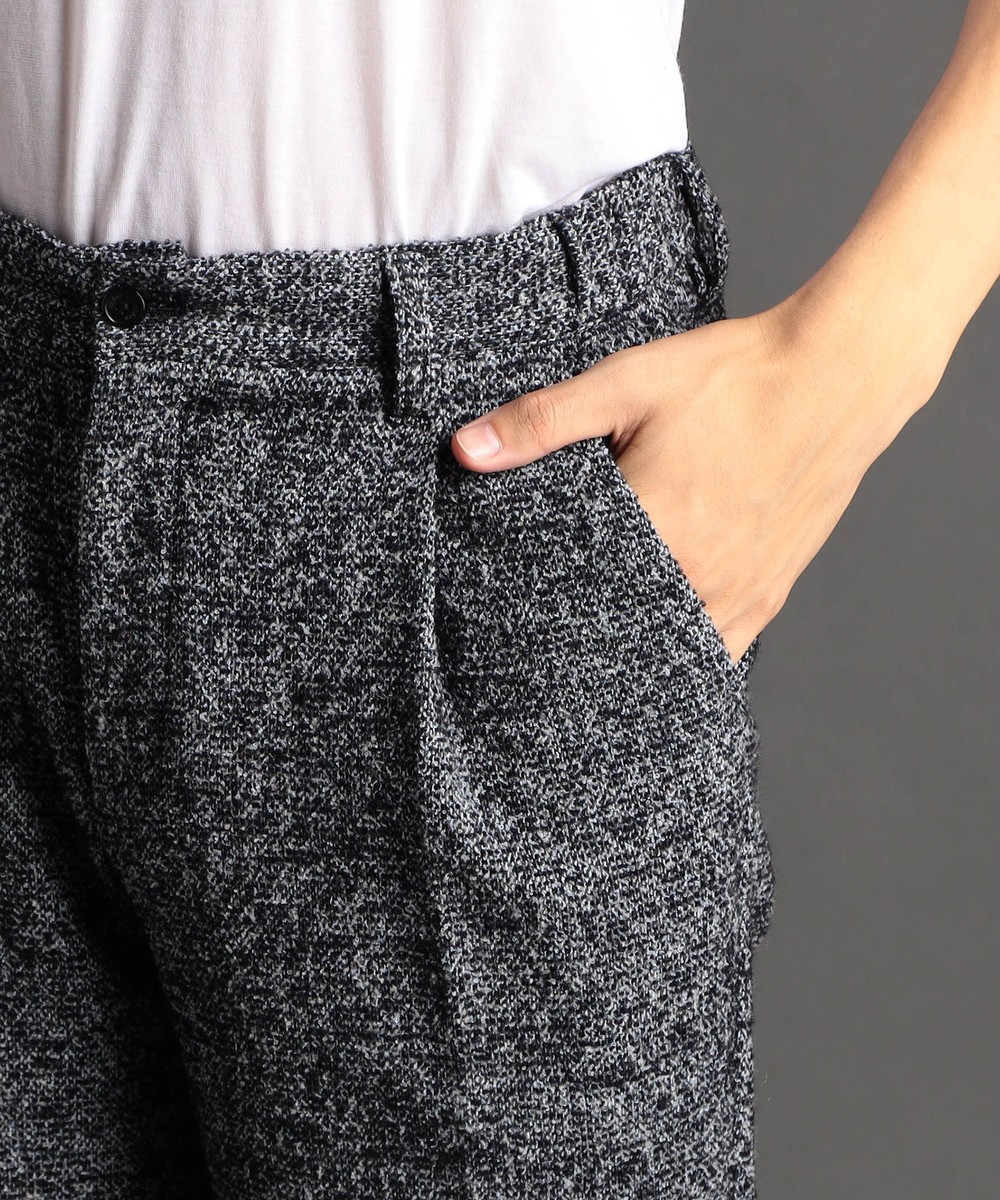 ウエストゴム&ドローコード、1プリーツデザインのワイドパンツデザインを採用。