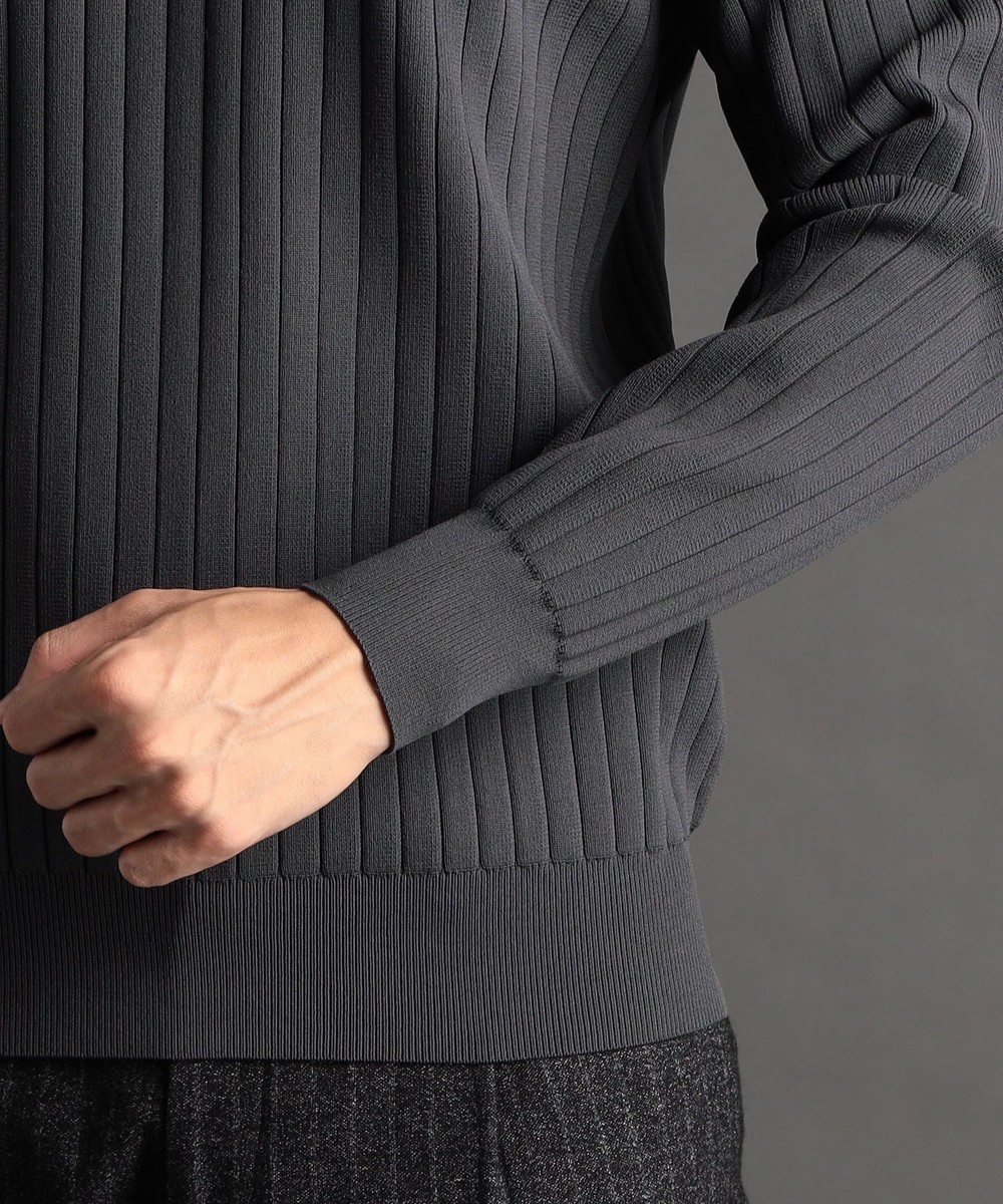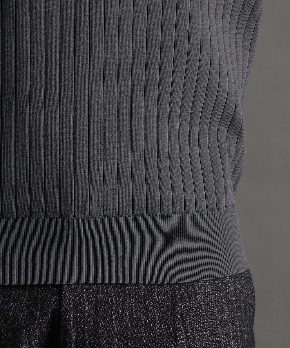 14Gを度詰めし、しっかりとしたハリを持ちながらも軽い着用感を追求したポリエステルニット。伸縮性にも富んでおり、快適な着心地を実現。