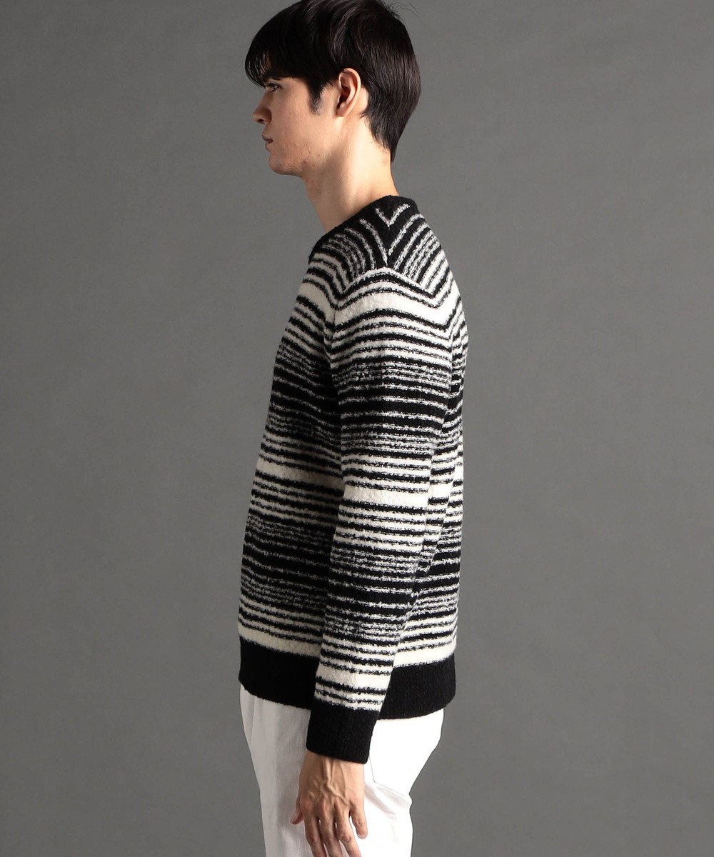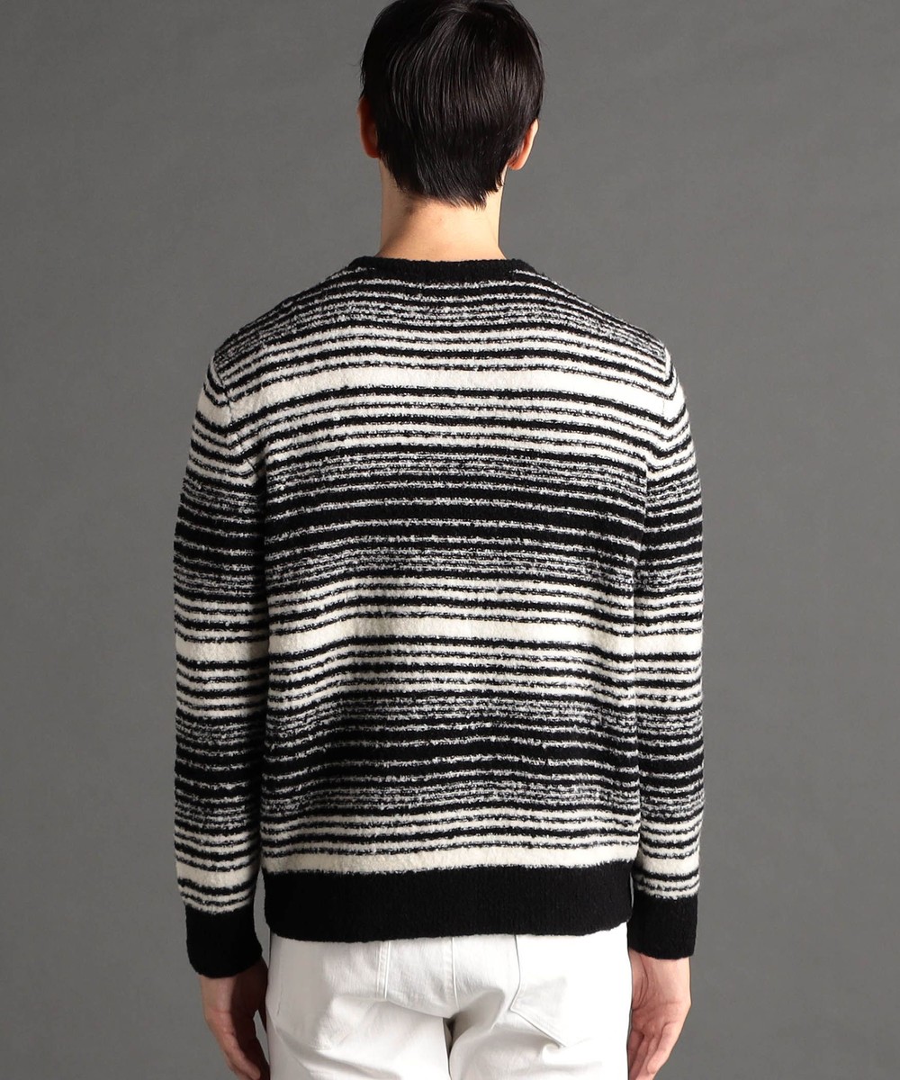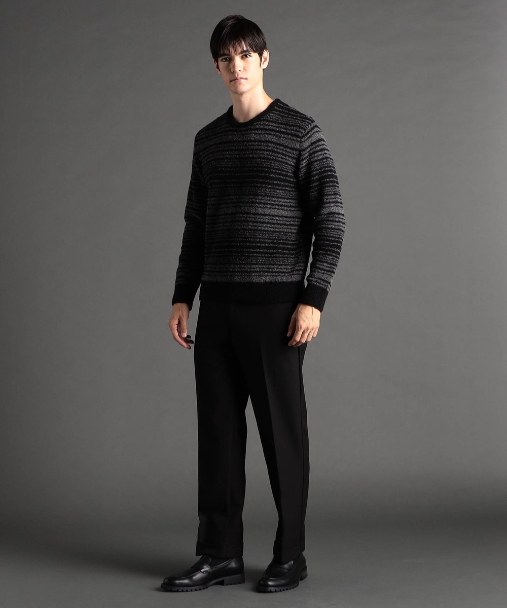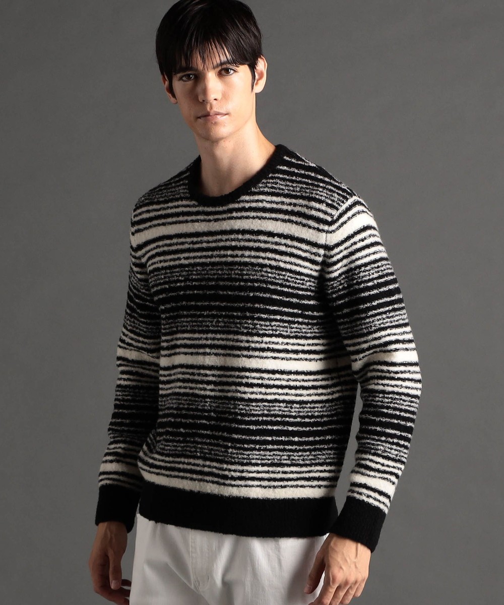 フェードボーダーのクルーネックニット。緩いグラデーションが都会的なモード感を演出。