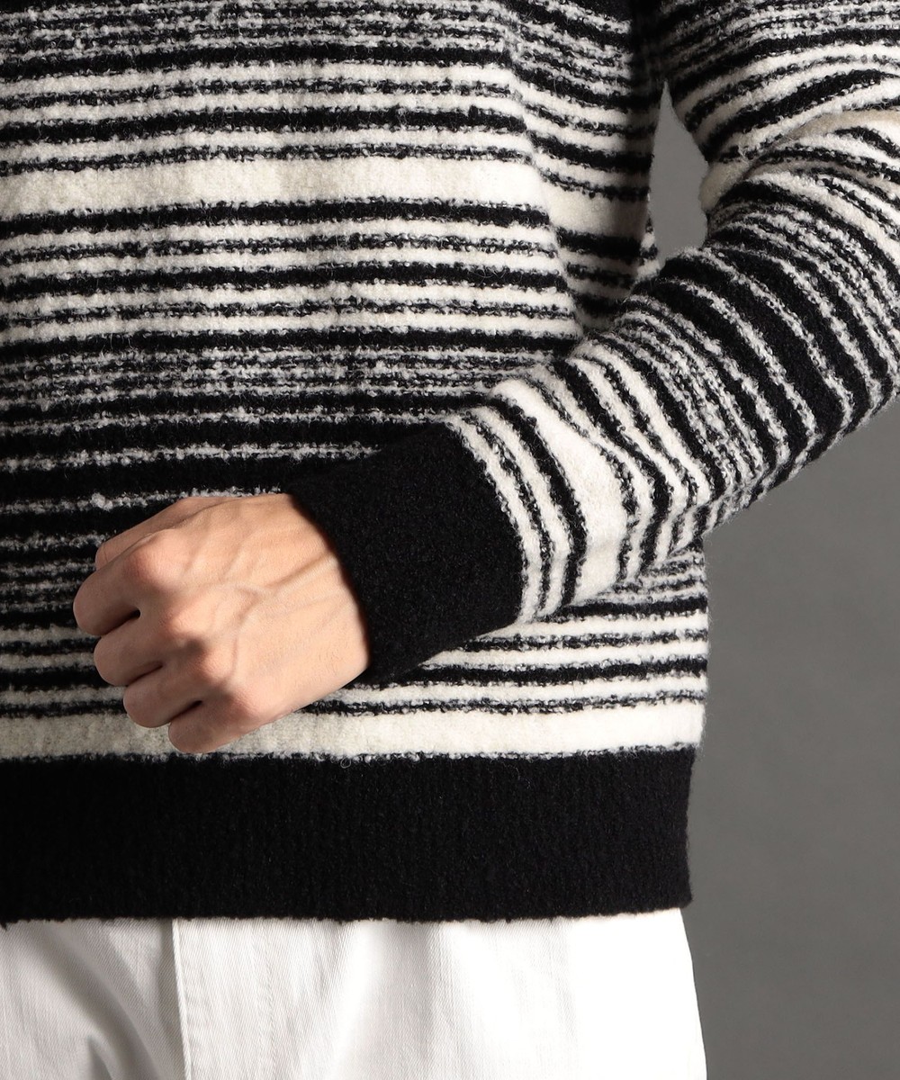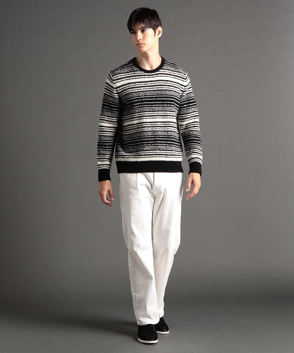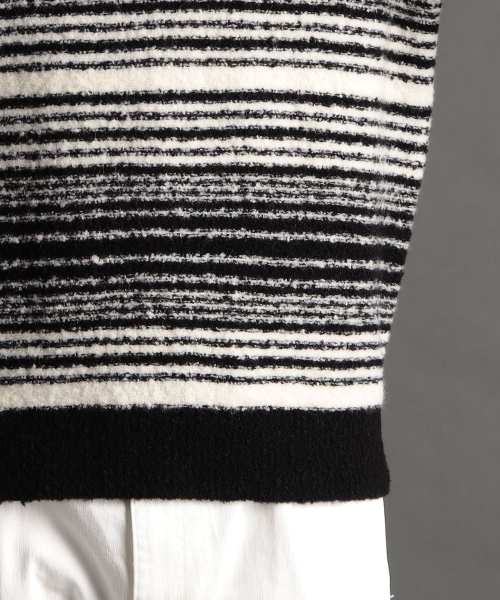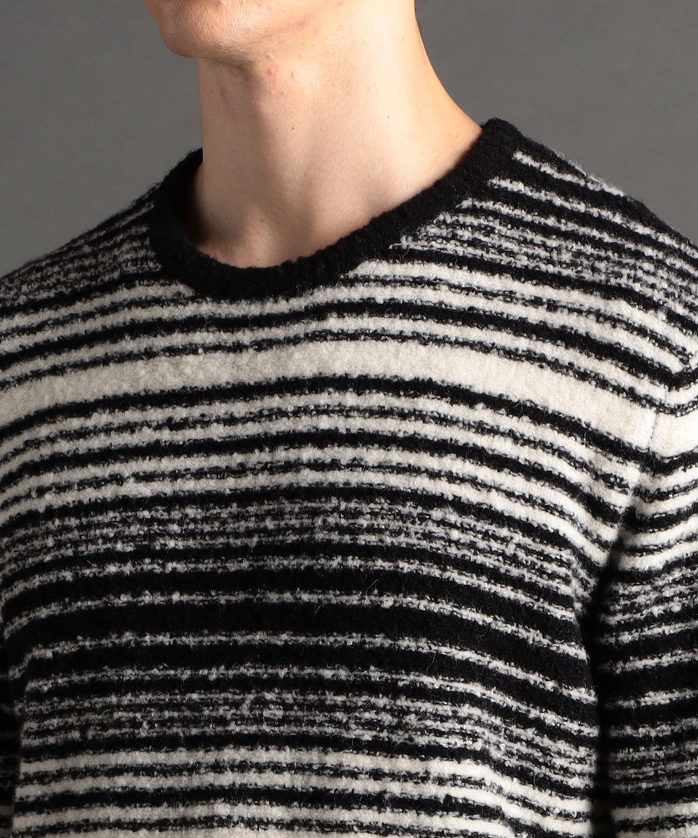 フェードボーダーのクルーネックニット。緩いグラデーションが都会的なモード感を演出。
