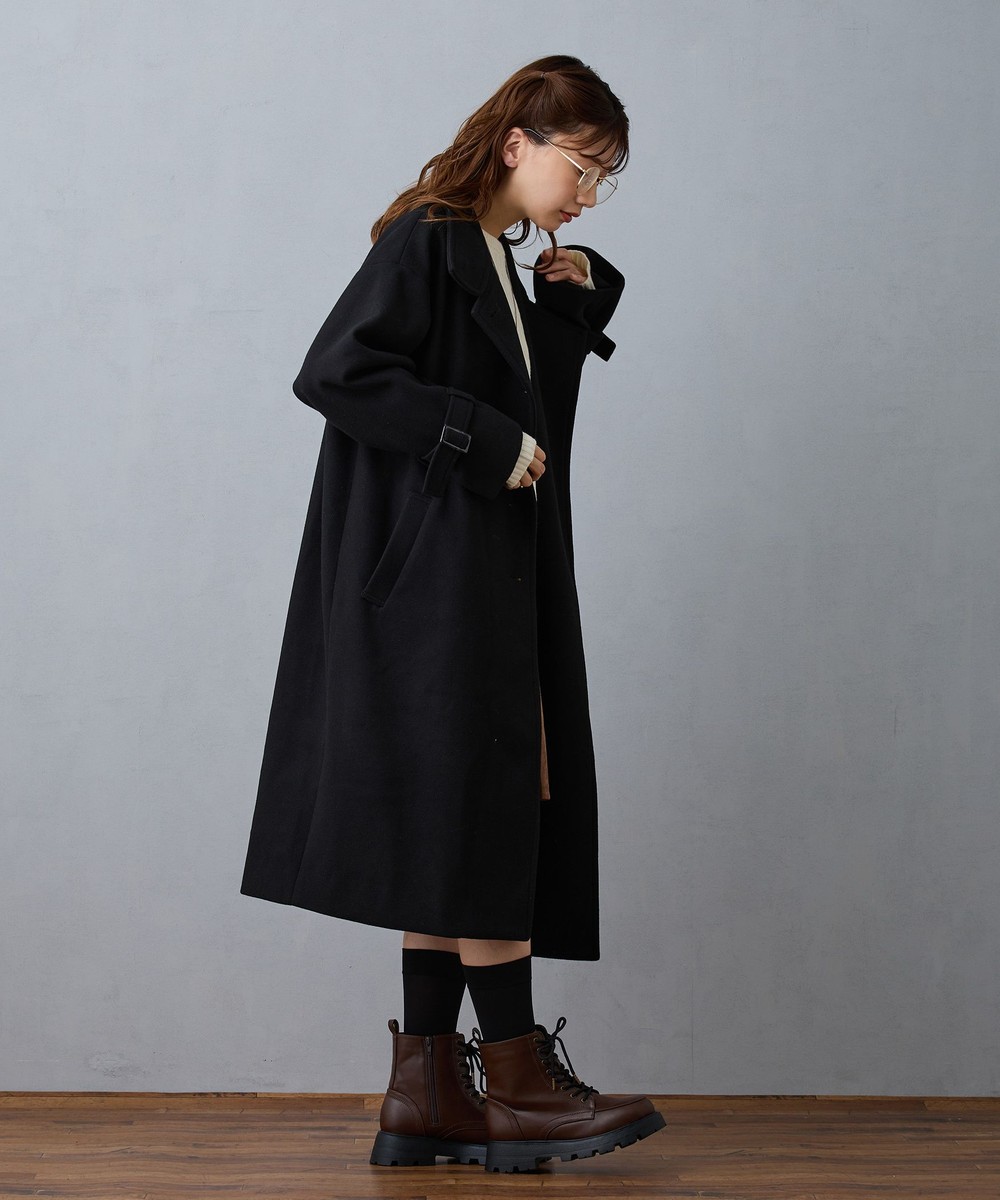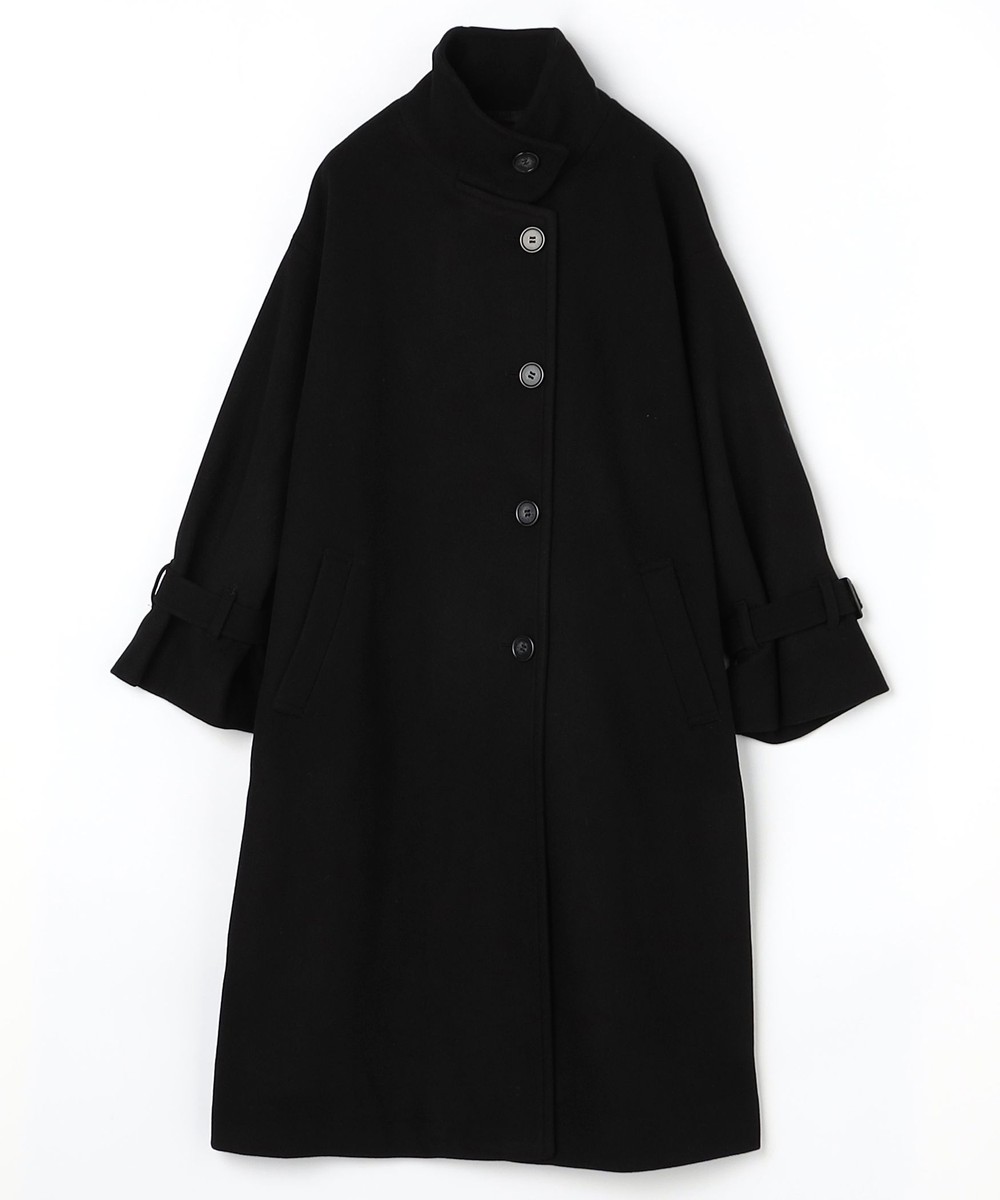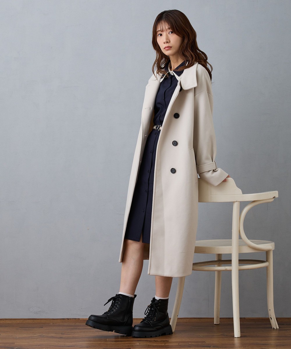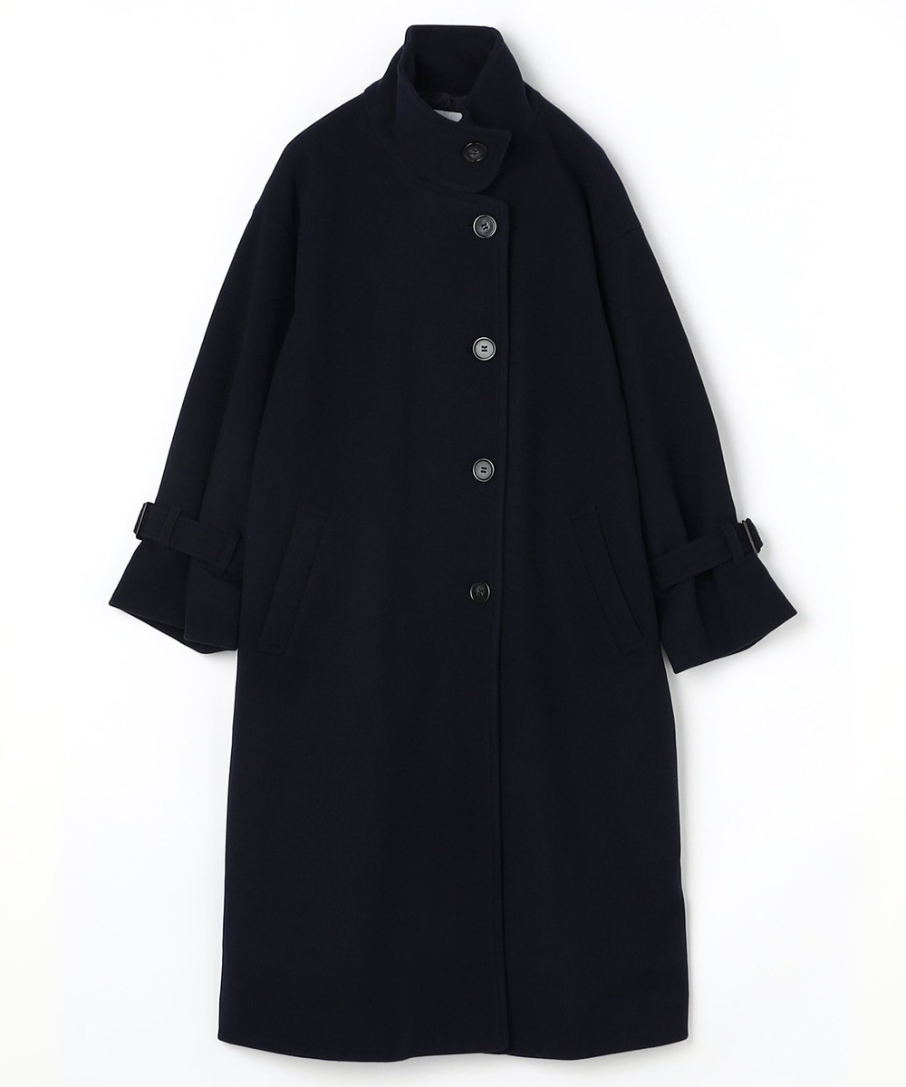 大きめのスタンドカラーがポイントのロングコートは、羽織るだけで一気にこなれ感が出てお洒落な印象に。