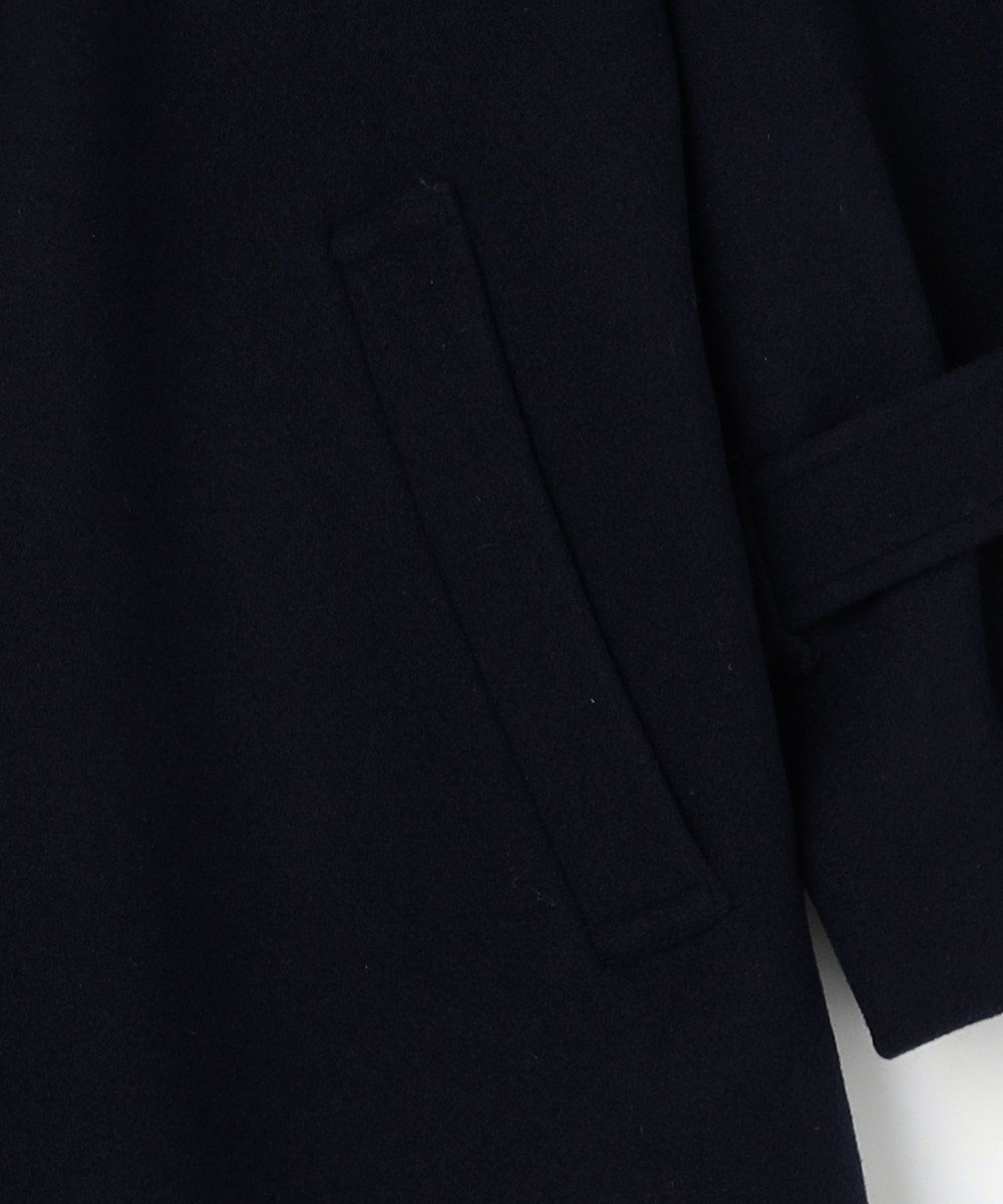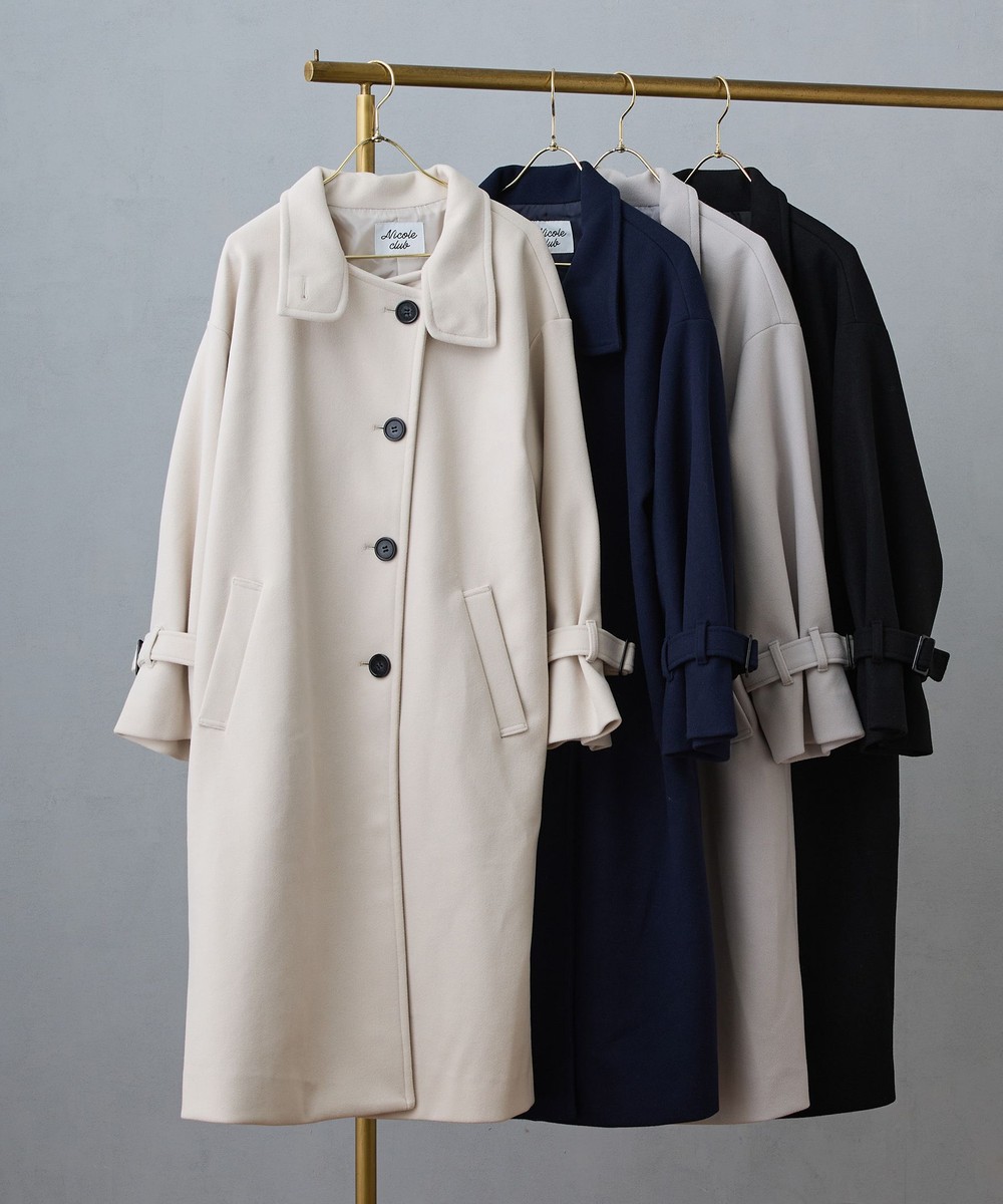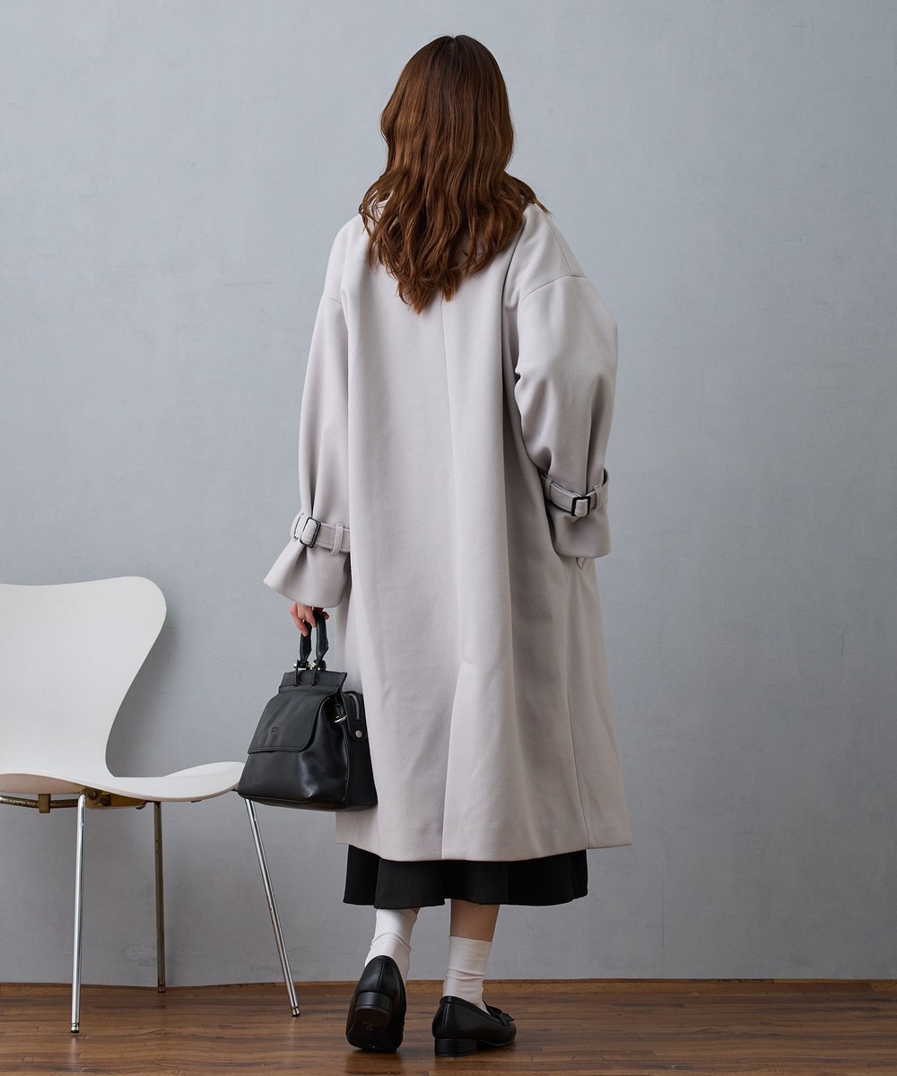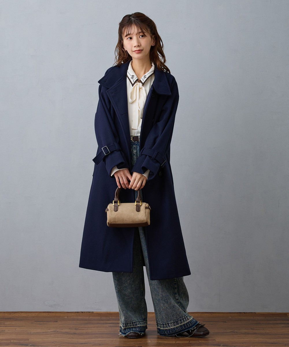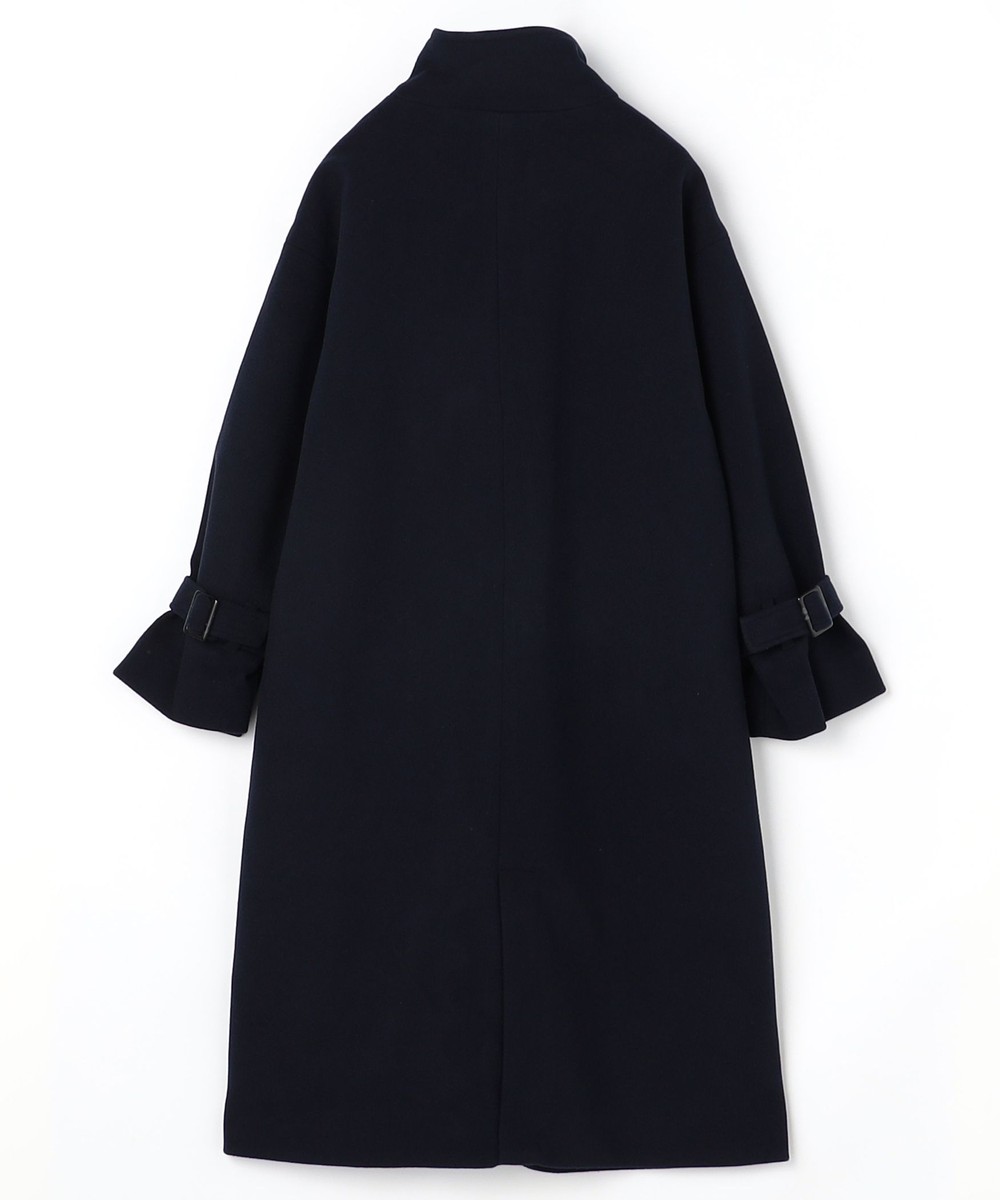 大きめのスタンドカラーがポイントのロングコートは、羽織るだけで一気にこなれ感が出てお洒落な印象に。