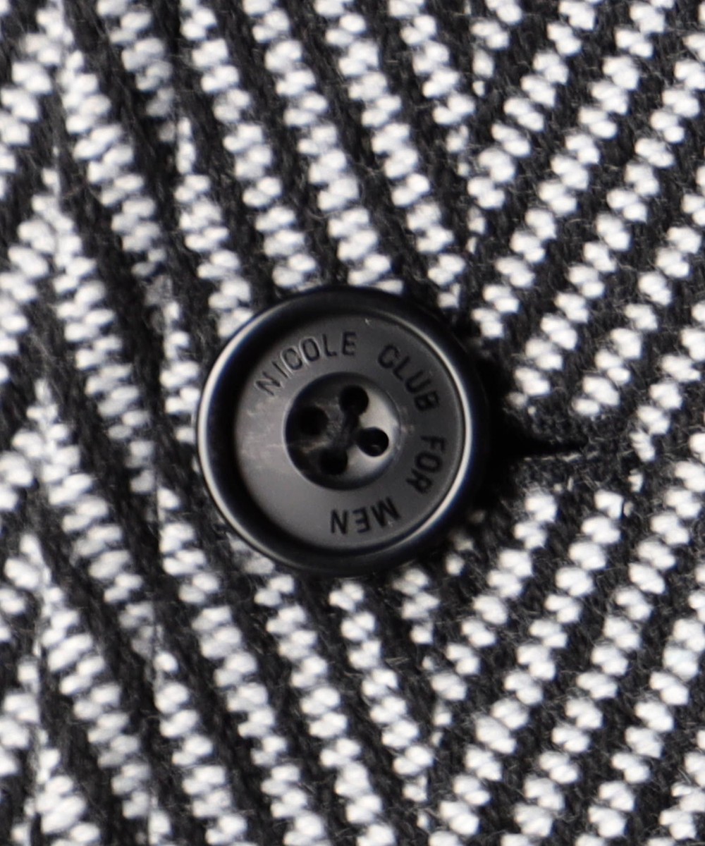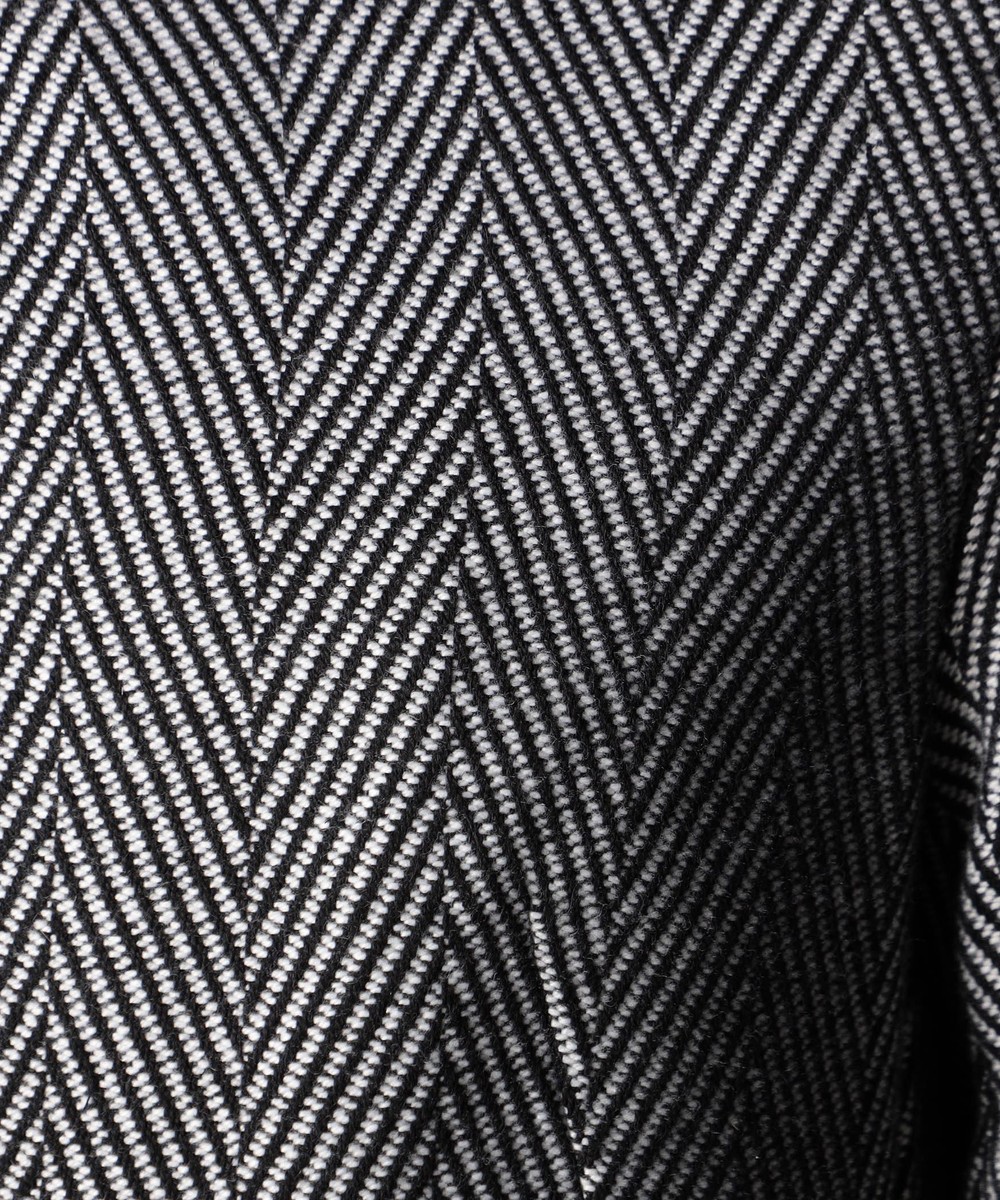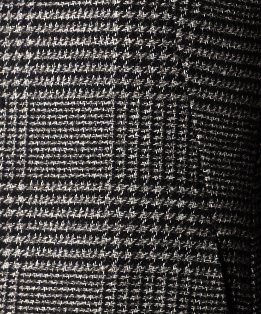無地の2色は、ポリエステルのニットジャージ素材の表面を起毛、縮絨した様におさえたメルトン風仕上げのウールライクな素材。ジャージ素材なのでストレッチ性があり、プリッとした横張り感が強いのでシルエットを綺麗に作ります。91その他2は、ポリエステルの先染めグレンチェック素材。92その他3は、白と黒のコントラストが利いた先染めのBIGヘリンボン素材。無地と肉感を揃えていますが、ジャージ素材では無いので仕上がりと風合いが違い、ストレッチ性が無いので無地タイプと着心地が違いますのでご注意ください。