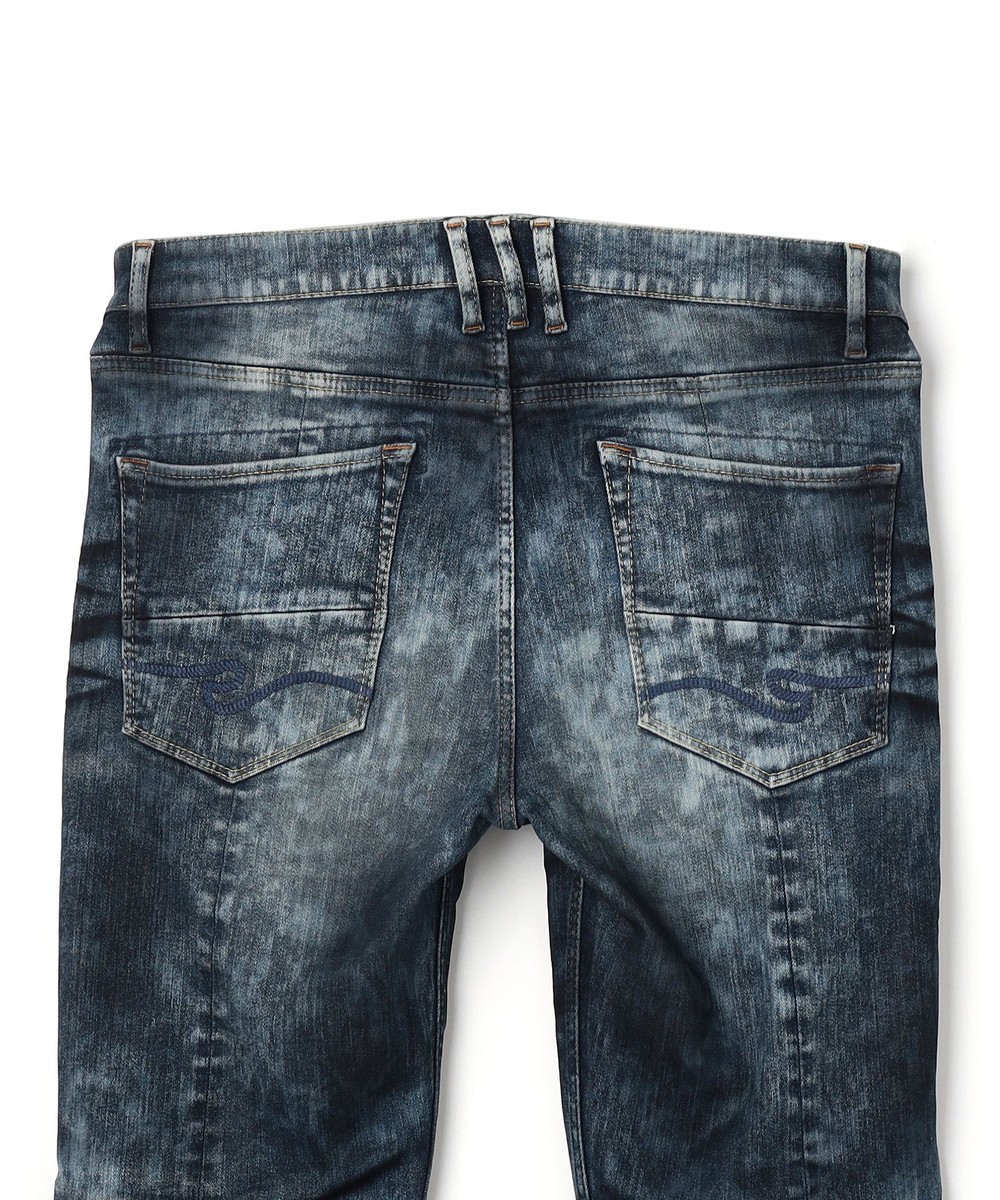 多くのヨーロッパブランドが使用する世界のデニムの産地、トルコのNo.1ブランド「ISKO(イスコ)」の11oz(オンス)ストレッチデニムを採用。程好い肉厚感とトルコデニムならではの上品な色落ち、膝抜けしにくい抜群のストレッチ性が特徴です。