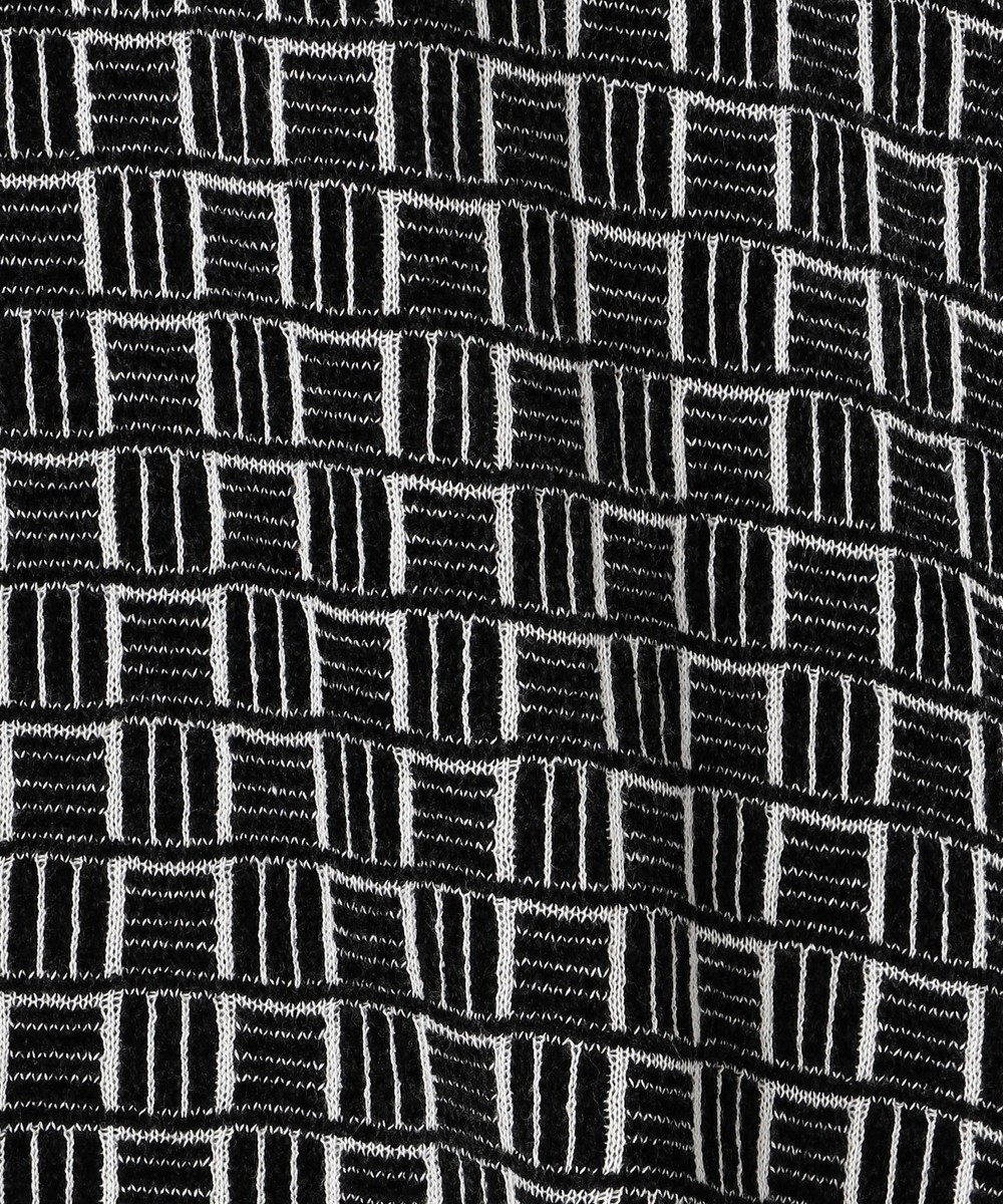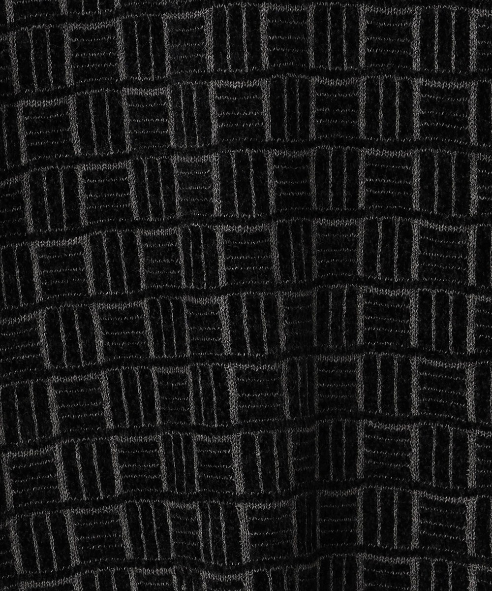 上品な光沢をもったレーヨンのブライトモール糸とポリエステルを混紡したジャカードニット素材。独特のなめらかさとドレープ感のあるソフトな風合いを表現しています。首廻りのチクつき感も無く、着心地の良いストレスフリーな仕上がりです。