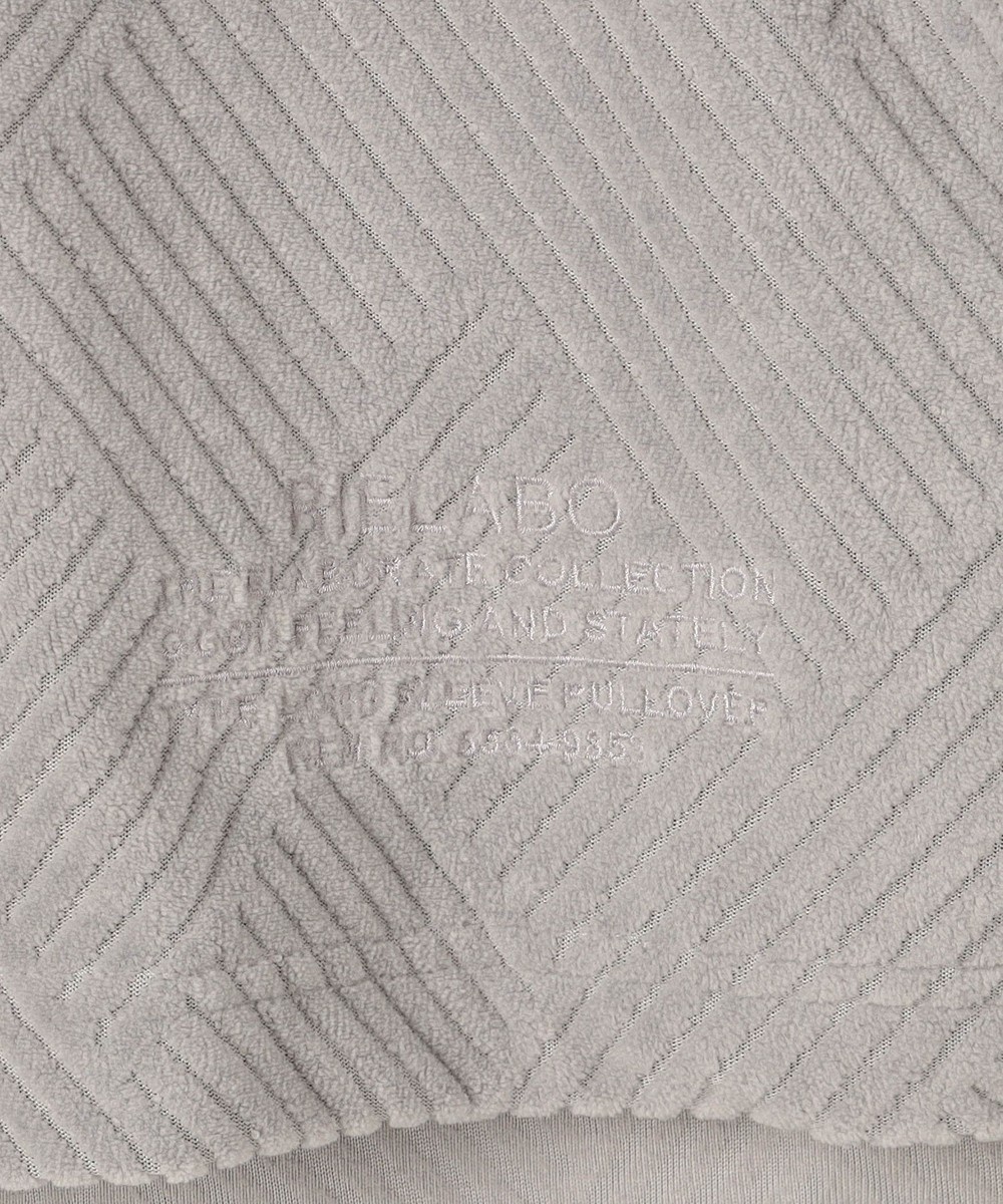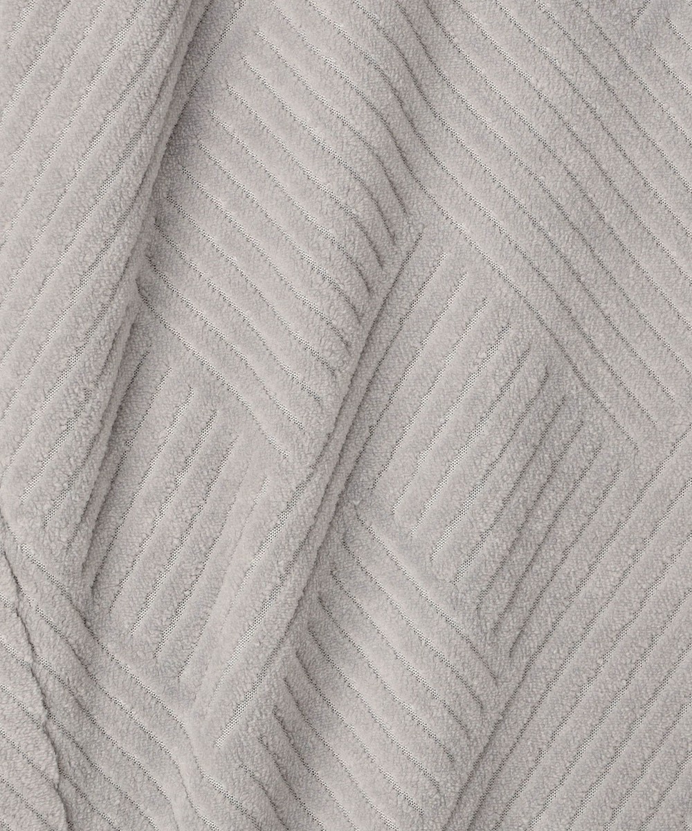 なめらかな手触りと上品な光沢感が特長のカットパイルジャカード素材。大柄の幾何柄をパイル部分と天竺部分の凹凸で表現しています。パイル部分の毛足を短く揃えることでベロア調の光沢感となめらかな質感を持たせています。