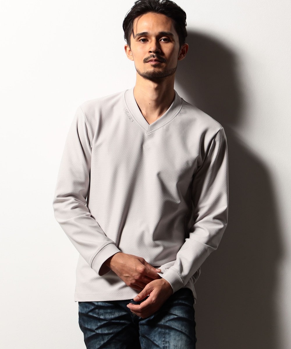衿元のブランドロゴ刺?やブランドネームに合わせた衿ぐりのテープ始末、脇のスリット仕様をポイントに、脇の縫い代には消臭抗菌テープを入れて機能性もプラスしたこだわりの仕上がりです。