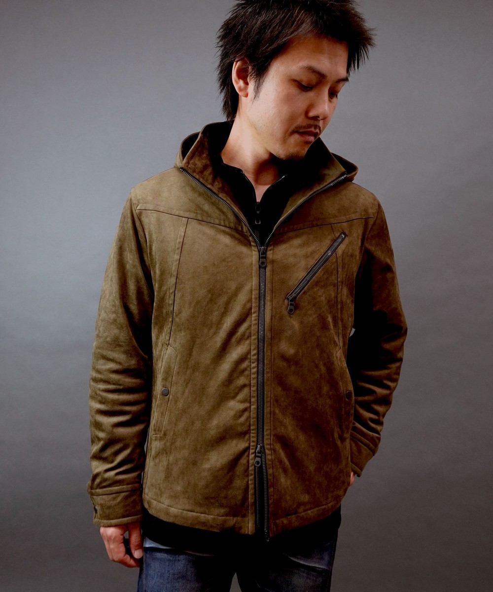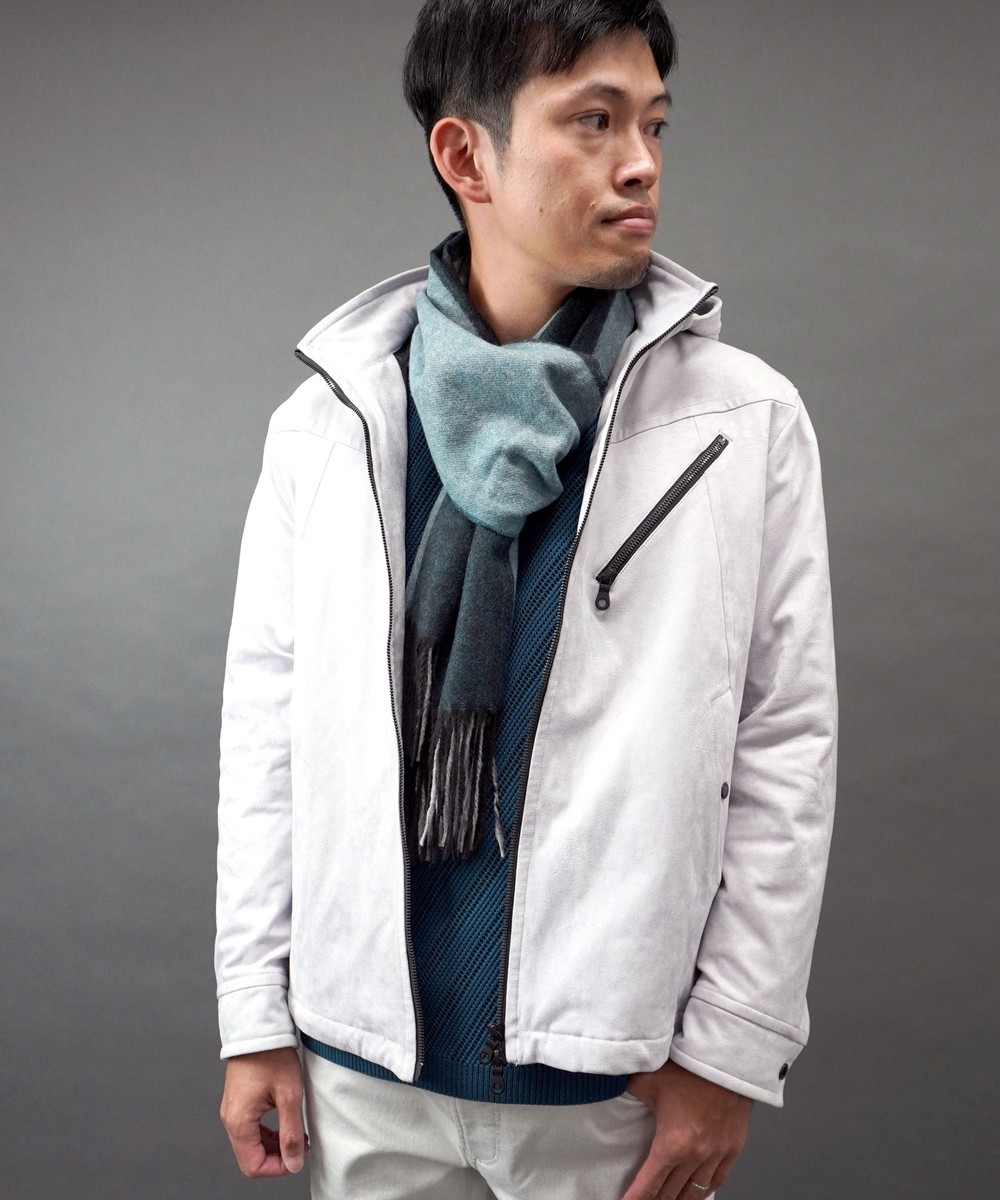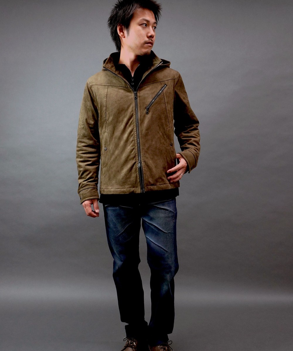 フード着脱仕様のスタンドジップブルゾン。