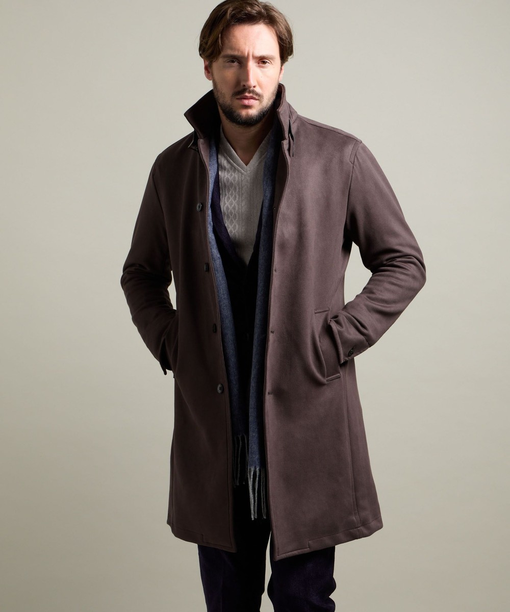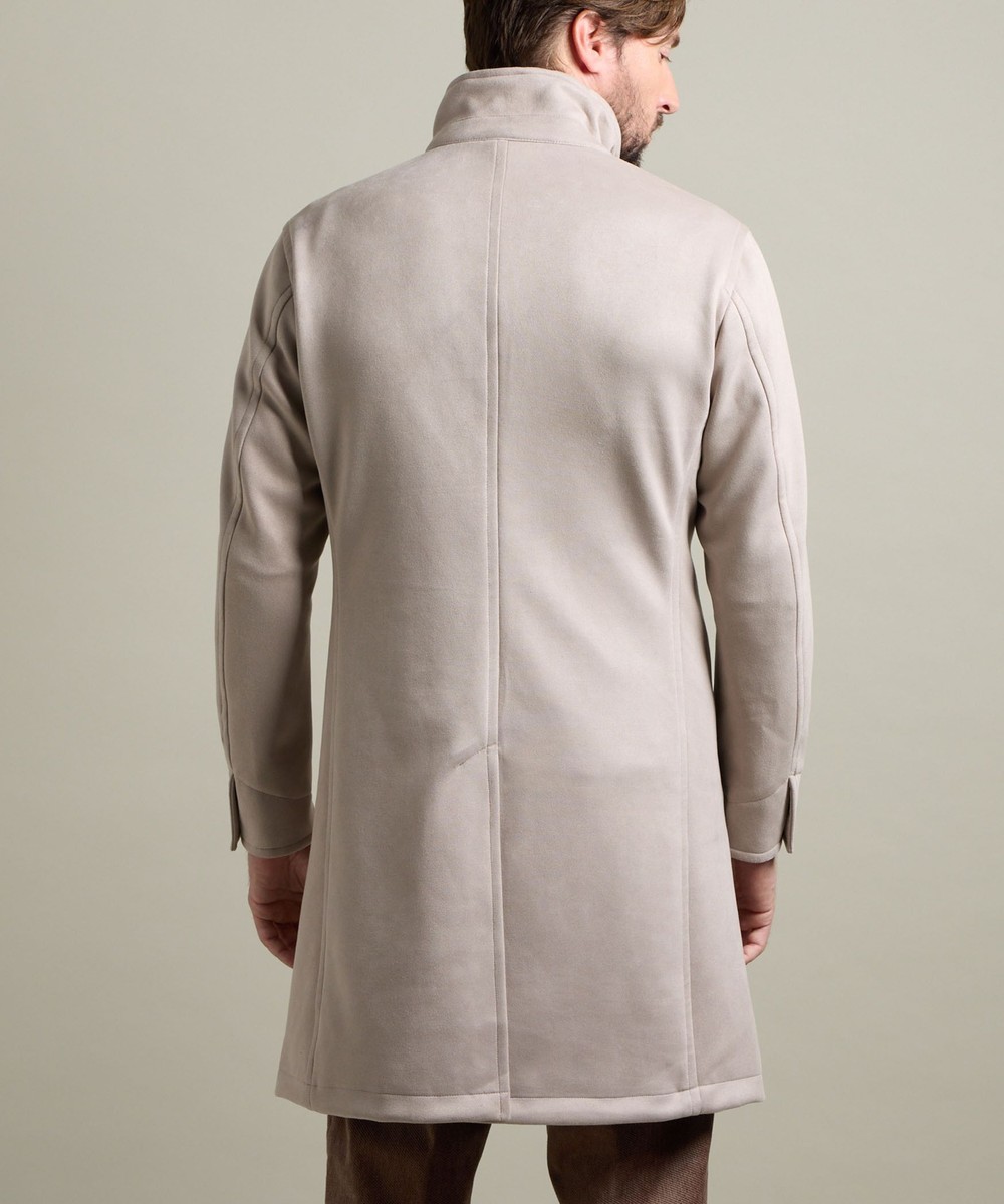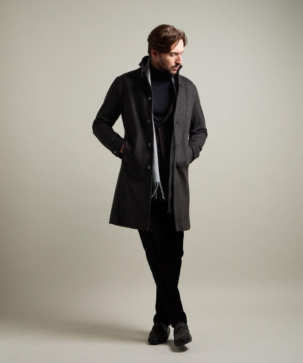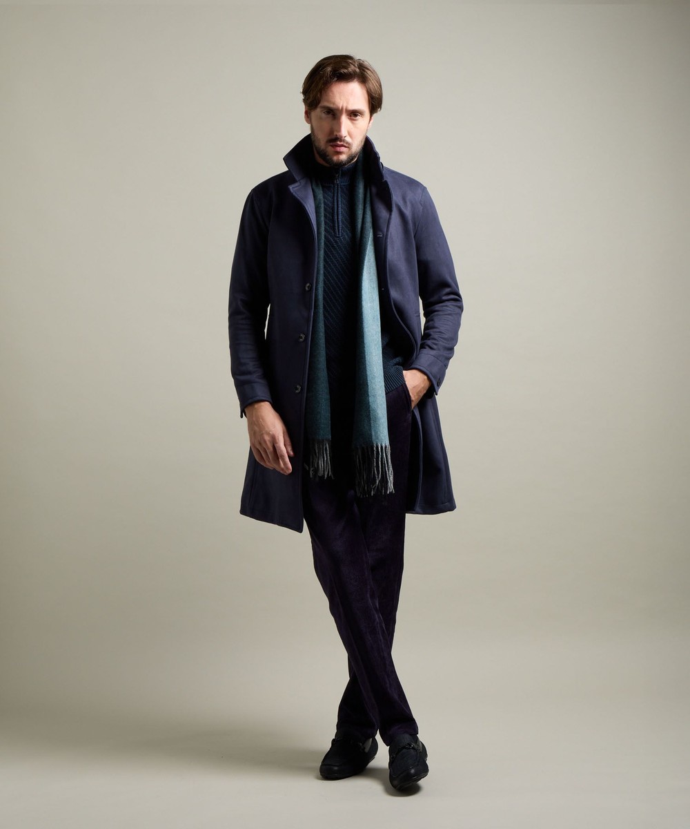 衿は立てても、畳んでチェスターコートのようにも着れる2way仕様。表地のストレッチ性を損なわせない為、裏地には全面ストレッチ裏地を使用。