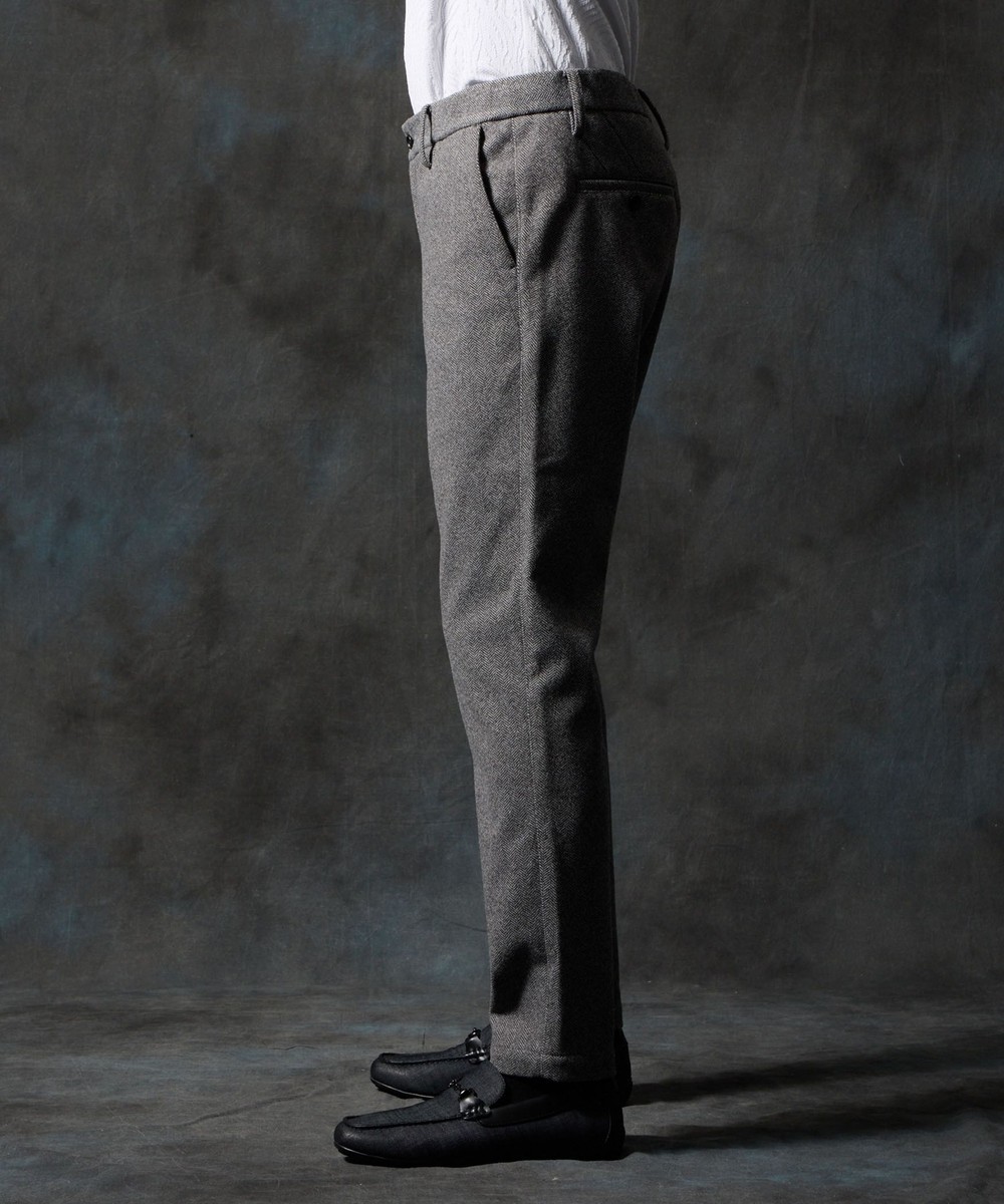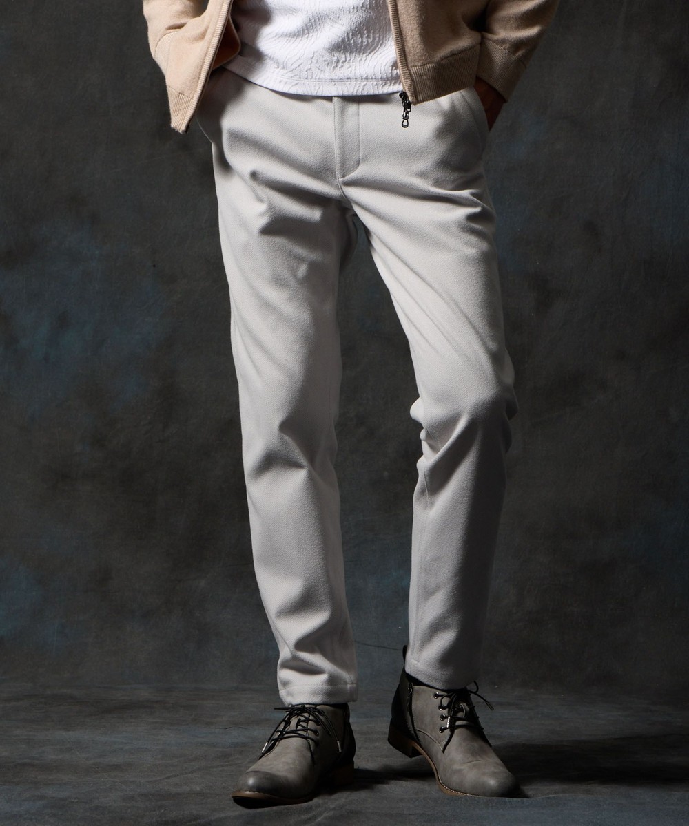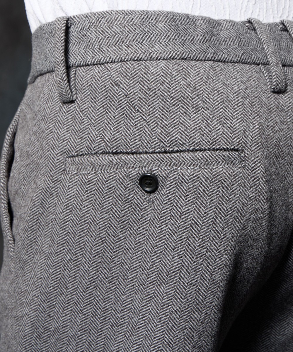 あえてセンタープレスを入れないことで、綺麗めになりすぎず、合わせるアイテムを選ばない仕上げにしています。