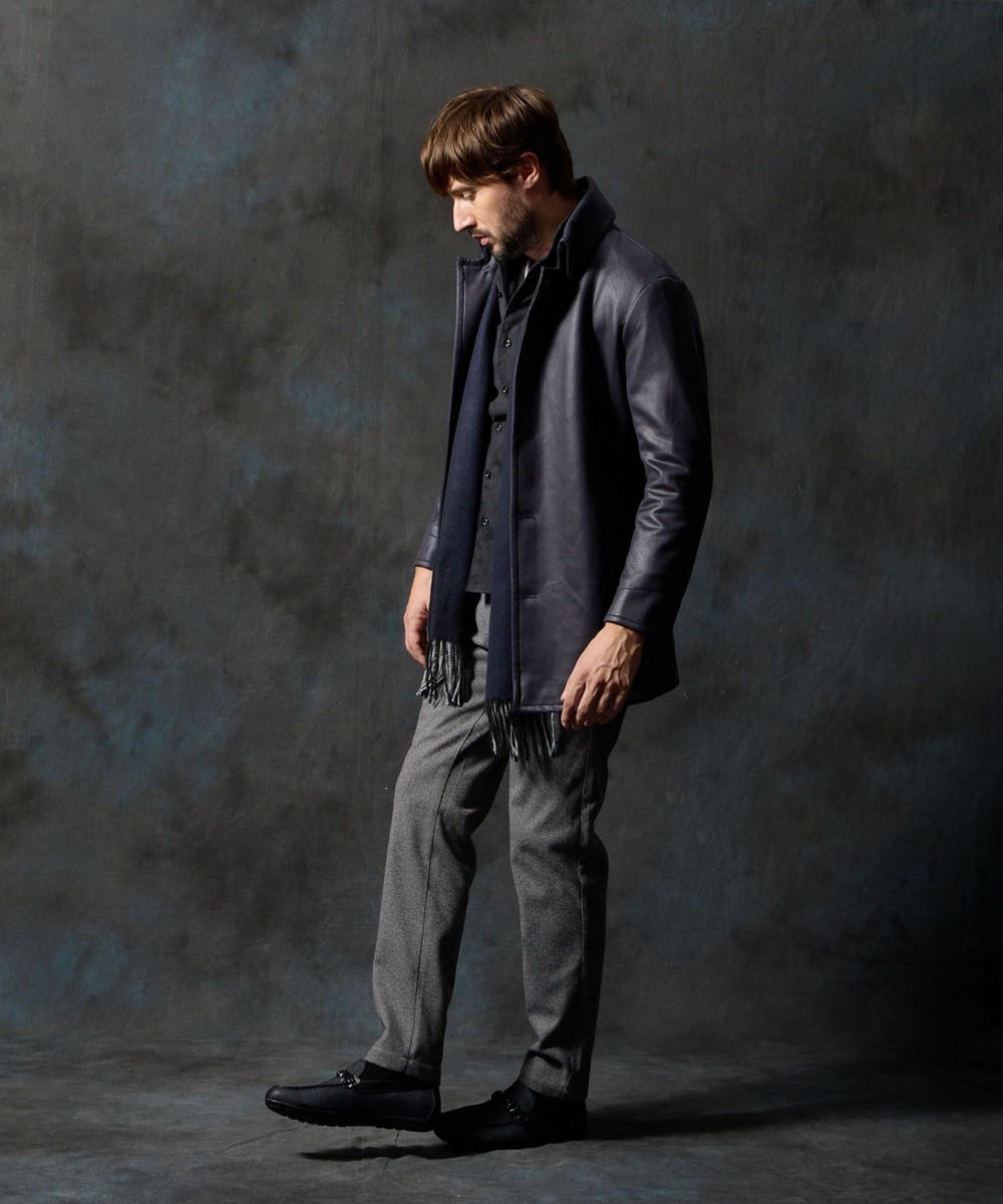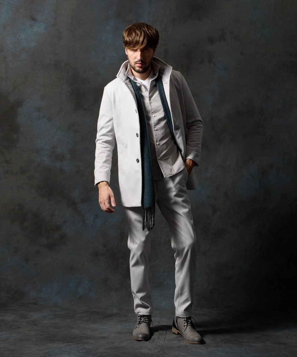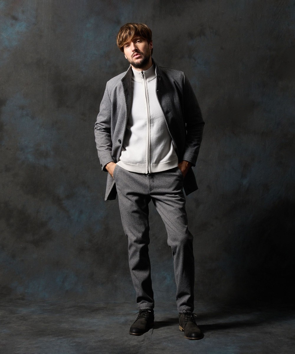 同素材でコート「メーカー品番5565-4900」を展開しておりますので、セットアップでのスタイリングもおすすめです。