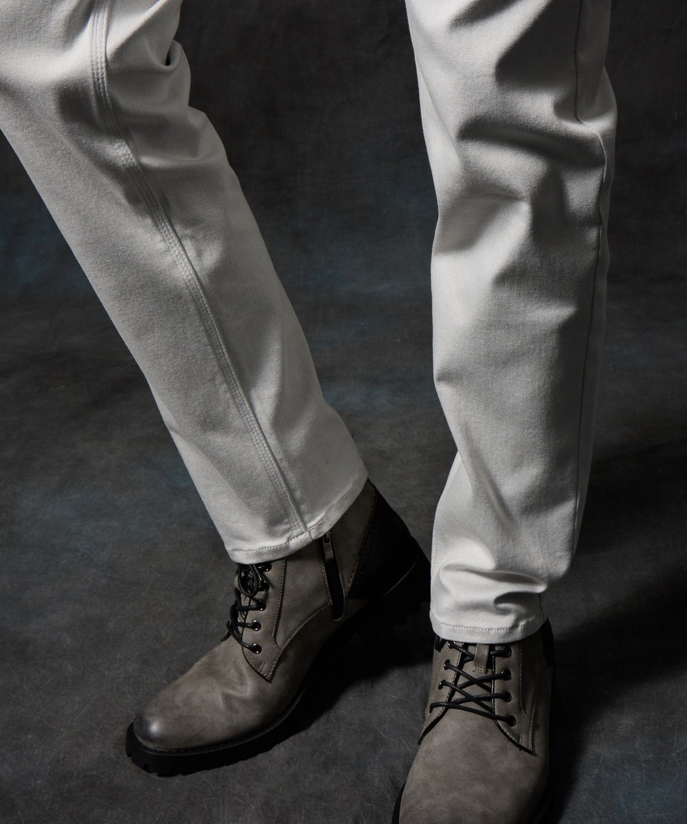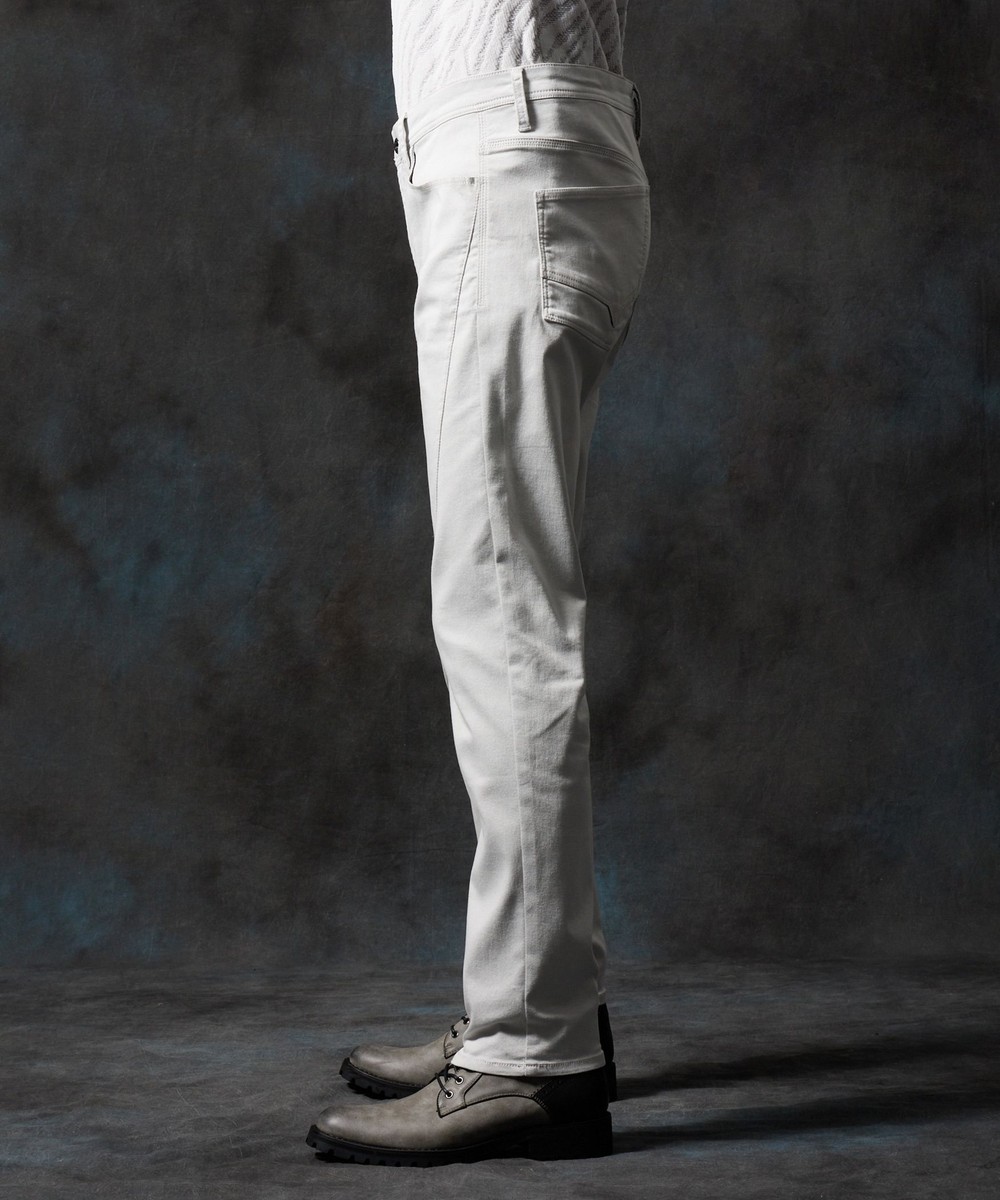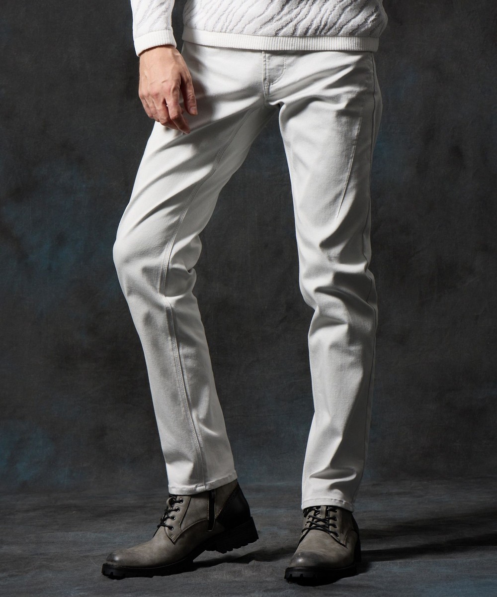 膝から裾口にかけて少しストレートなシルエットに設定した細身の綺麗なシルエットに仕上げています。