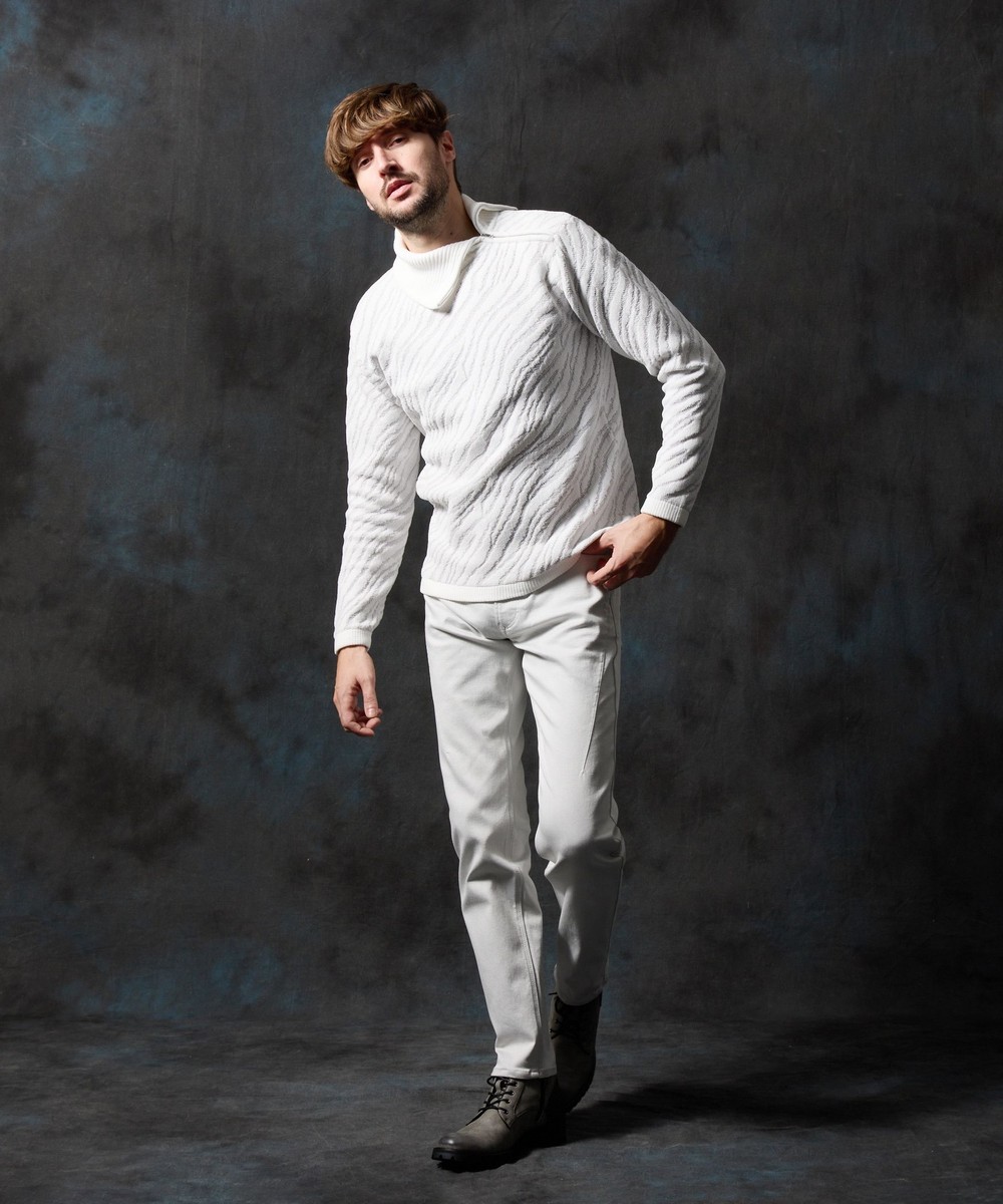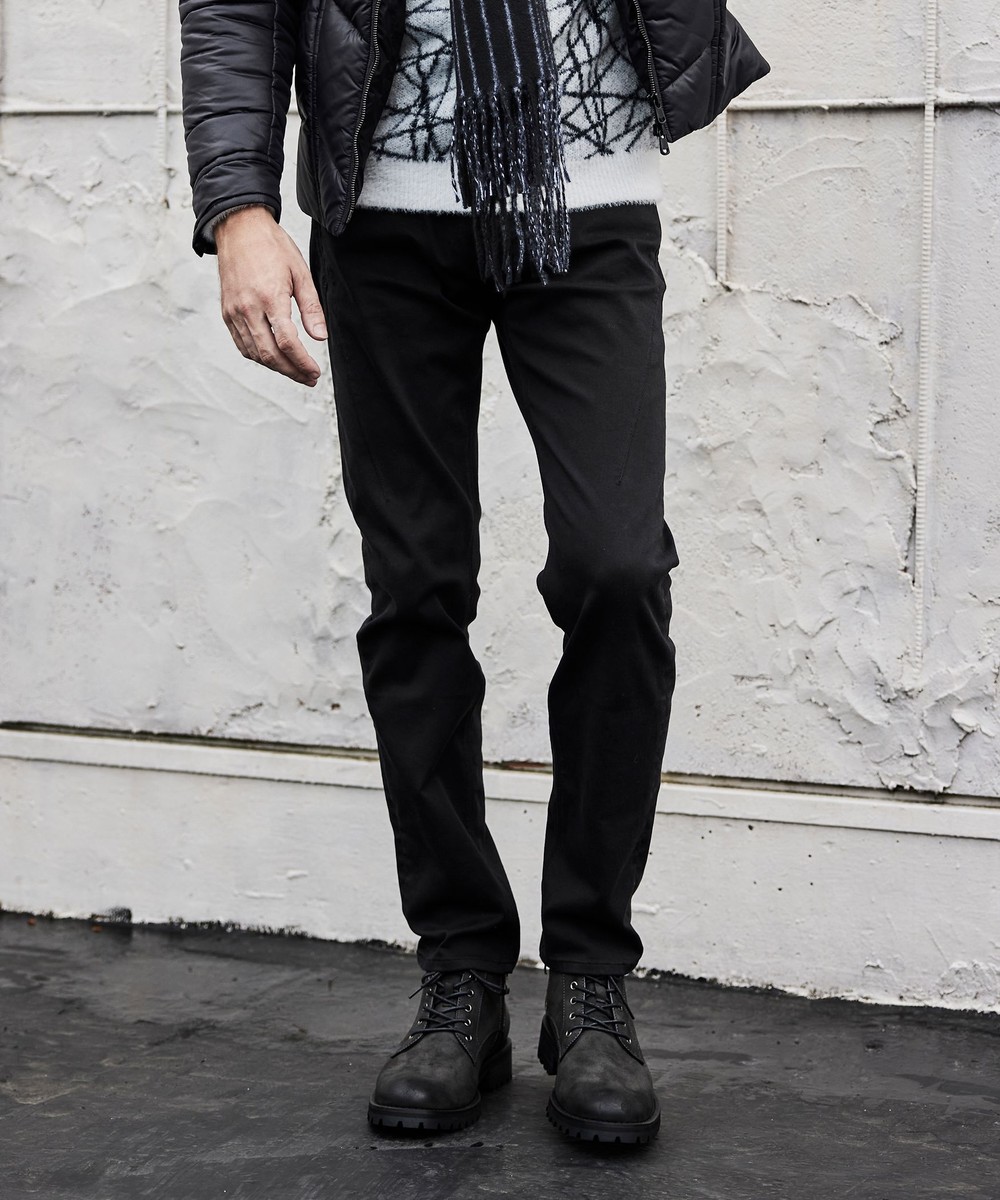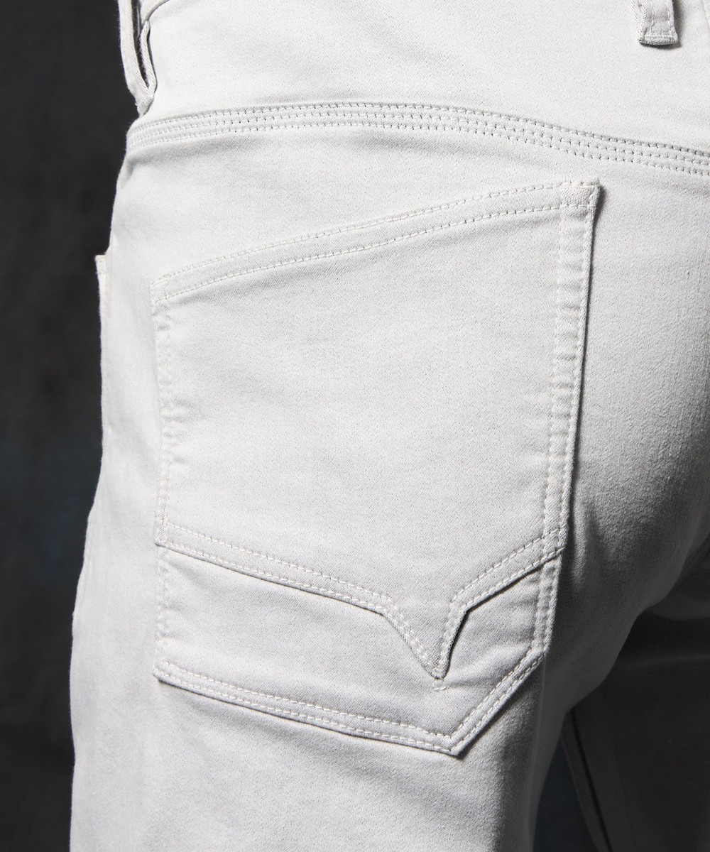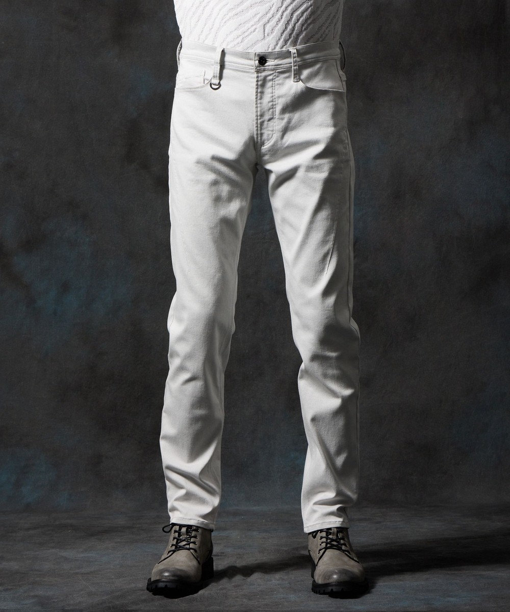 膝から裾口にかけて少しストレートなシルエットに設定した細身の綺麗なシルエットに仕上げています。