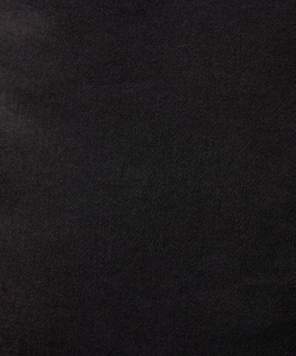ヨコ糸に黒色のポリエステルとポリウレタンの混紡糸を使用したストレッチサテン素材。