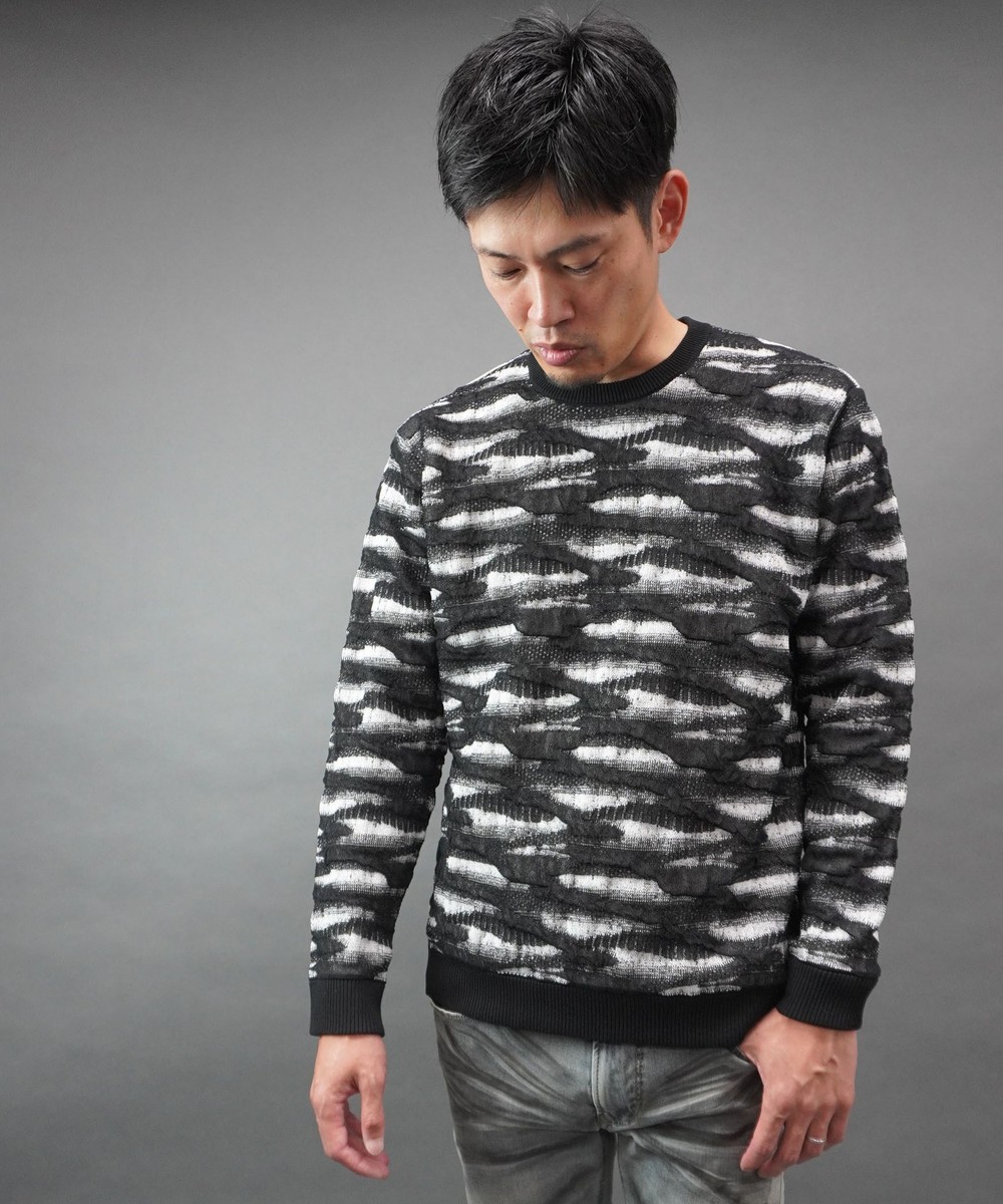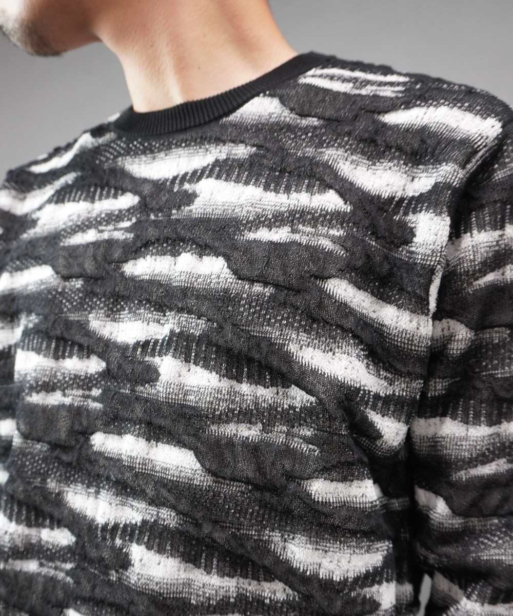 カモフラブリスタージャカードクルーネックプルオーバーニットになります。
