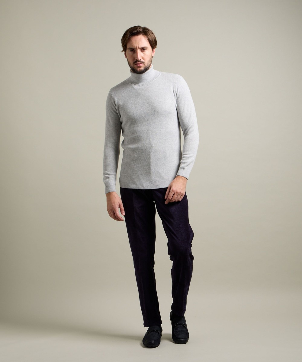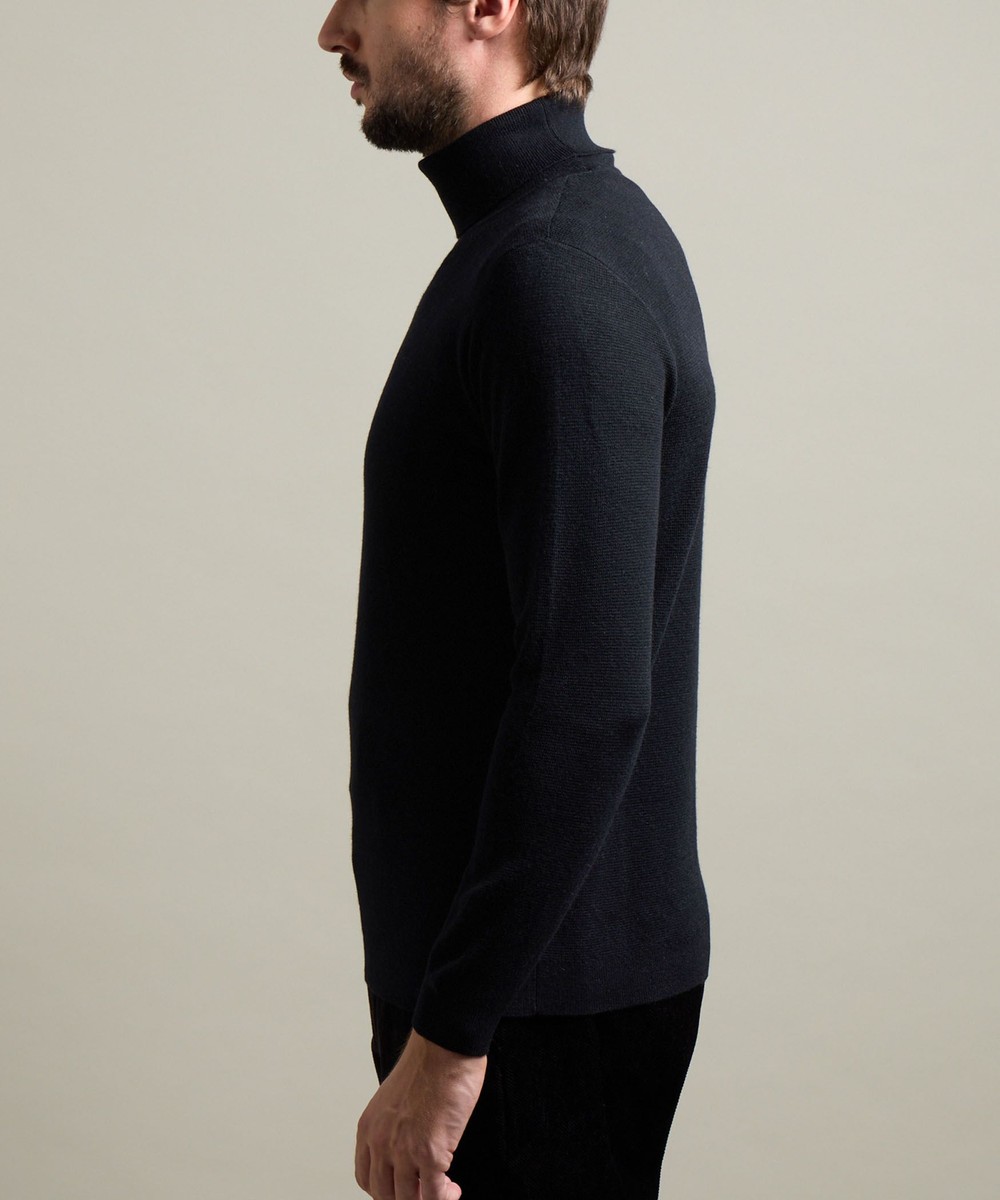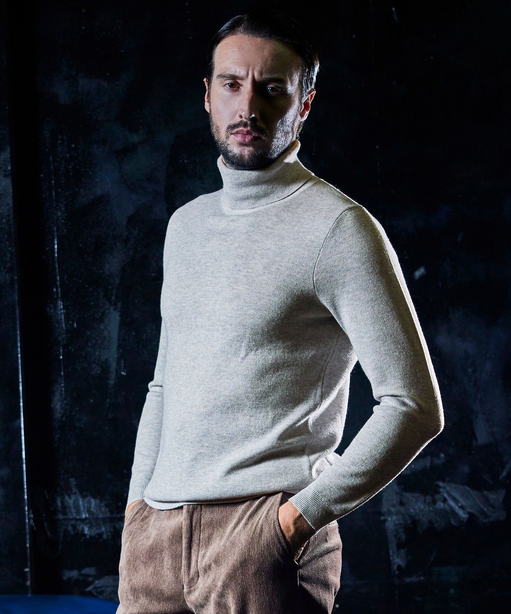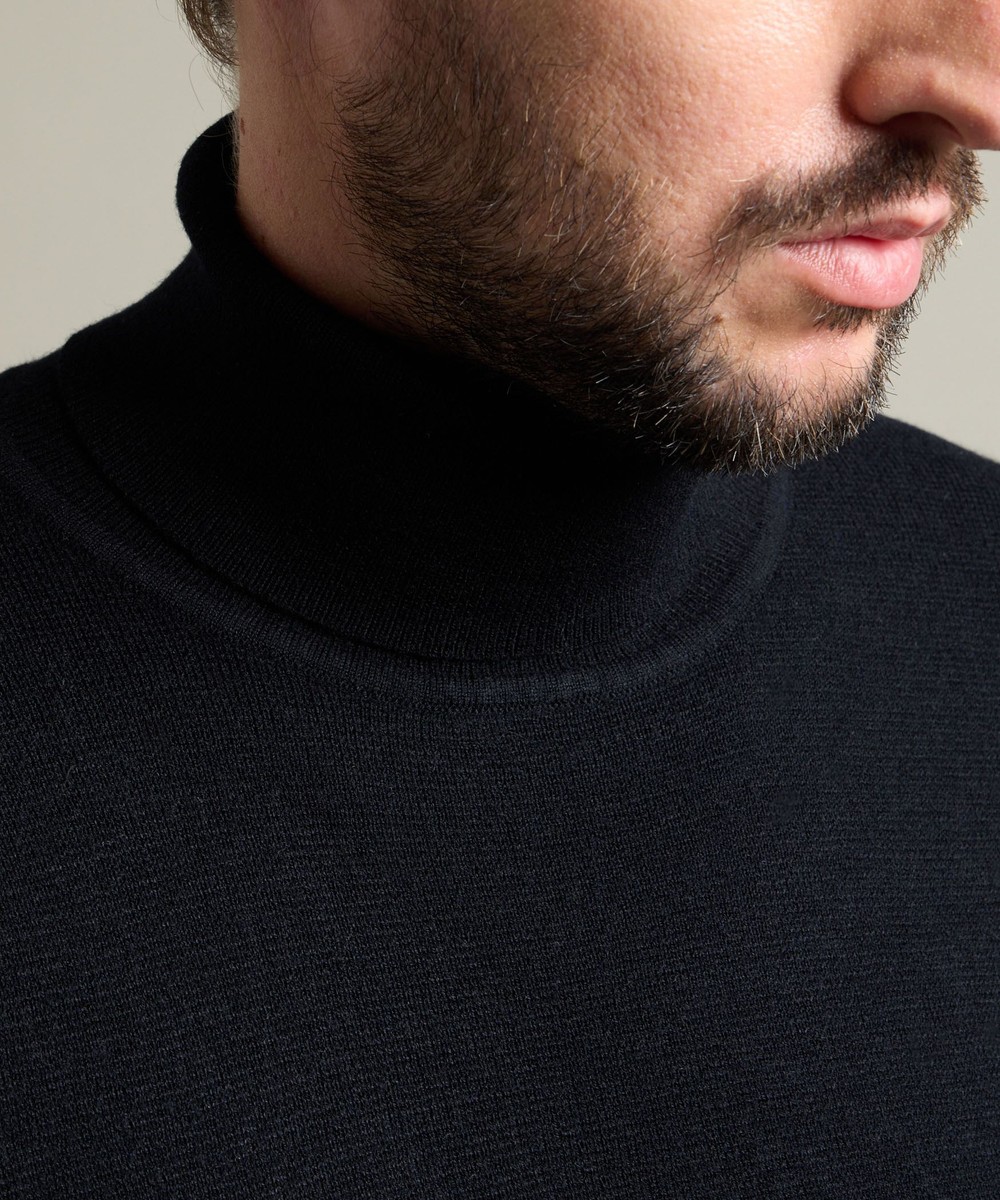 伸縮性と着心地の良さが特徴のミラノリブ編みのタートルネックプルオーバーニットになります。