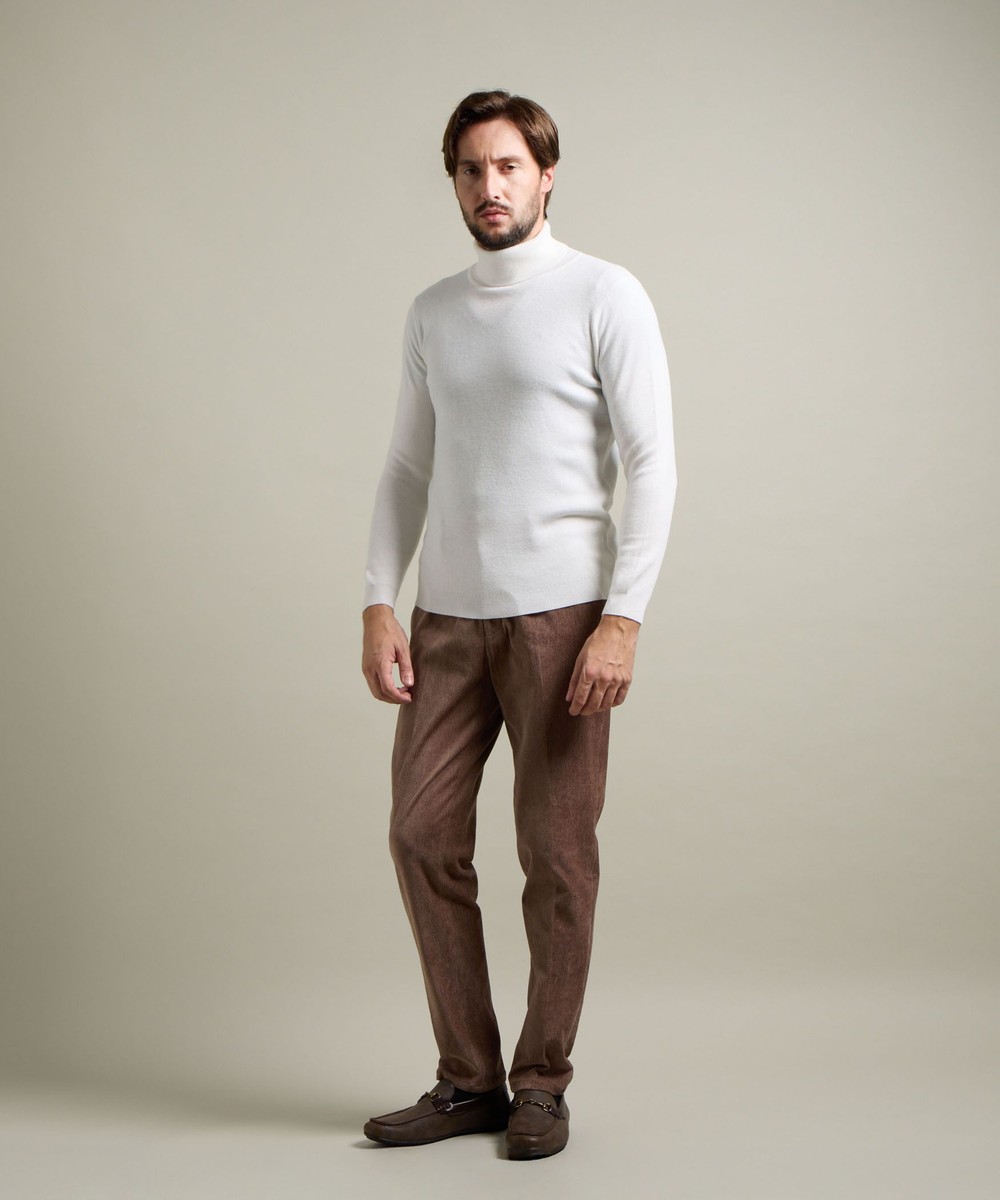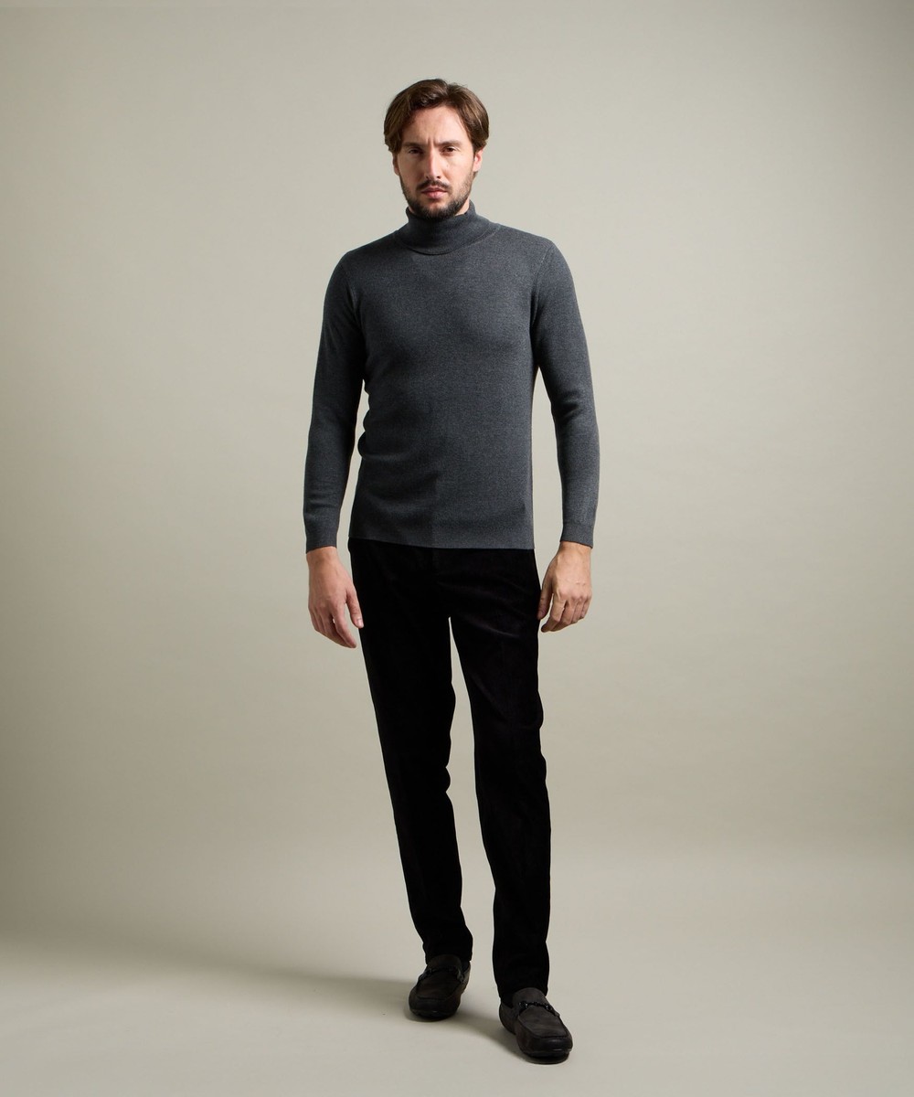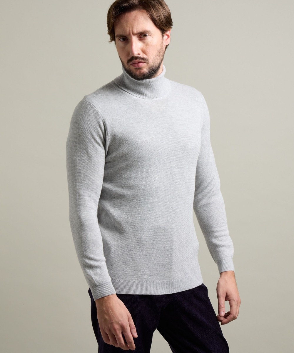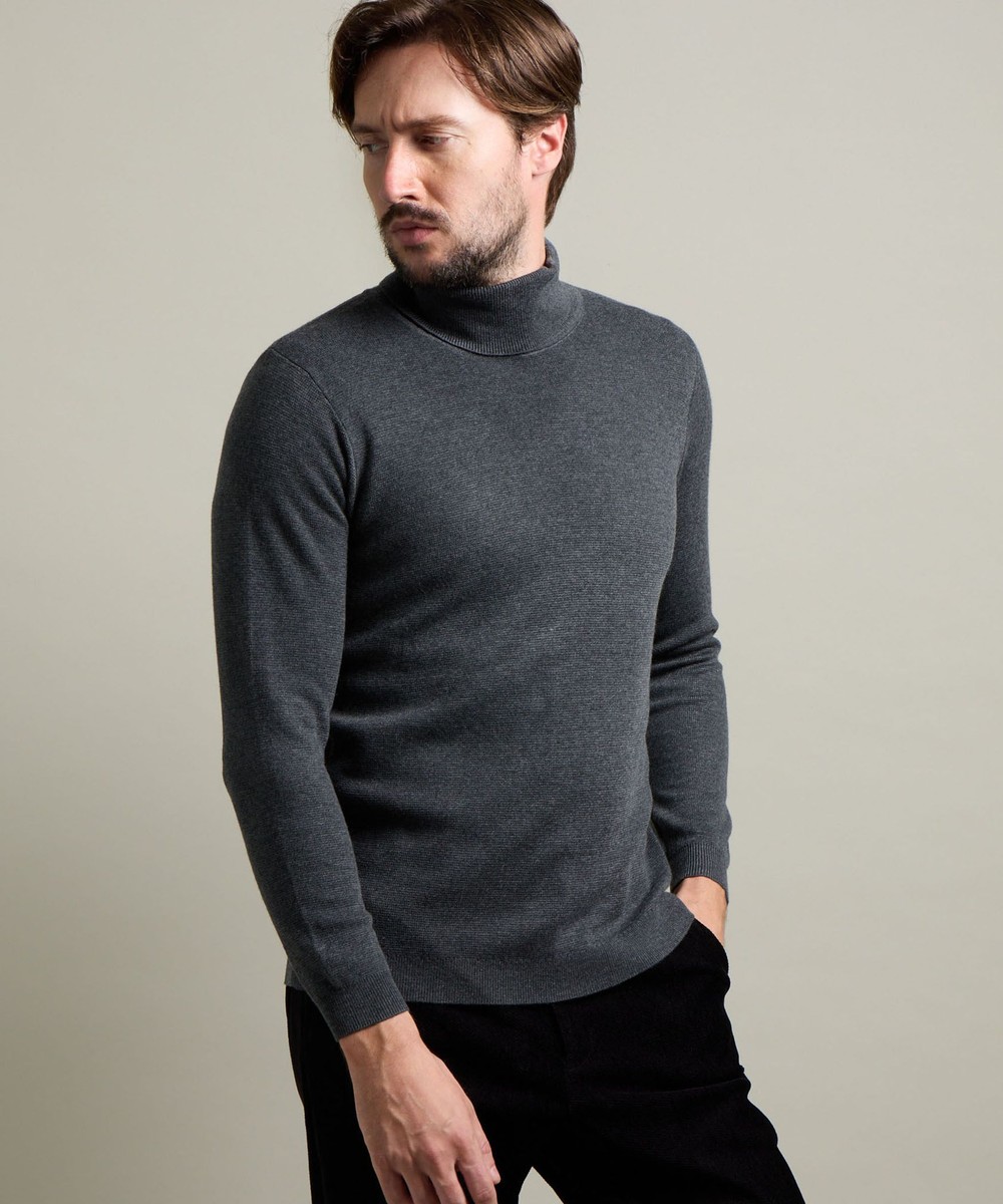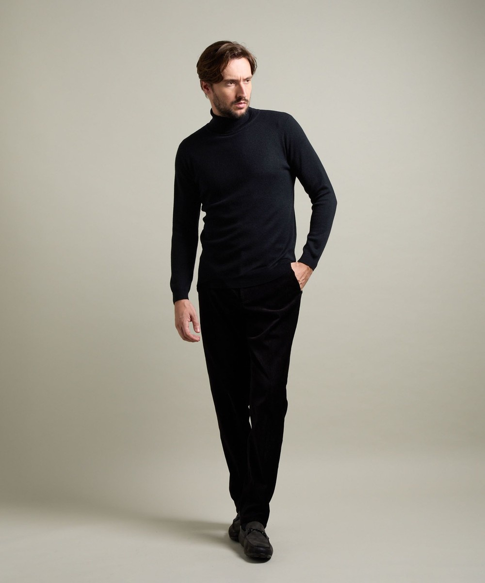 伸縮性と着心地の良さが特徴のミラノリブ編みのタートルネックプルオーバーニットになります。