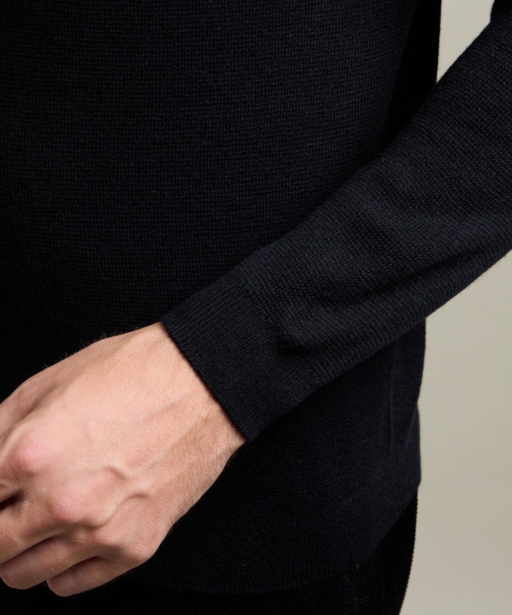 ジャケットやブルゾンのインナーとして秋口から冬まで長く着用できる汎用性の高さが魅力です。