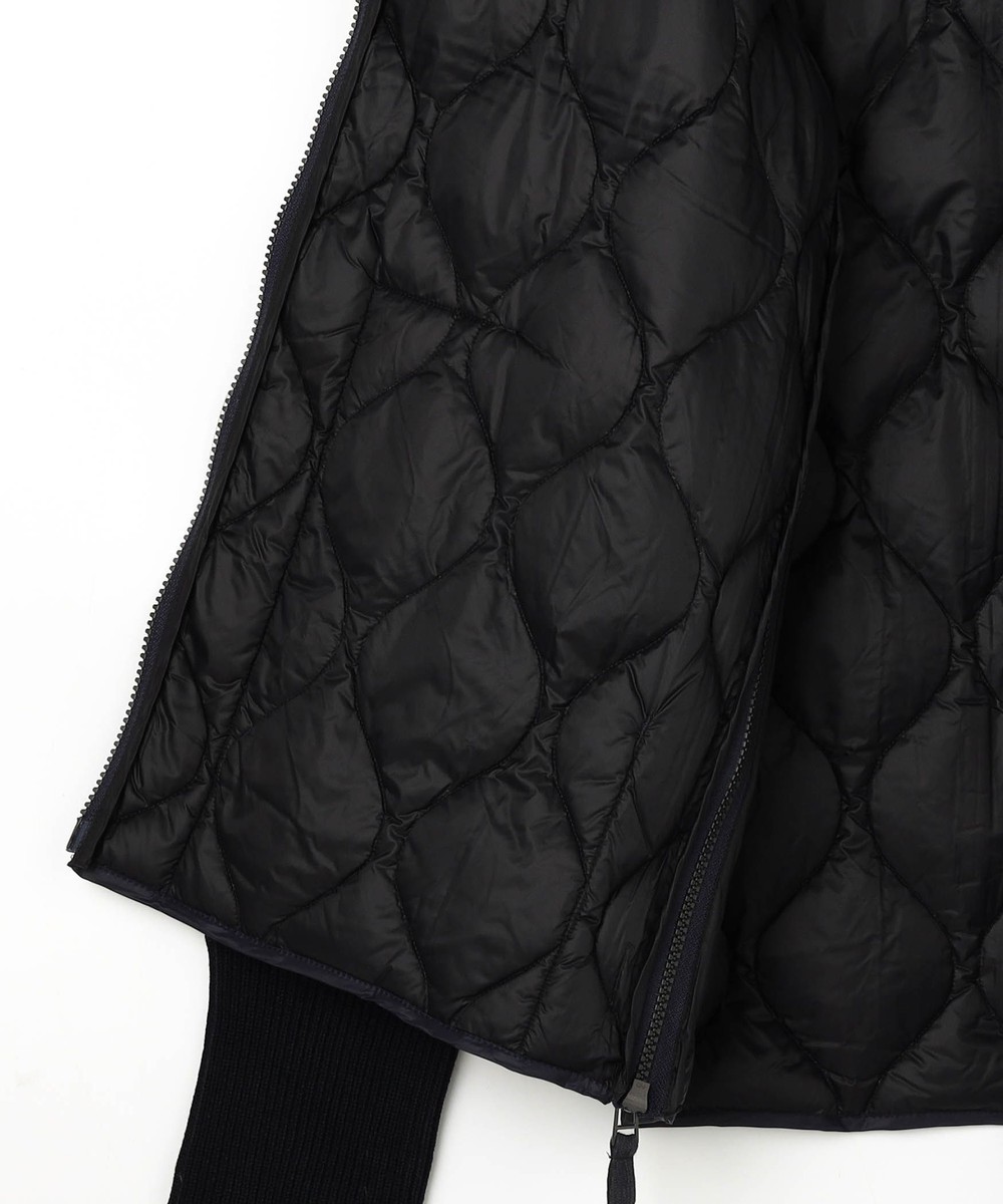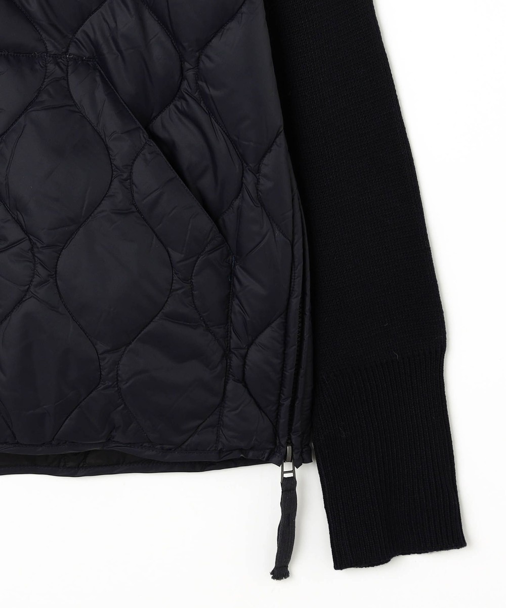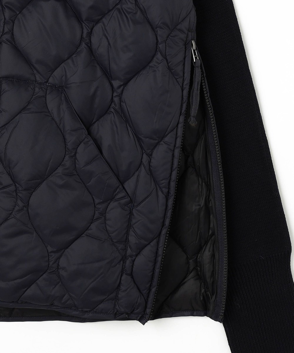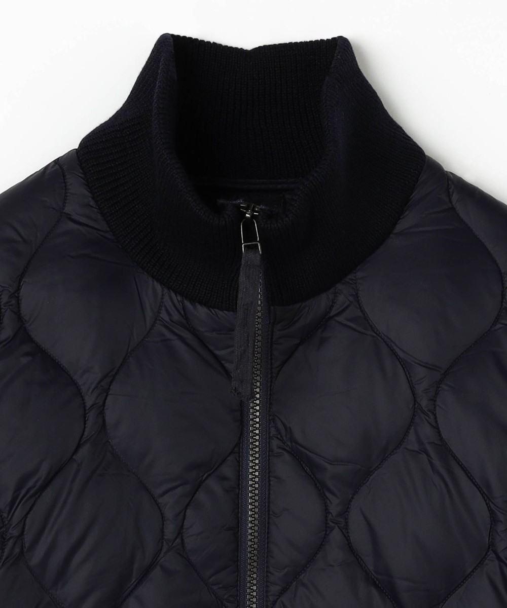 柔らかく気心地を重視した、衿と袖がニットのミリタリーダウン。