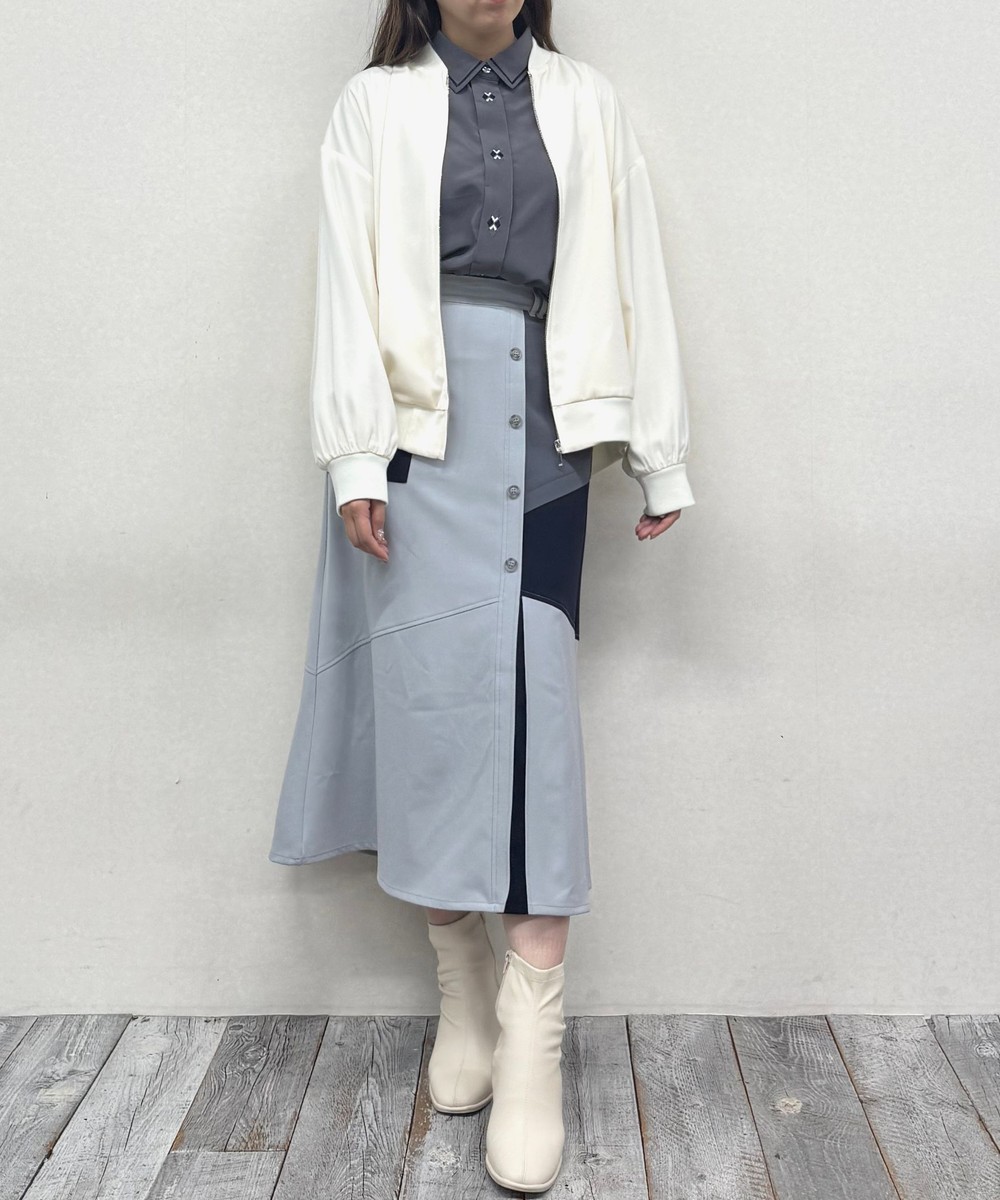 柔らかなトーンの配色にこだわり、単品で着用するのはもちろん、ニットなどのレイヤード用としても使いやすく可愛い1着に仕上げています。