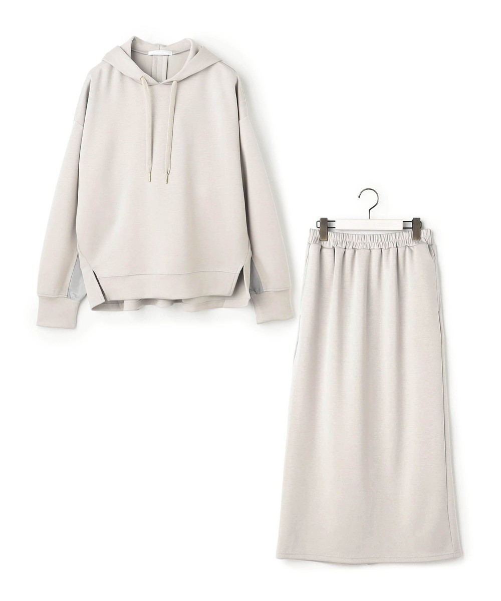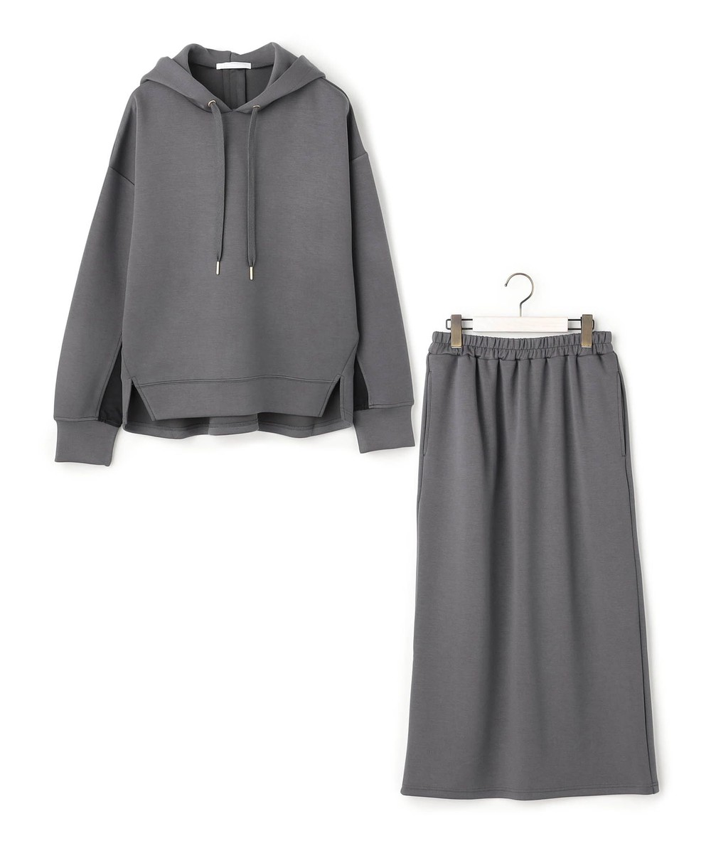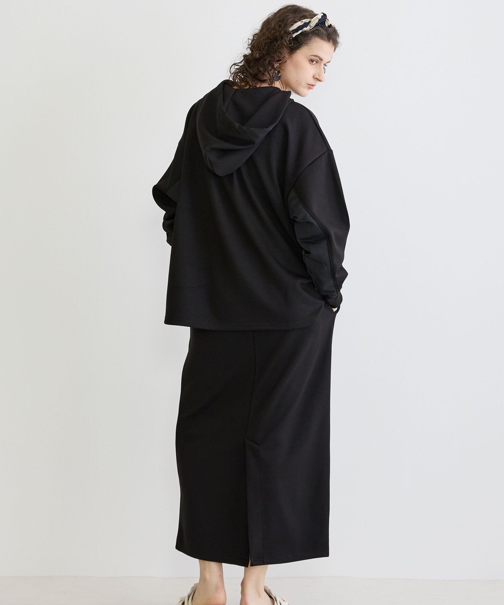 異素材使いの切り替えデザインがおしゃれに決まる大人リラクシーなセットアップです。