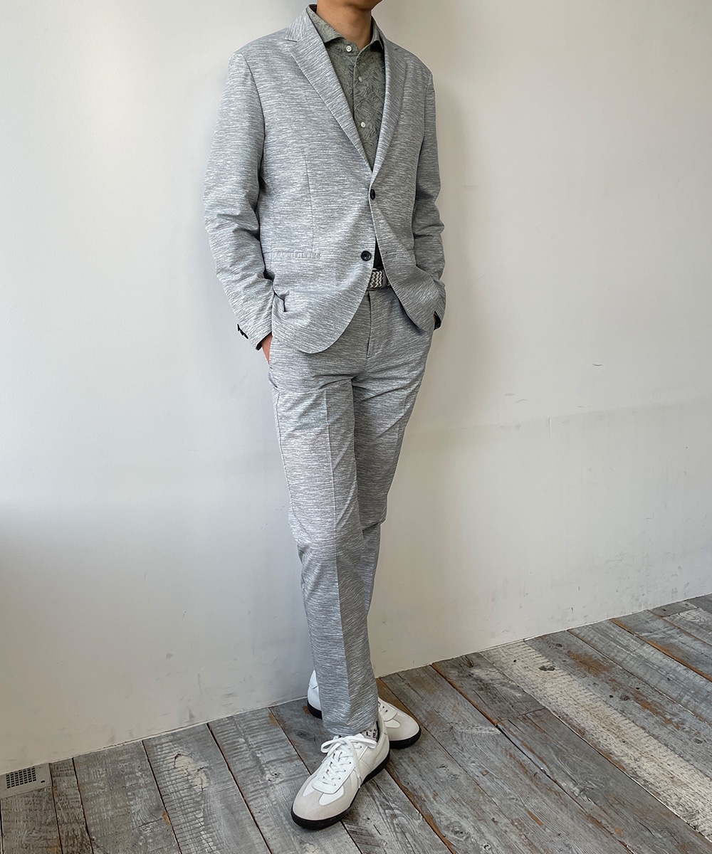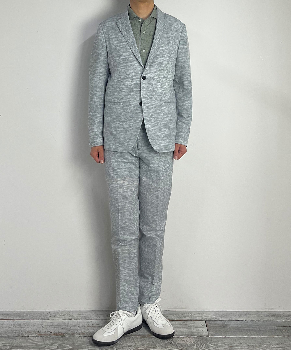 やや低めのゴージラインラペルに、スタイリッシュなノーフラップポケットモデルを採用。