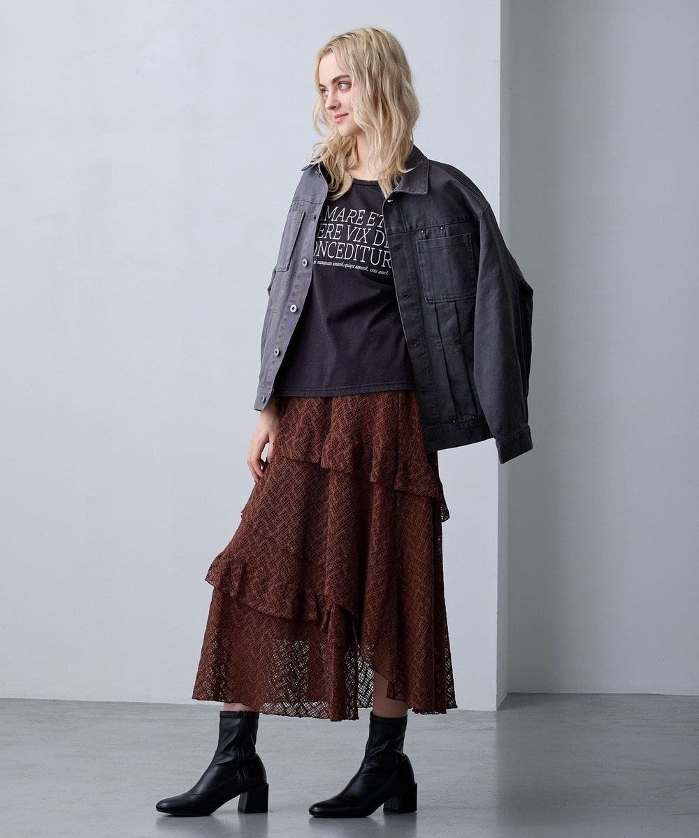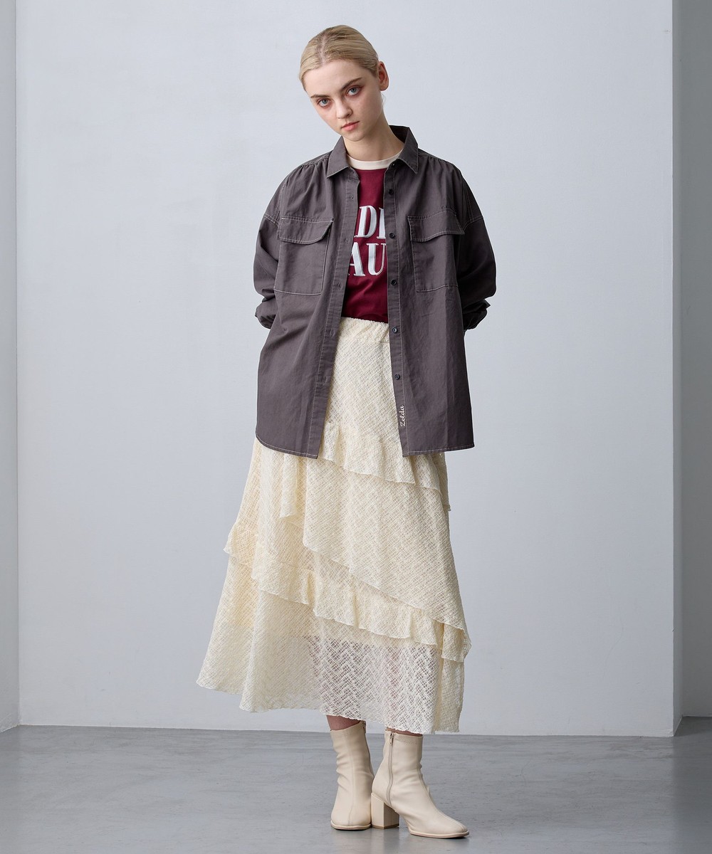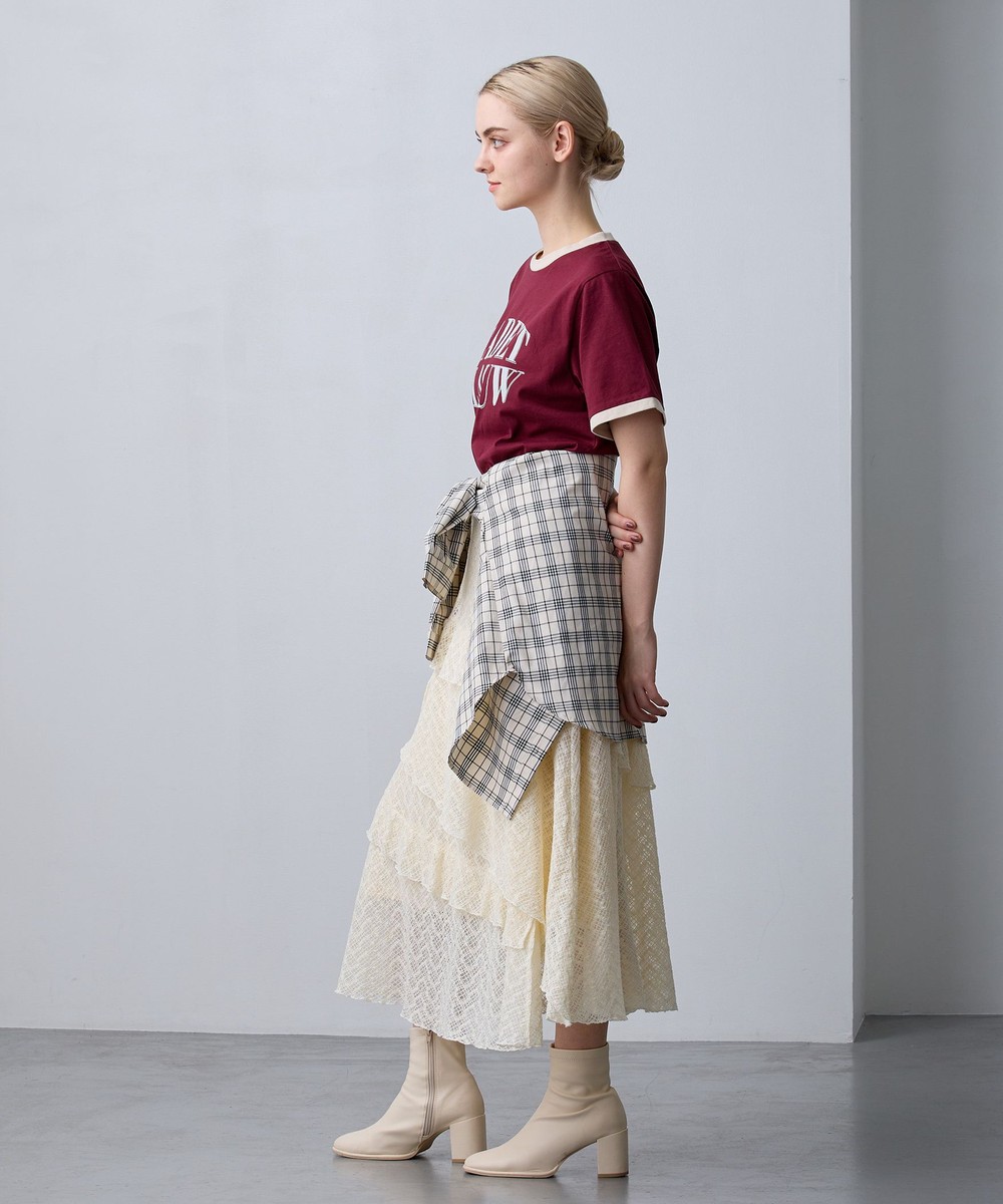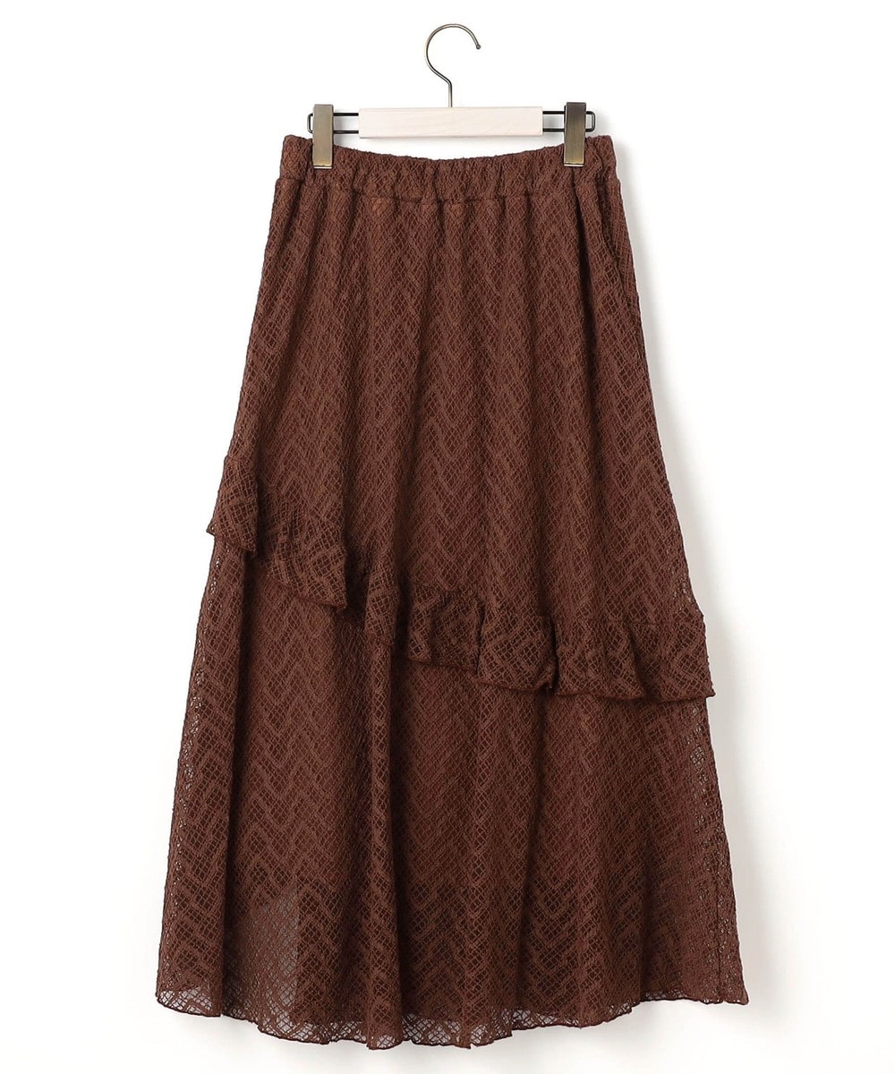 アシンメトリーなヘムデザインがレースの重なりを際立たせ、立体感のあるスカート。