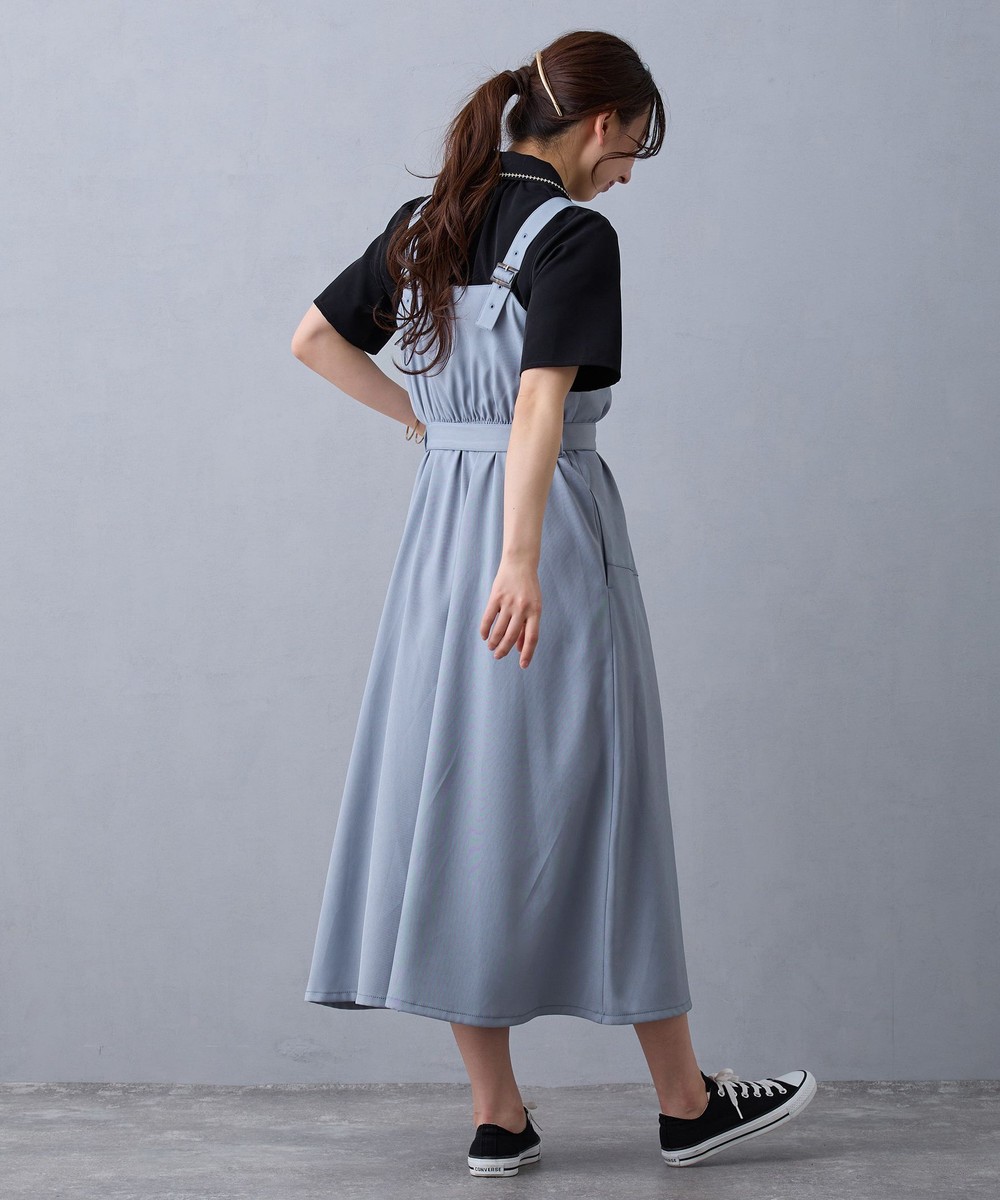肩紐は長さの調節が5段階で可能になており、お好みの丈感で着ていただくことができます。