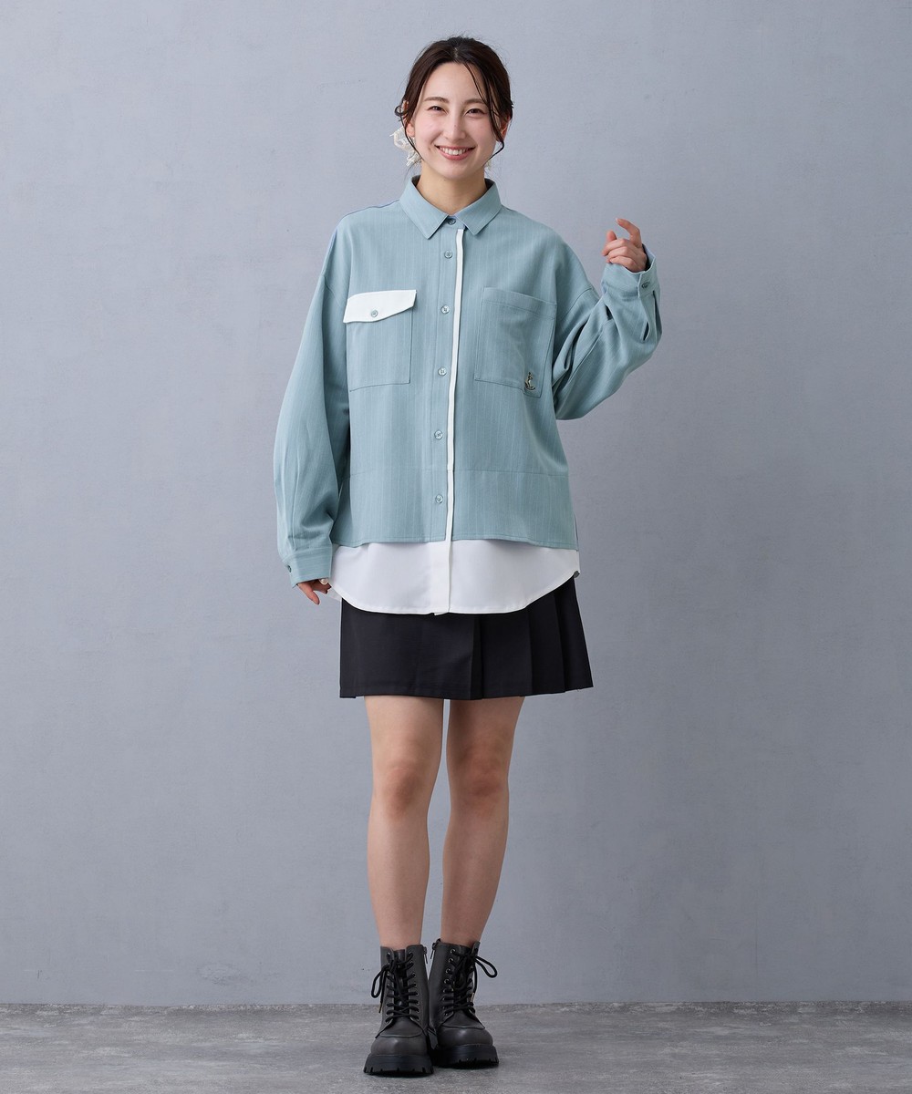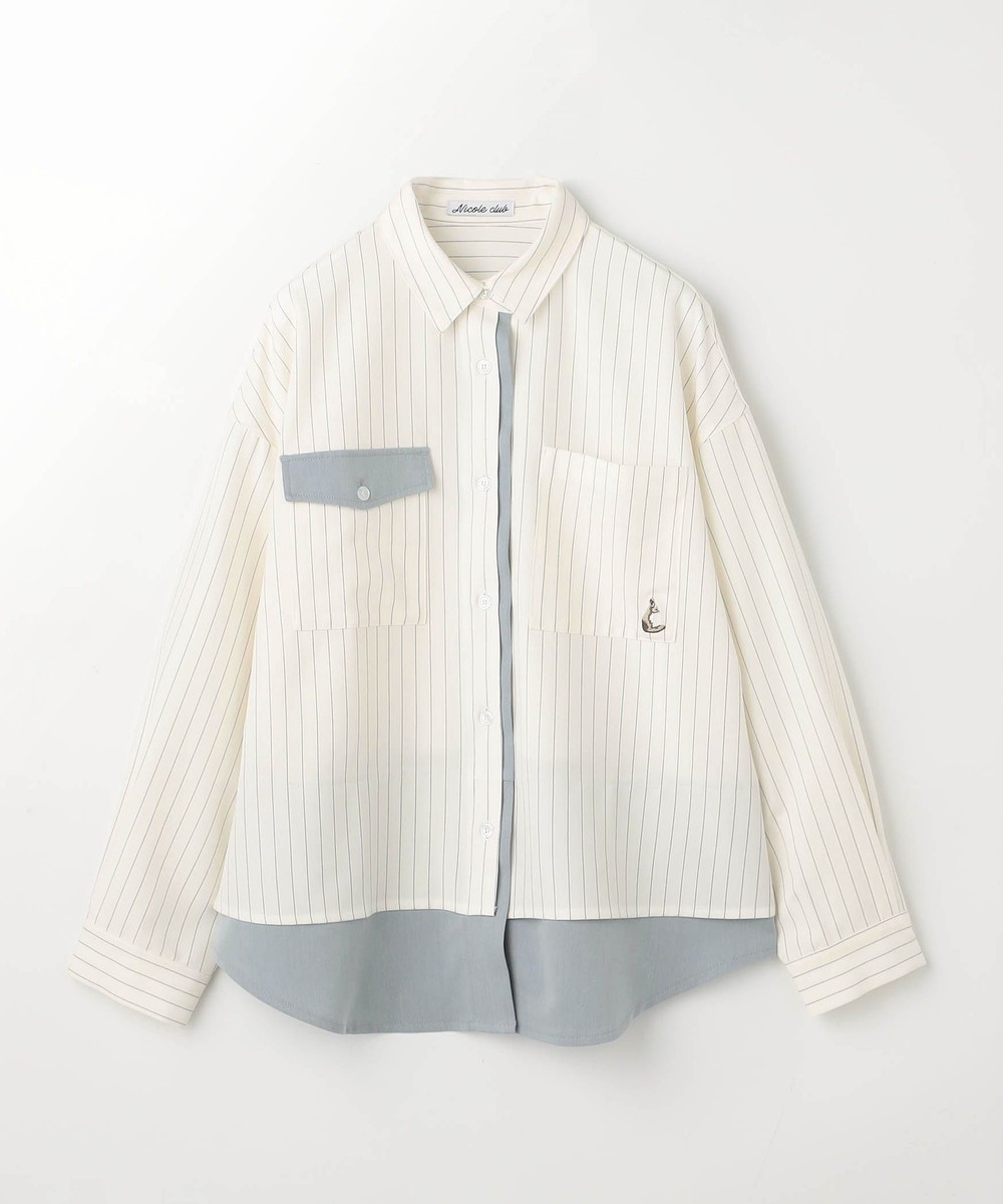 レイヤード風のデザイン+配色が目を惹くシャツ。