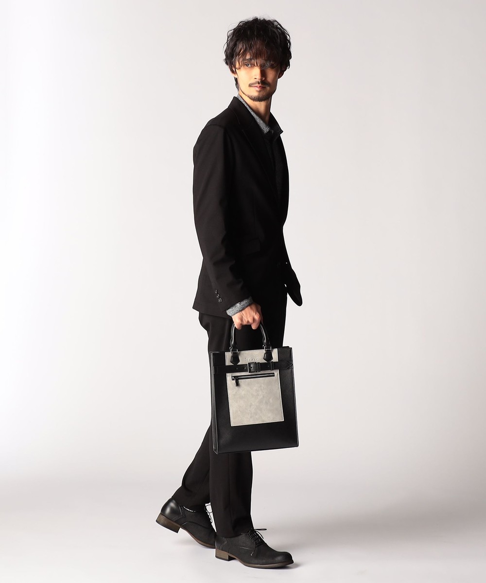 本体には光沢感のある上質な見栄えのサフィアーノ調合成皮革を採用。フロントの別生地切替にはムラ調合皮を使用して上品さ漂うアクセントにしています。